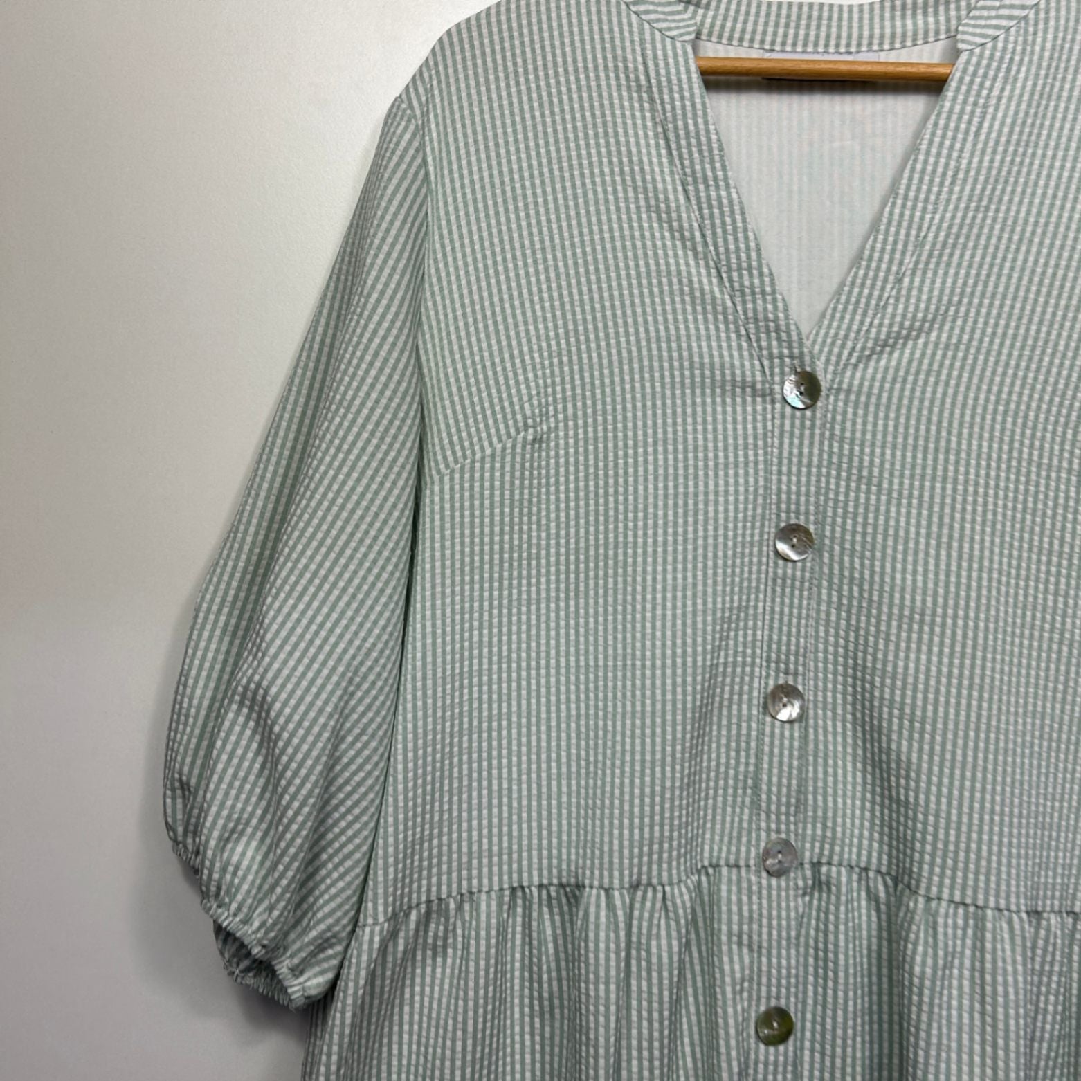 Henry Oscar Striped Green White Smock Shirt Dress Size 18