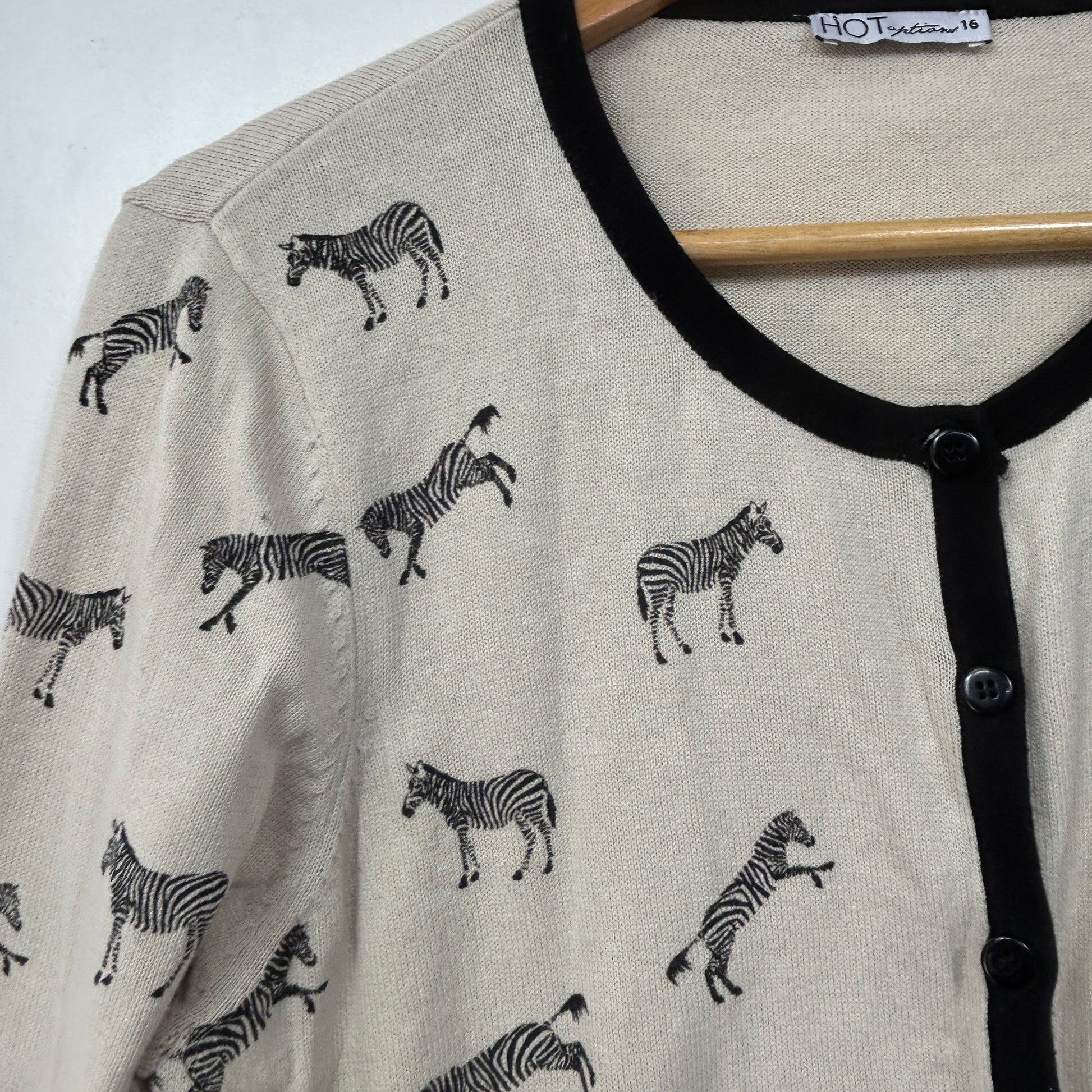 HOT Options Beige & Black Zebra Print Cardigan - Size 16