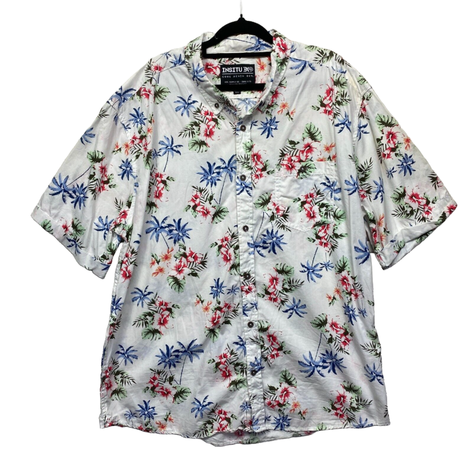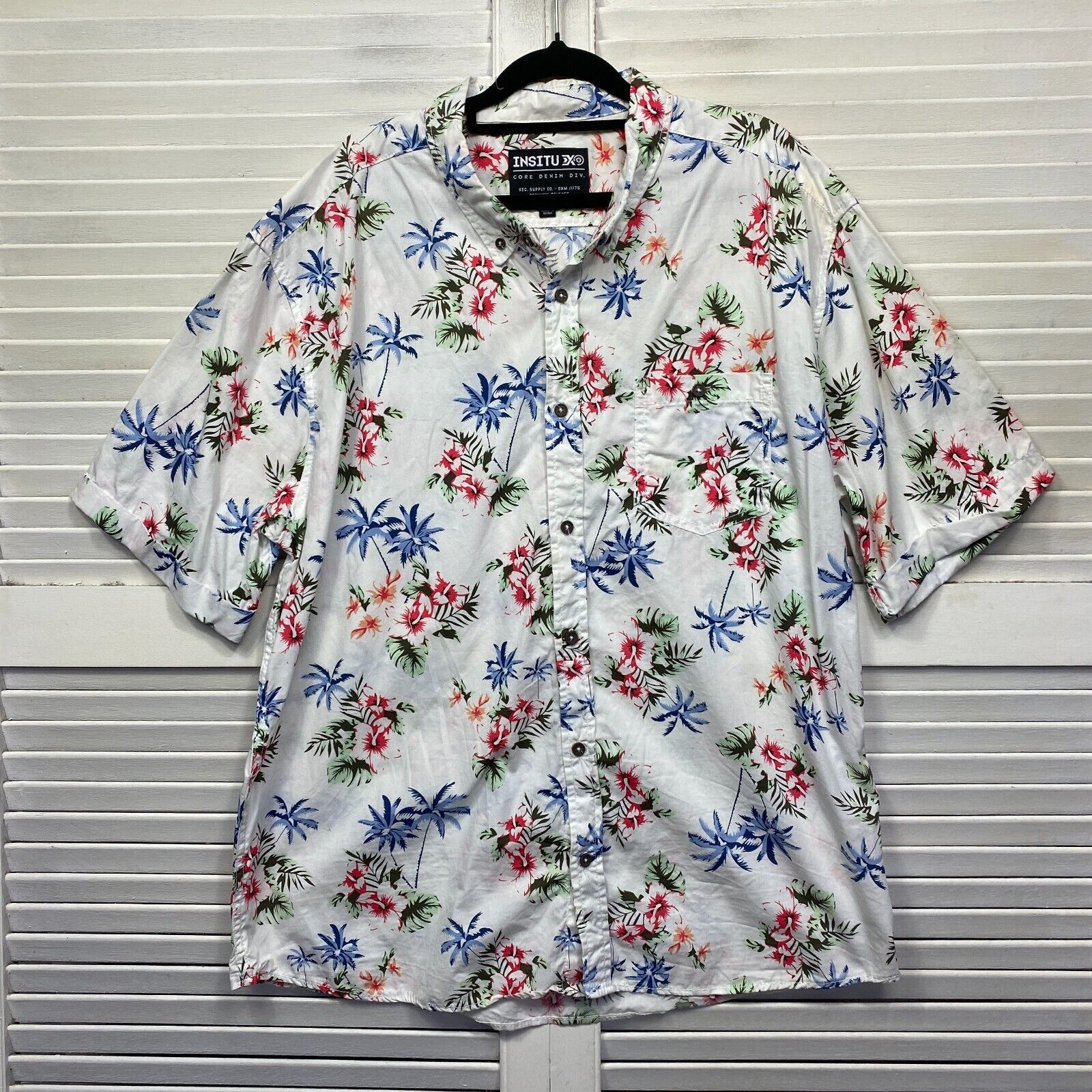 Insitu Shirt 3XL Plus White Floral Short Sleeve Tropical Holiday Cruise