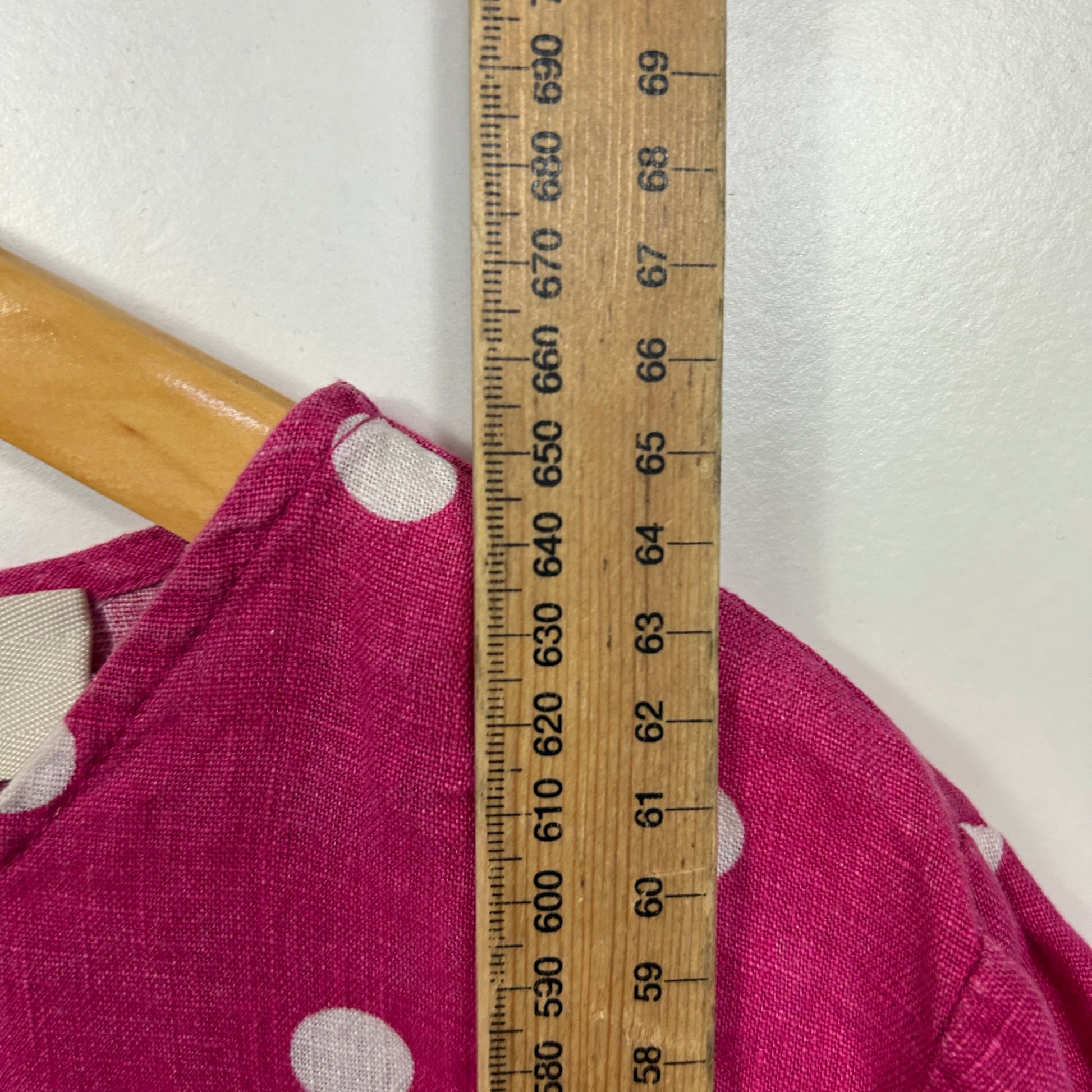Jacqui E Pink Magenta Polka Dot Linen Top - Size 18