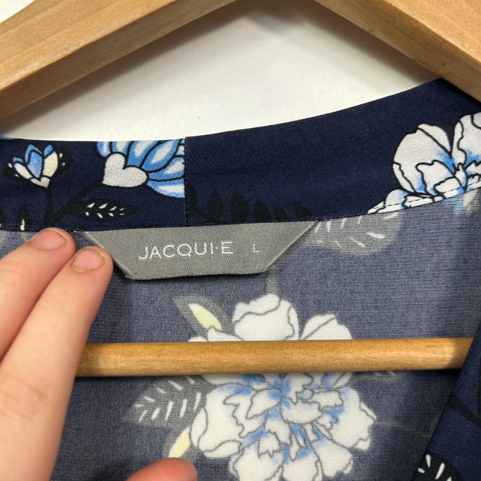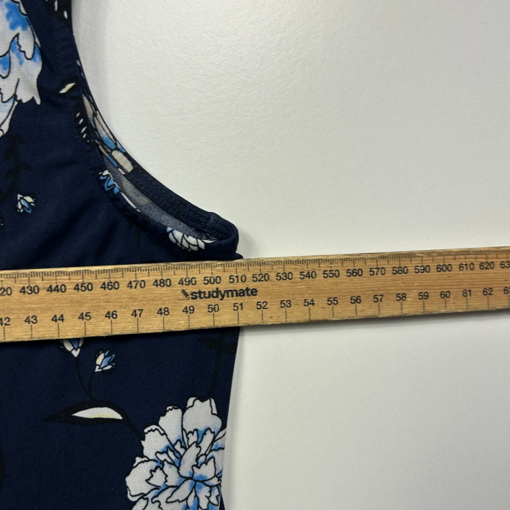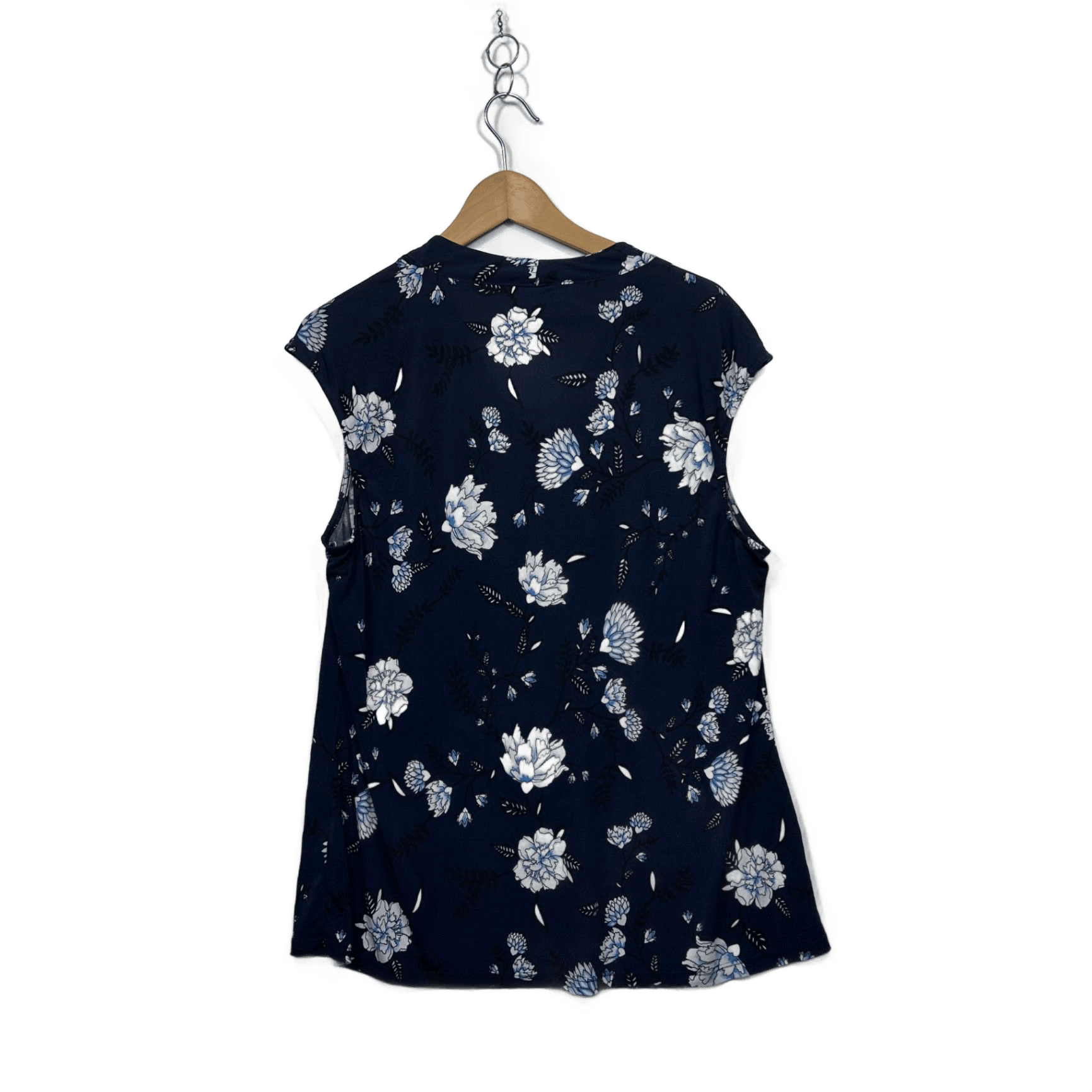 Jacqui E Navy Floral Short Sleeve Top Size 14 Large