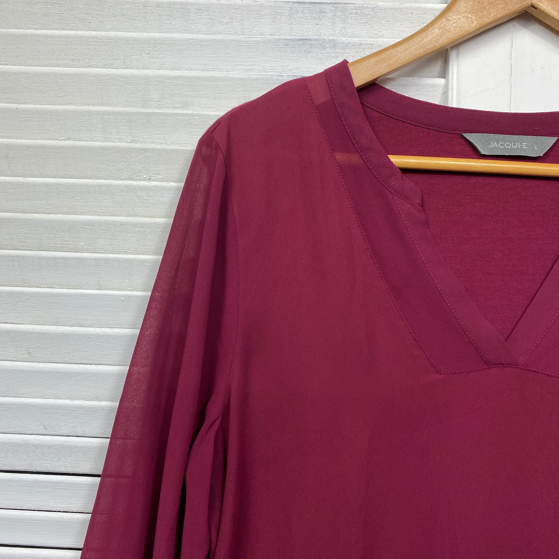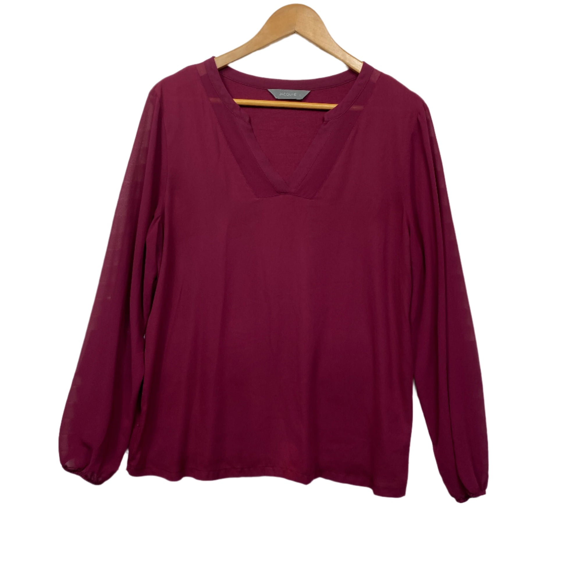 Jacqui E Top Size Large Long Sleeve Maroon