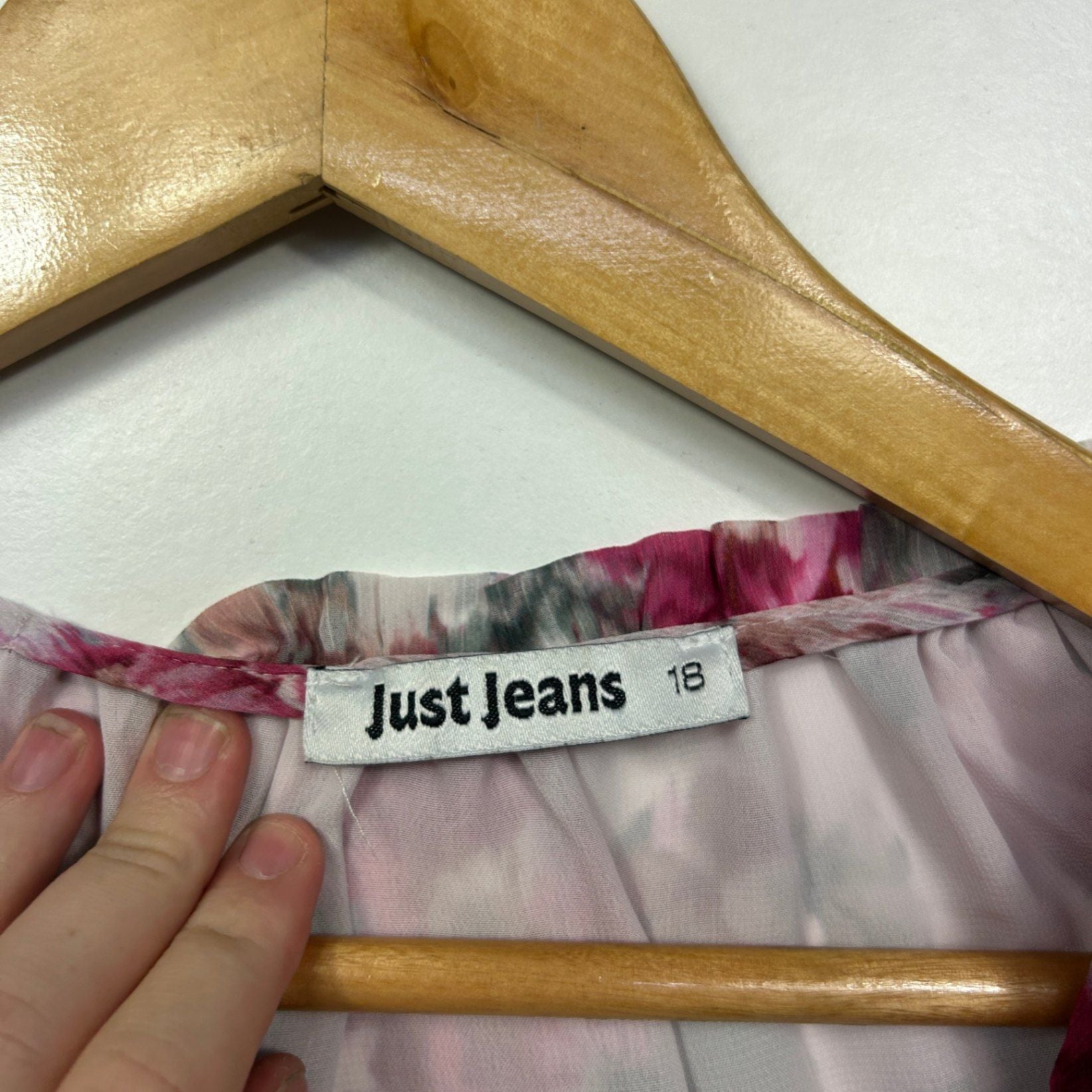 Just Jeans Pink Floral Flowy Ruffle Blouse Top Size 18
