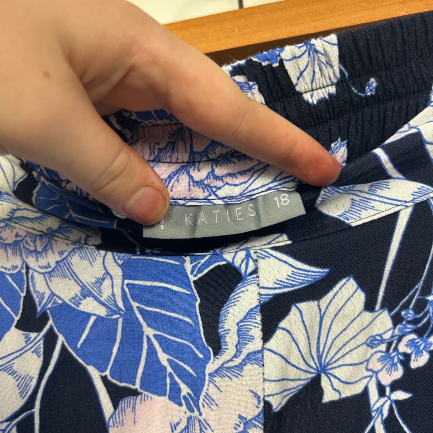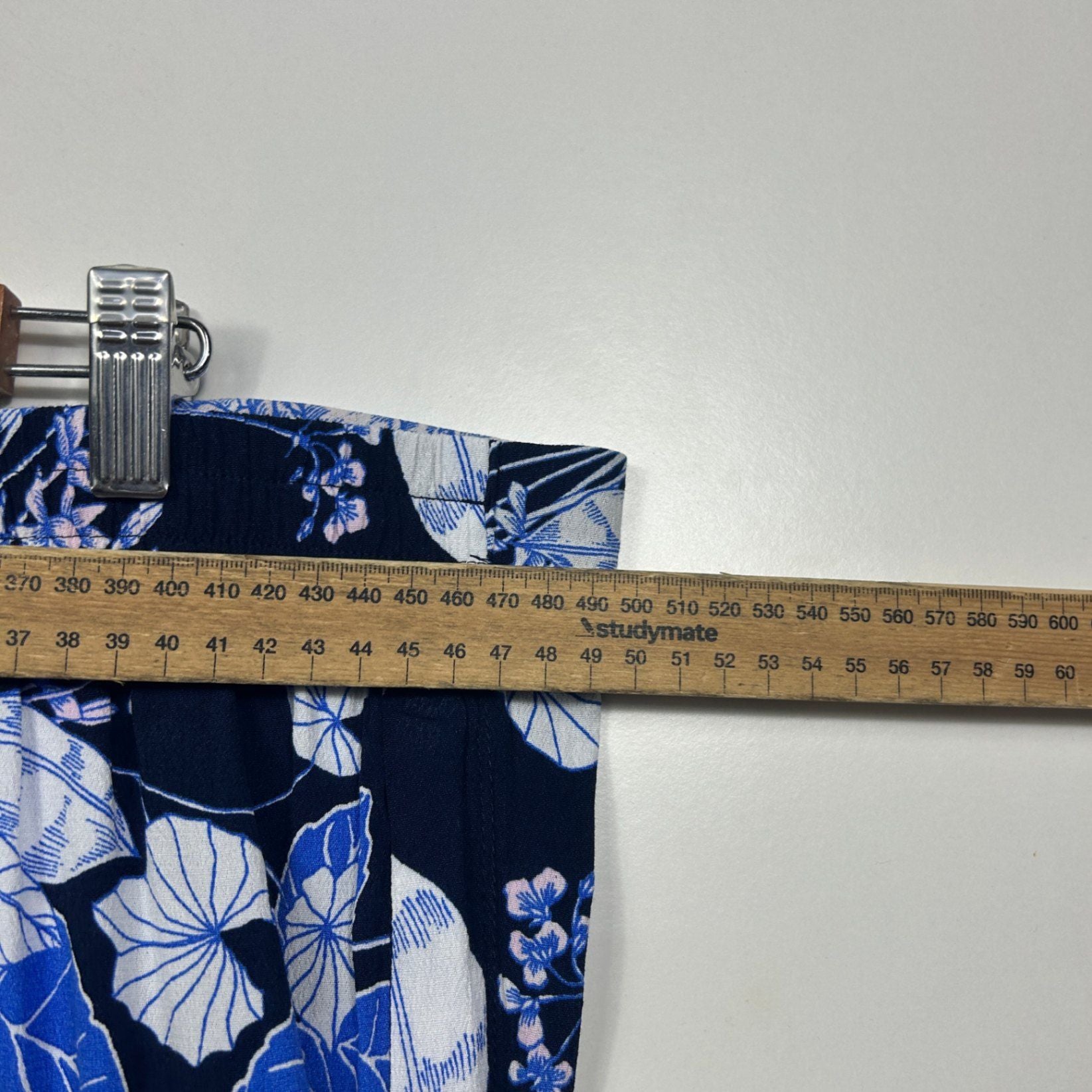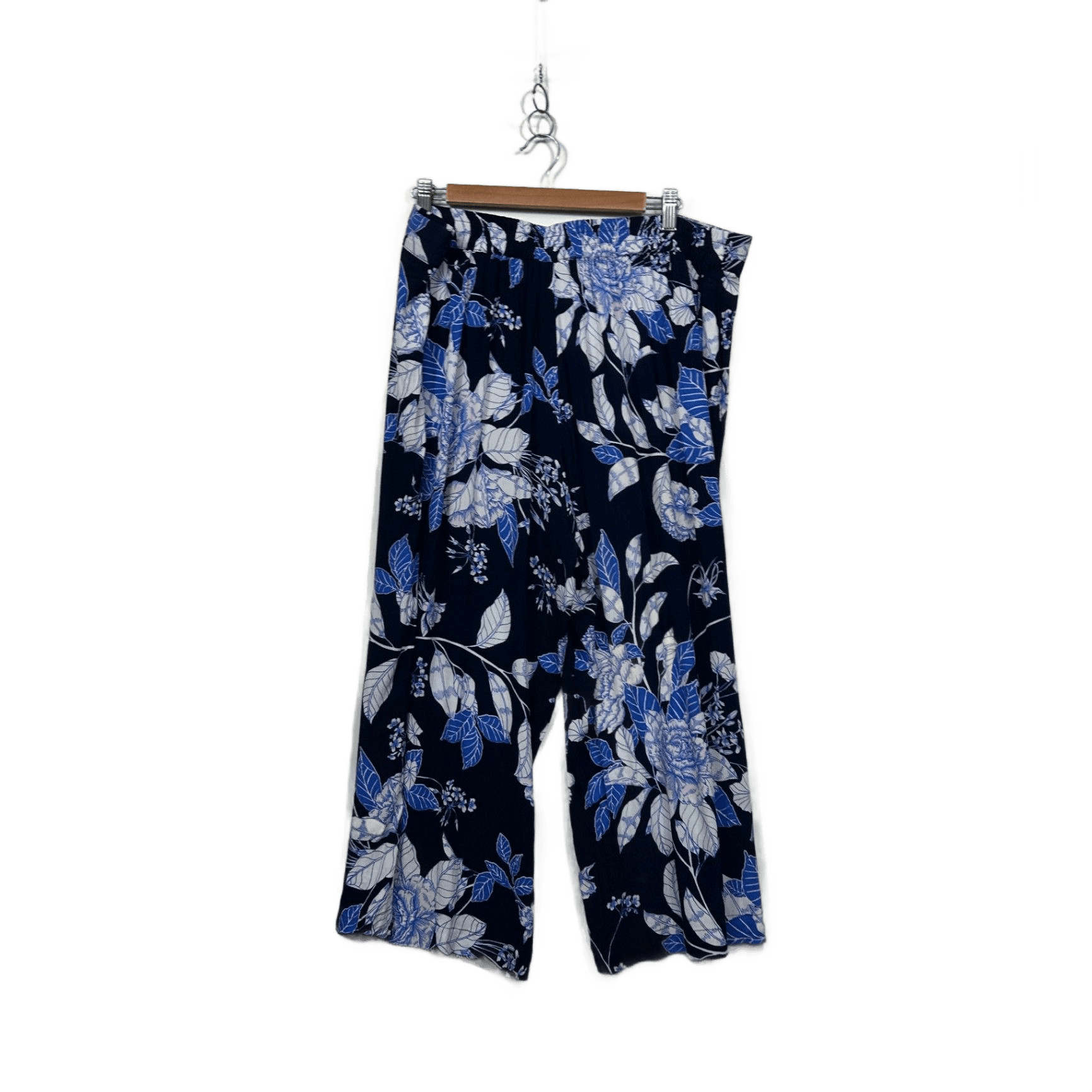 Katies Blue Floral Wide Leg Cropped Trousers Pants Size 18