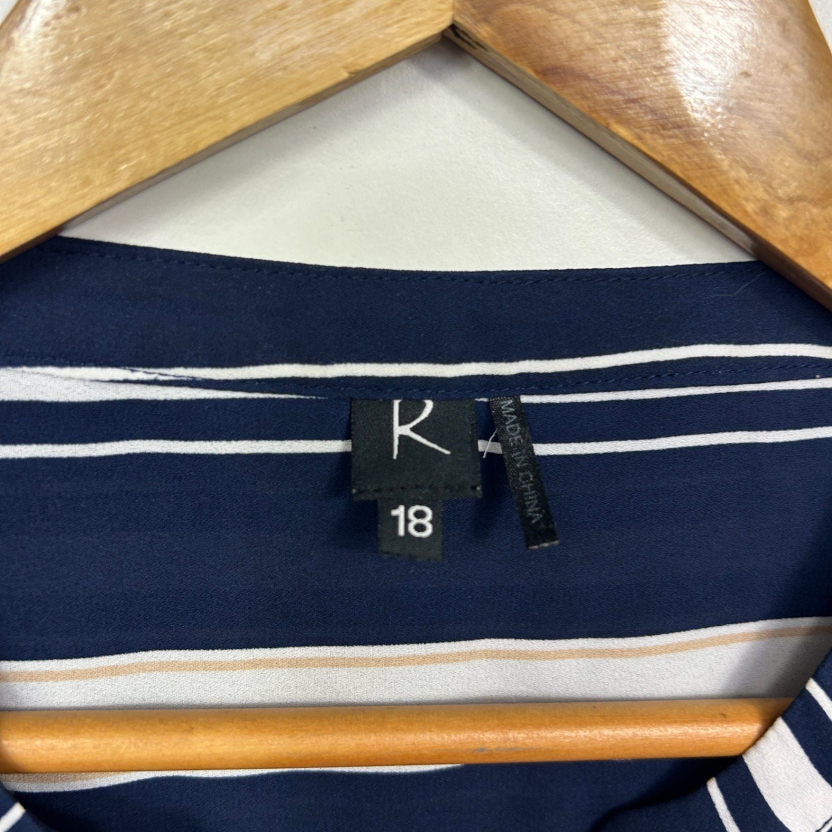 Katies Top Blouse Size 18 Blue Striped 3/4 Sleeve Button Up