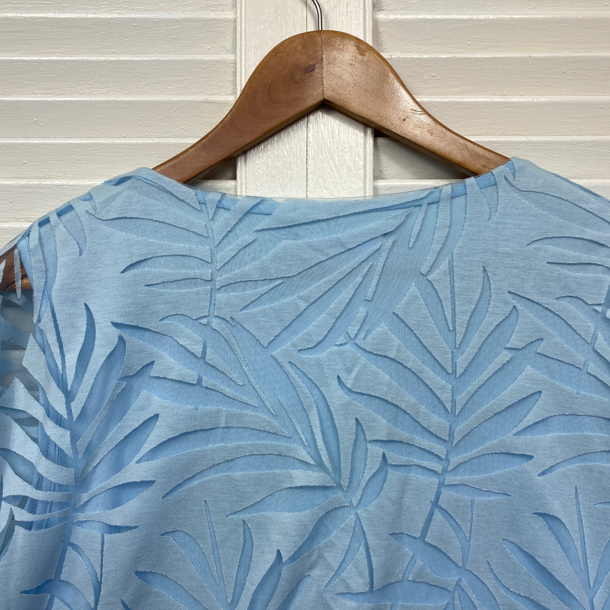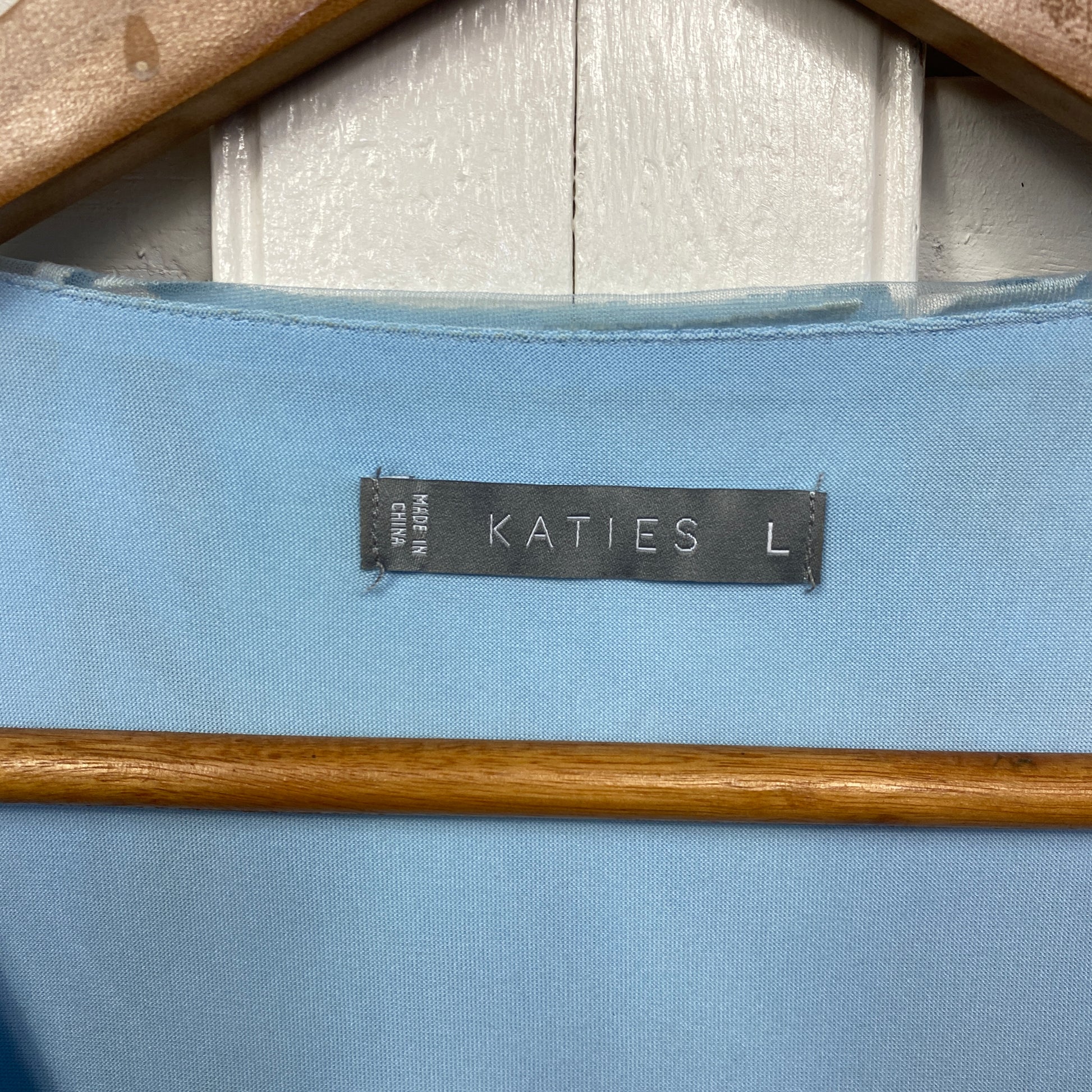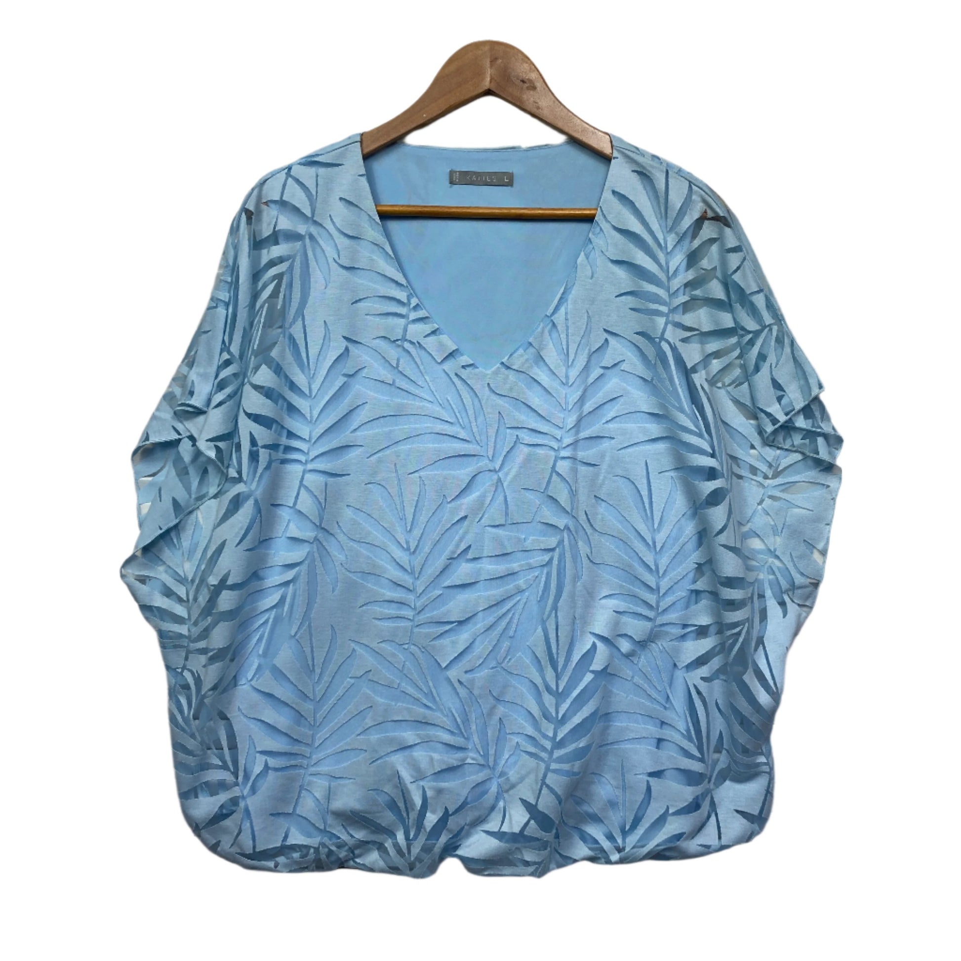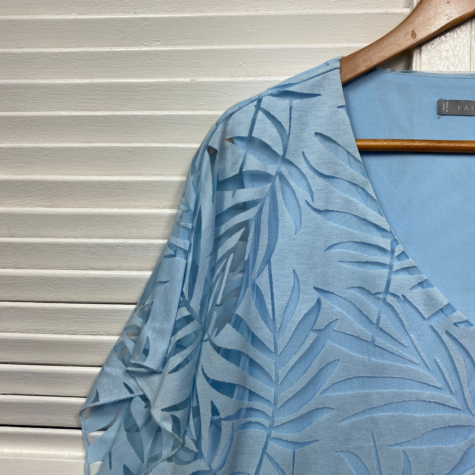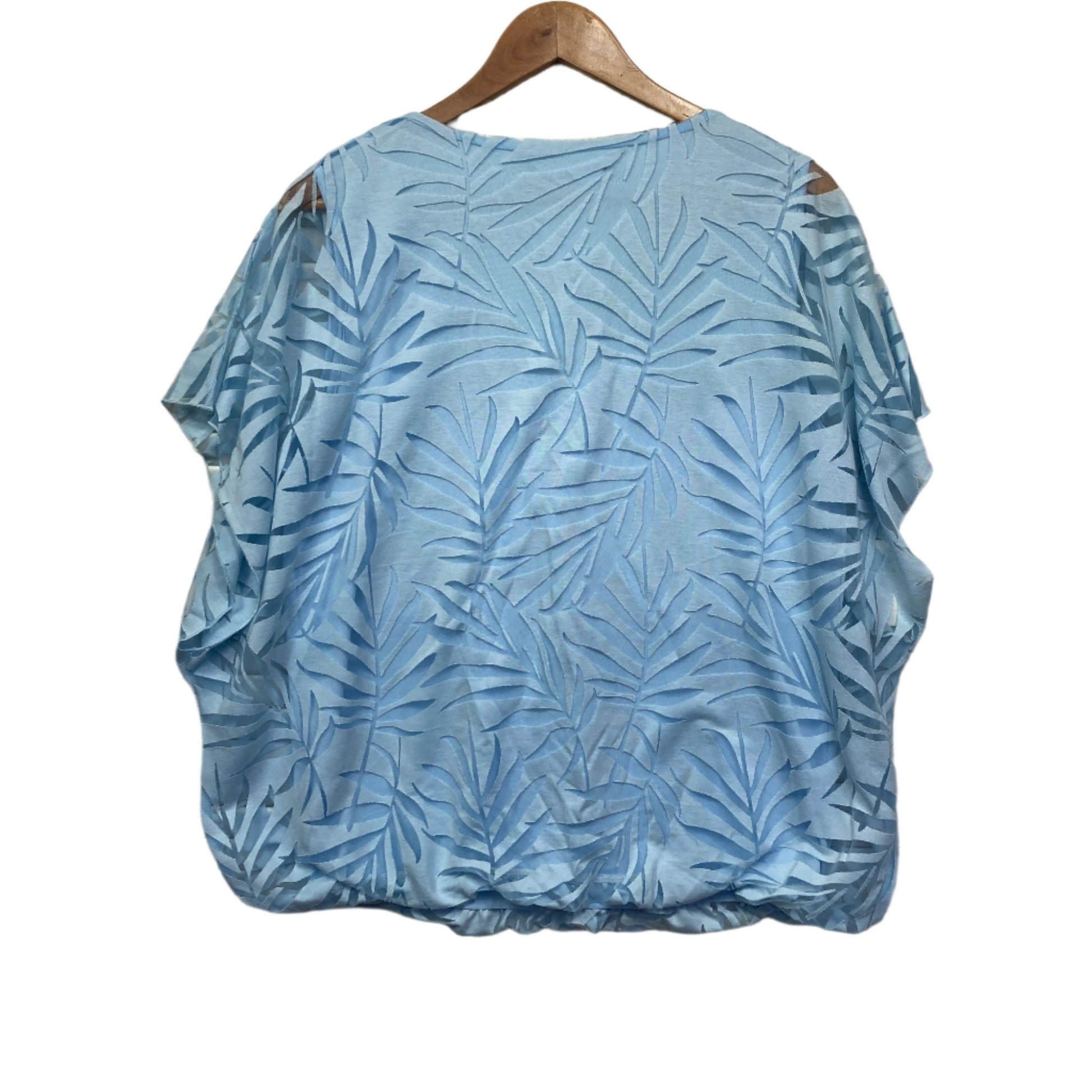 Katies Top Size 14 Large Blue Sheer Overlay Short Sleeve