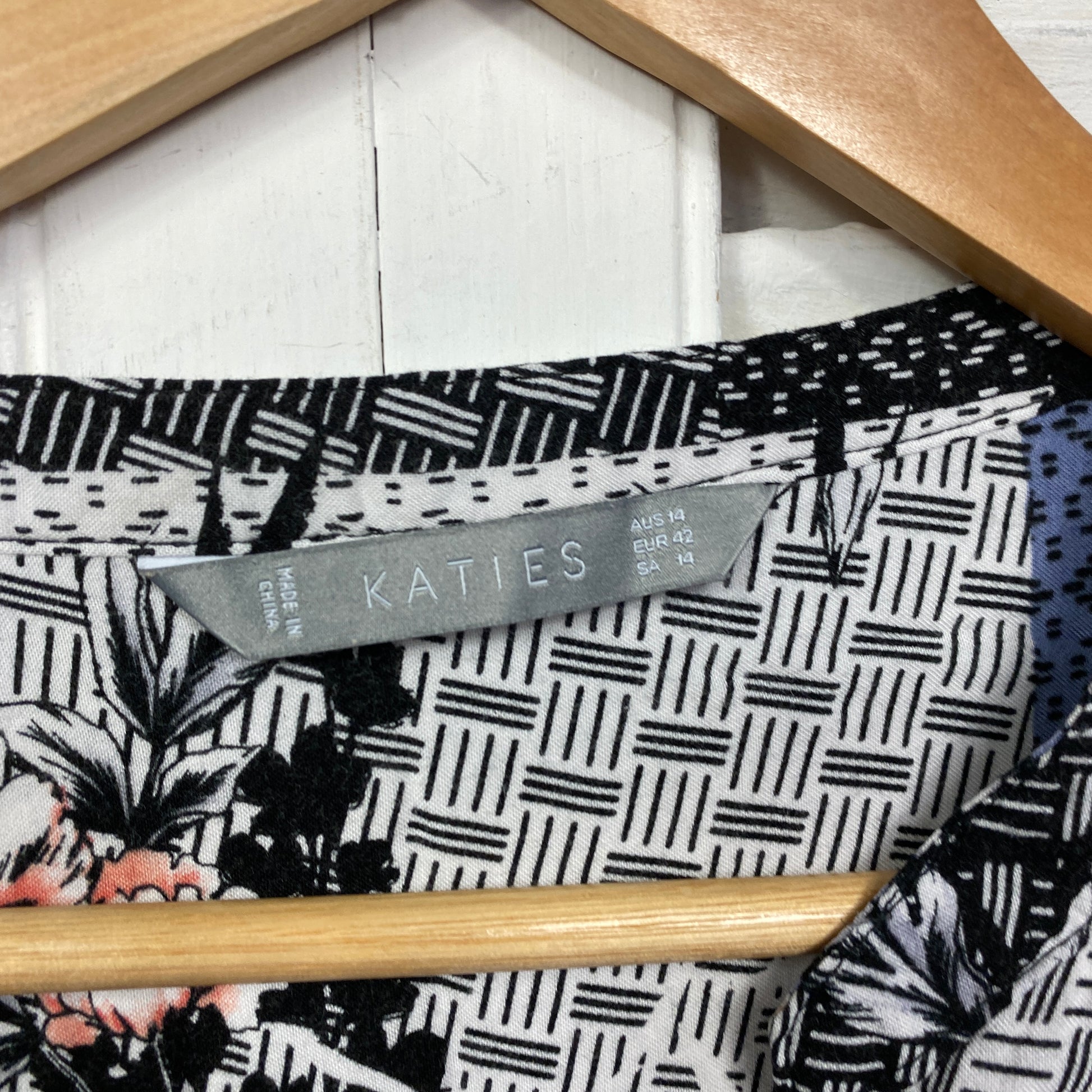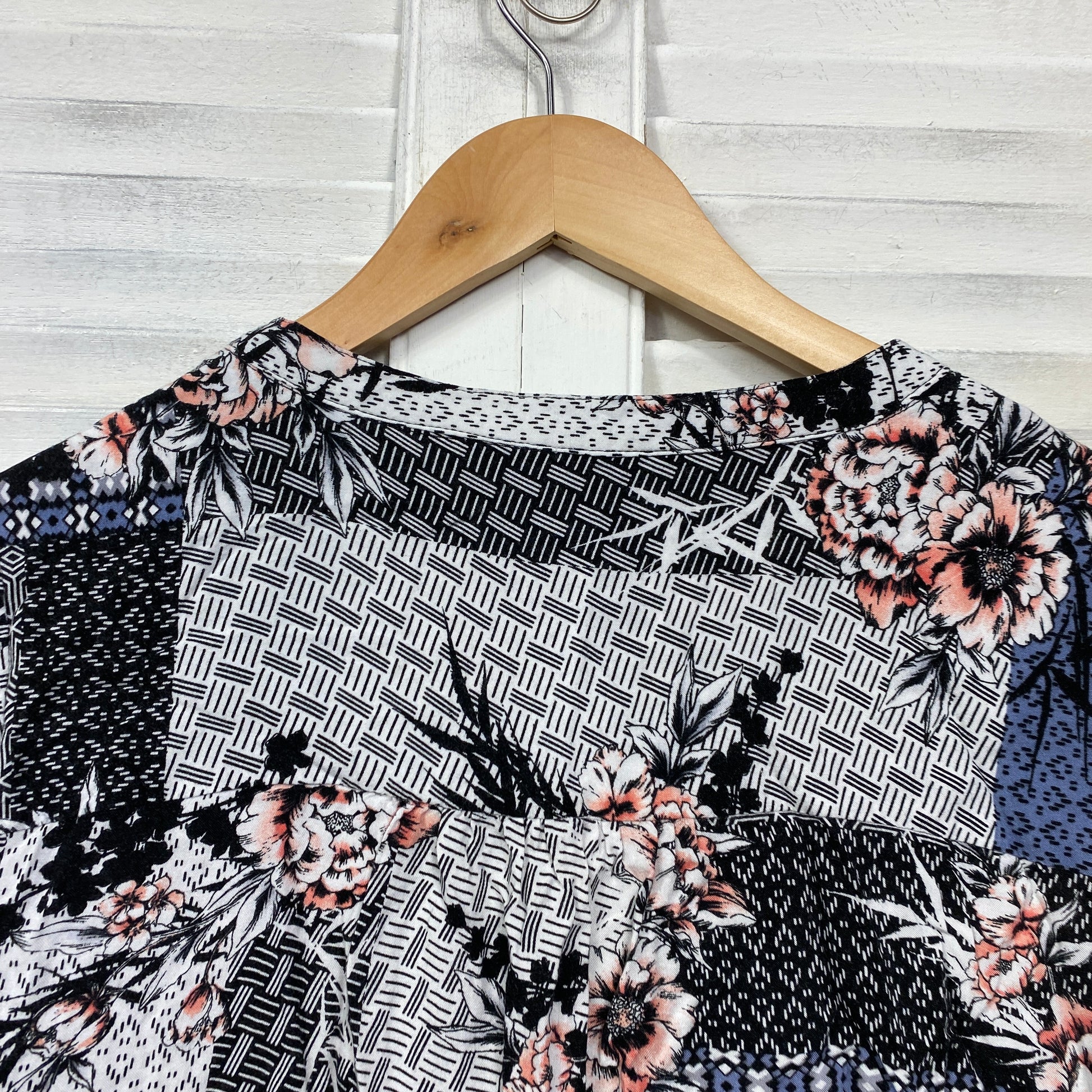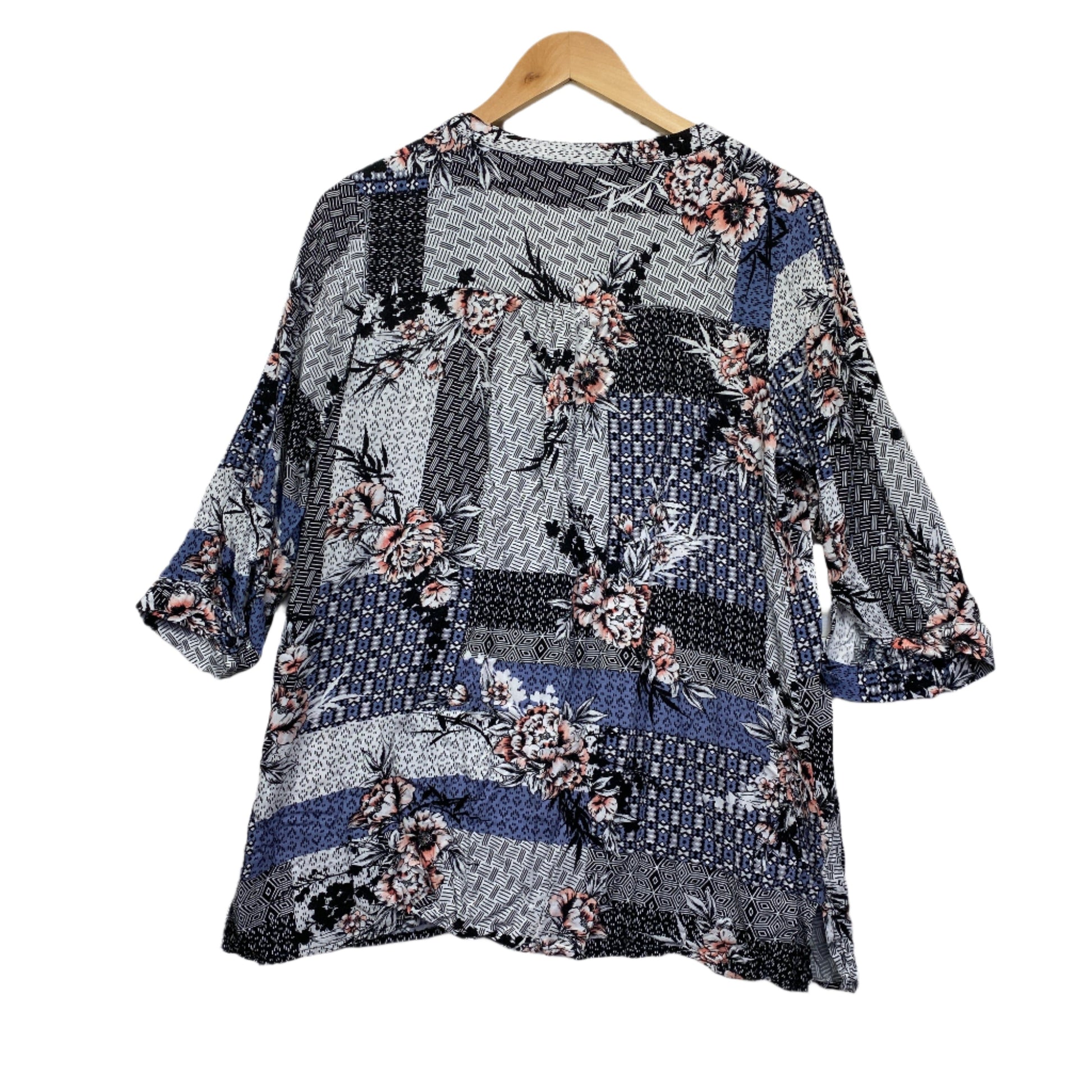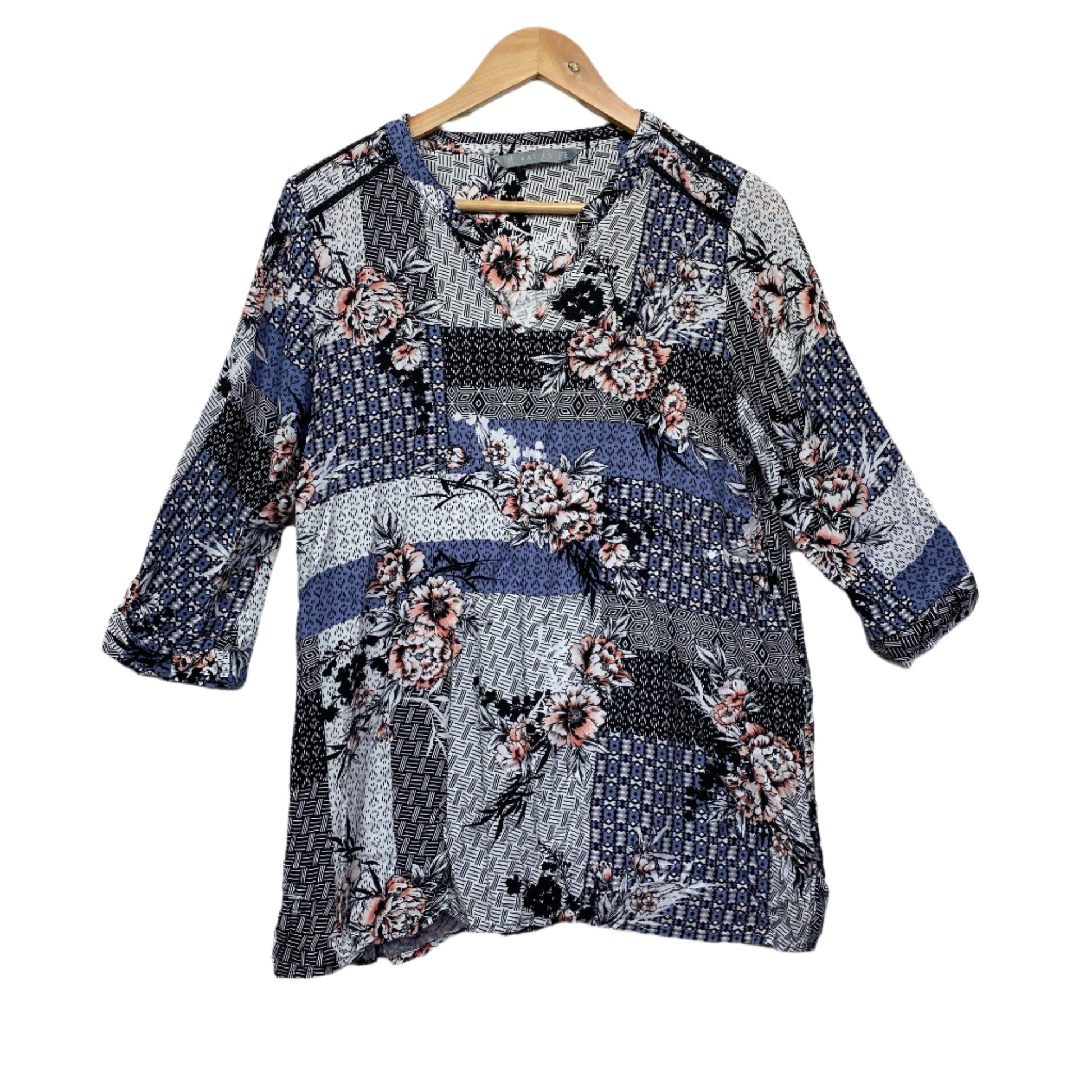 Katies Top Size 14 Patchwork Print 3/4 Sleeve