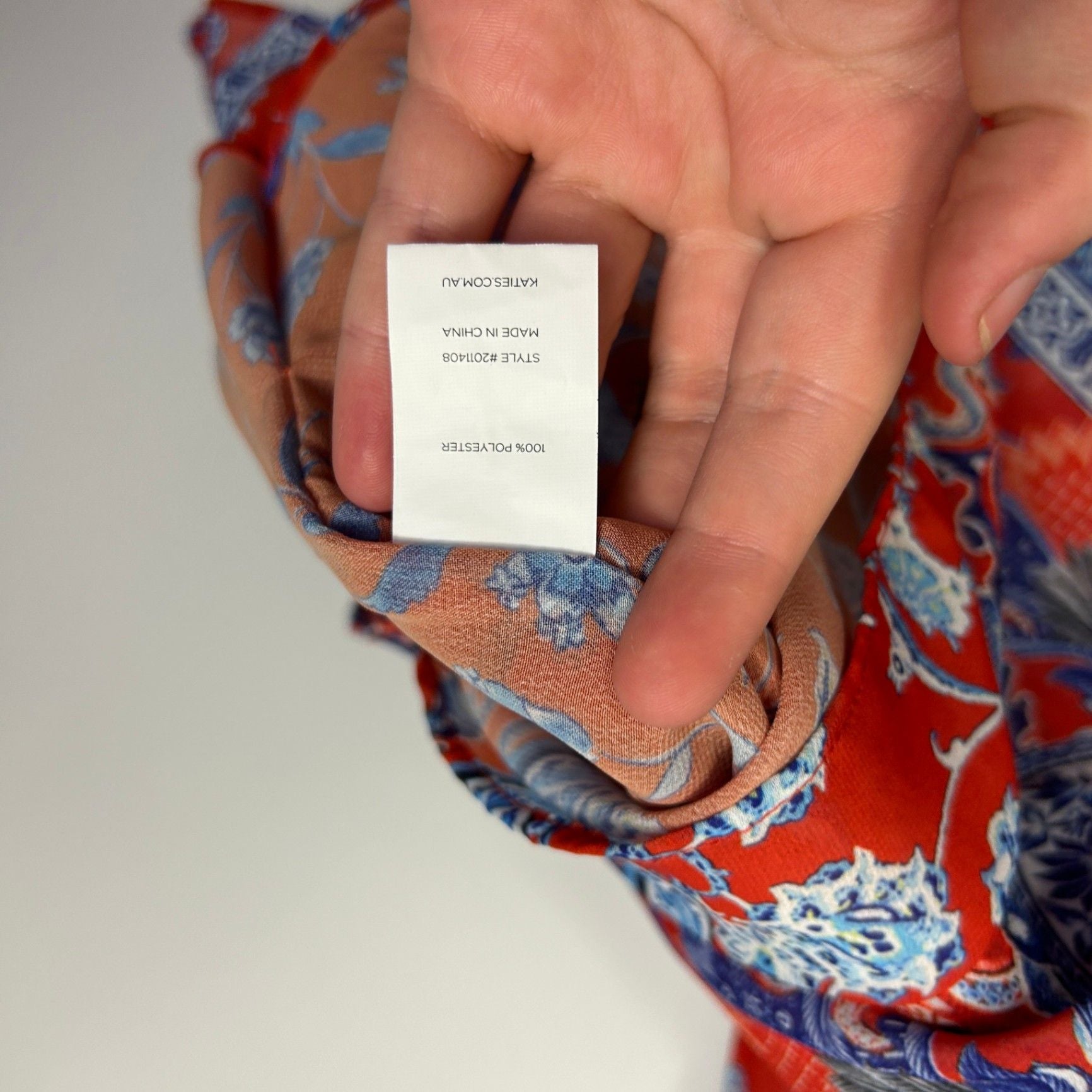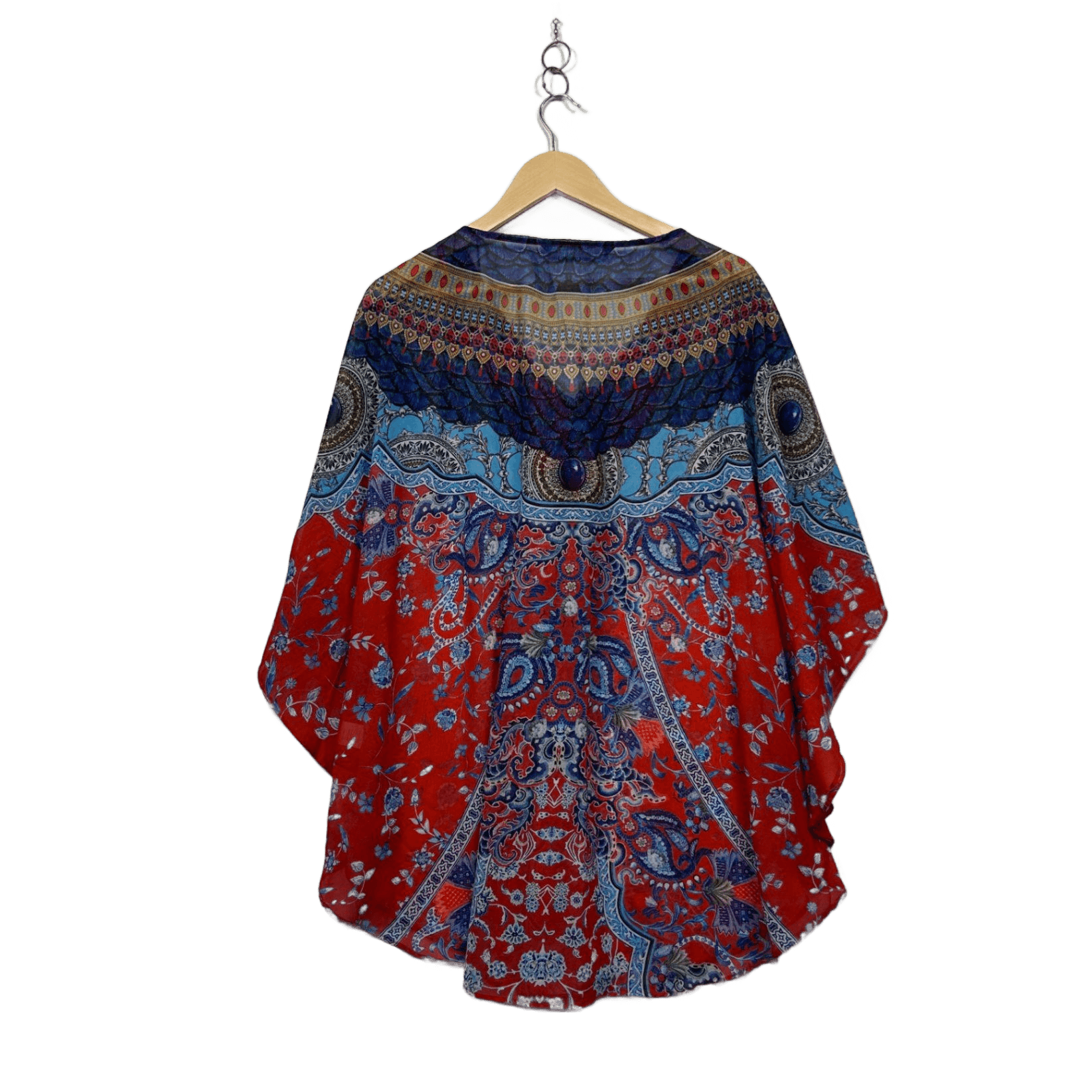 Katies Womens Red Blue Multi Short Batwing Kaftan Top Blouse Size 2XL