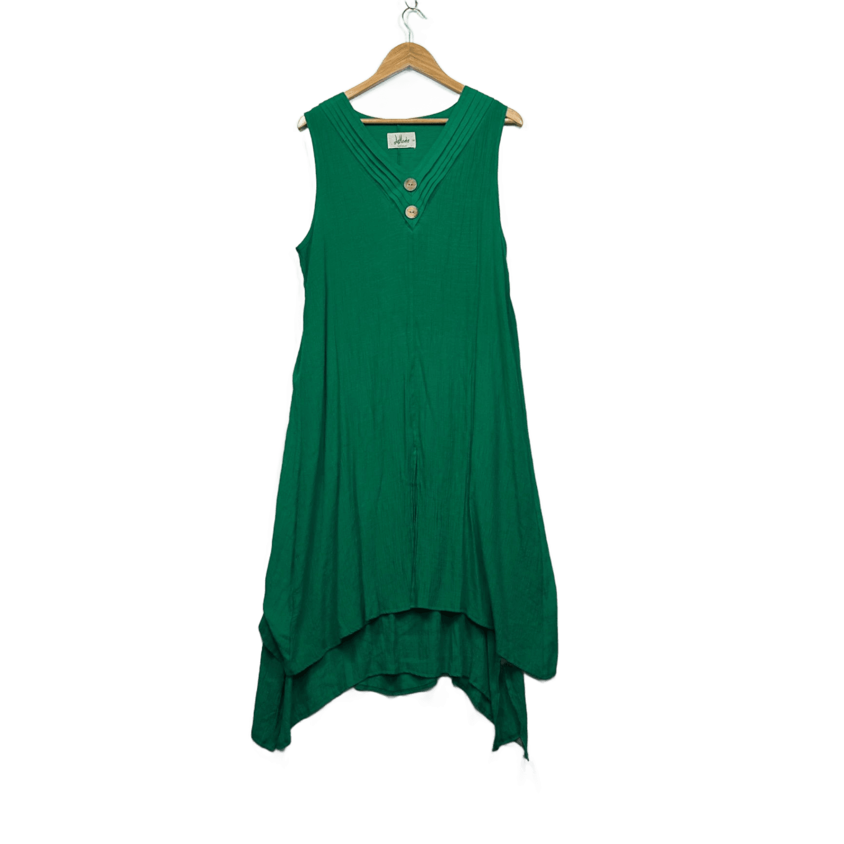 La Mode Green Cotton Blend Sleeveless Midi V-Neck Layered Maxi Dress Size 18