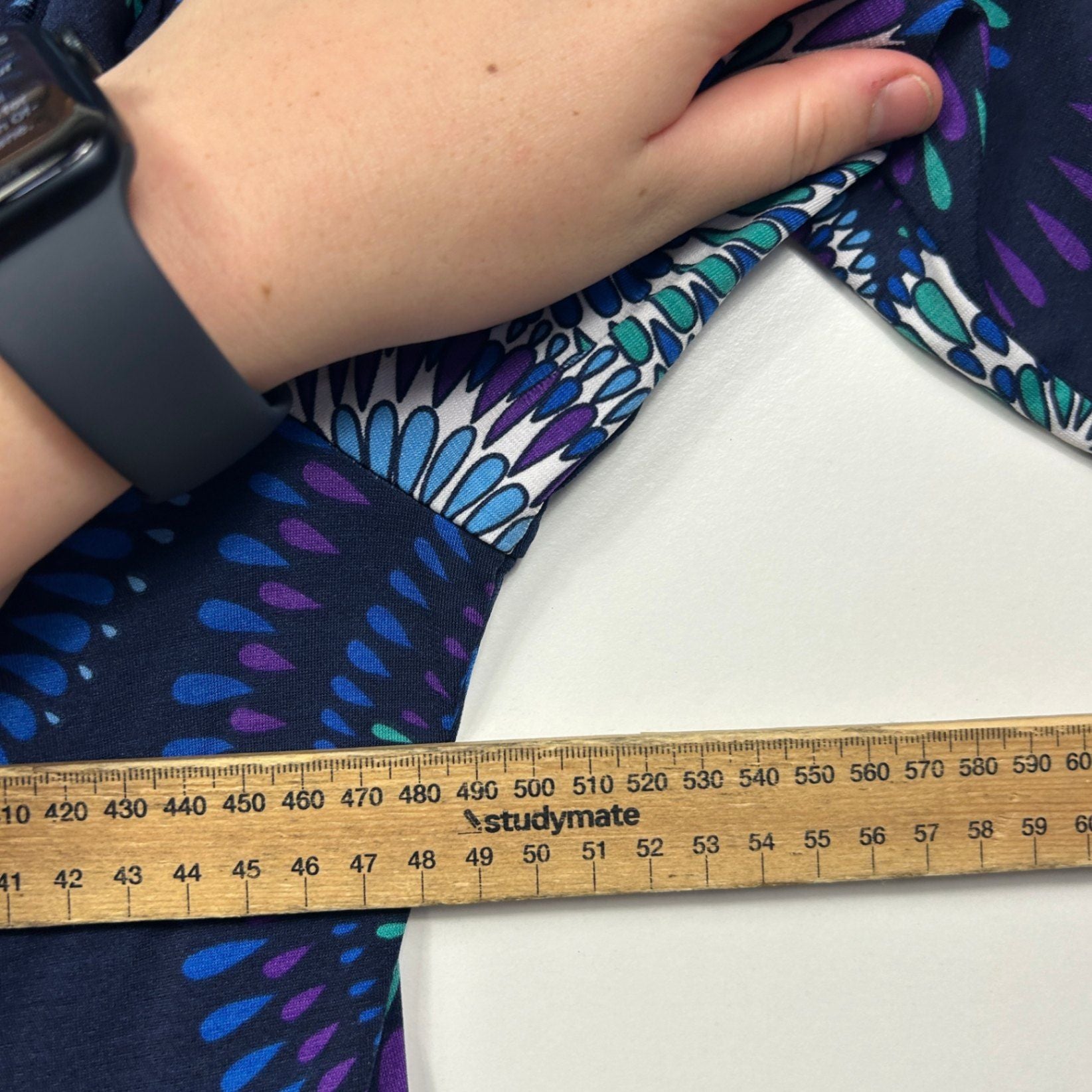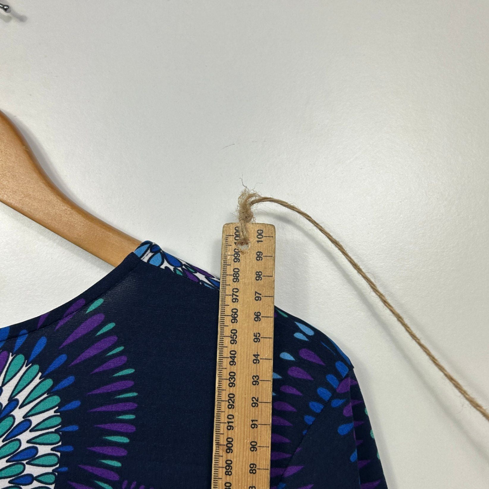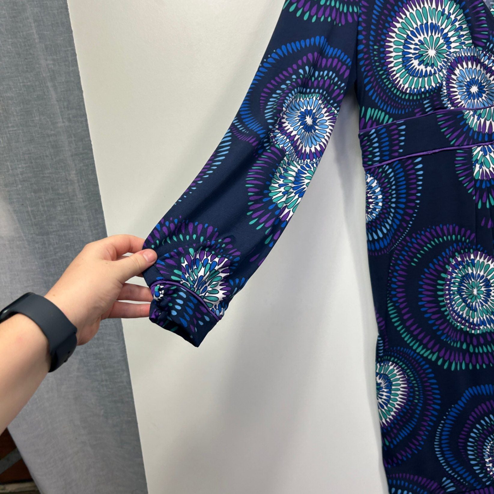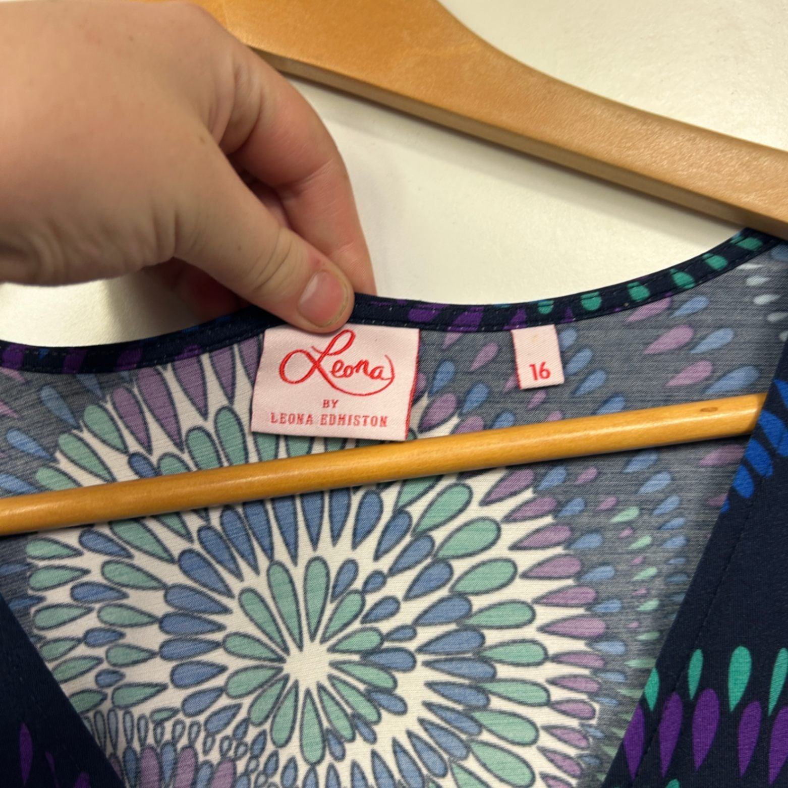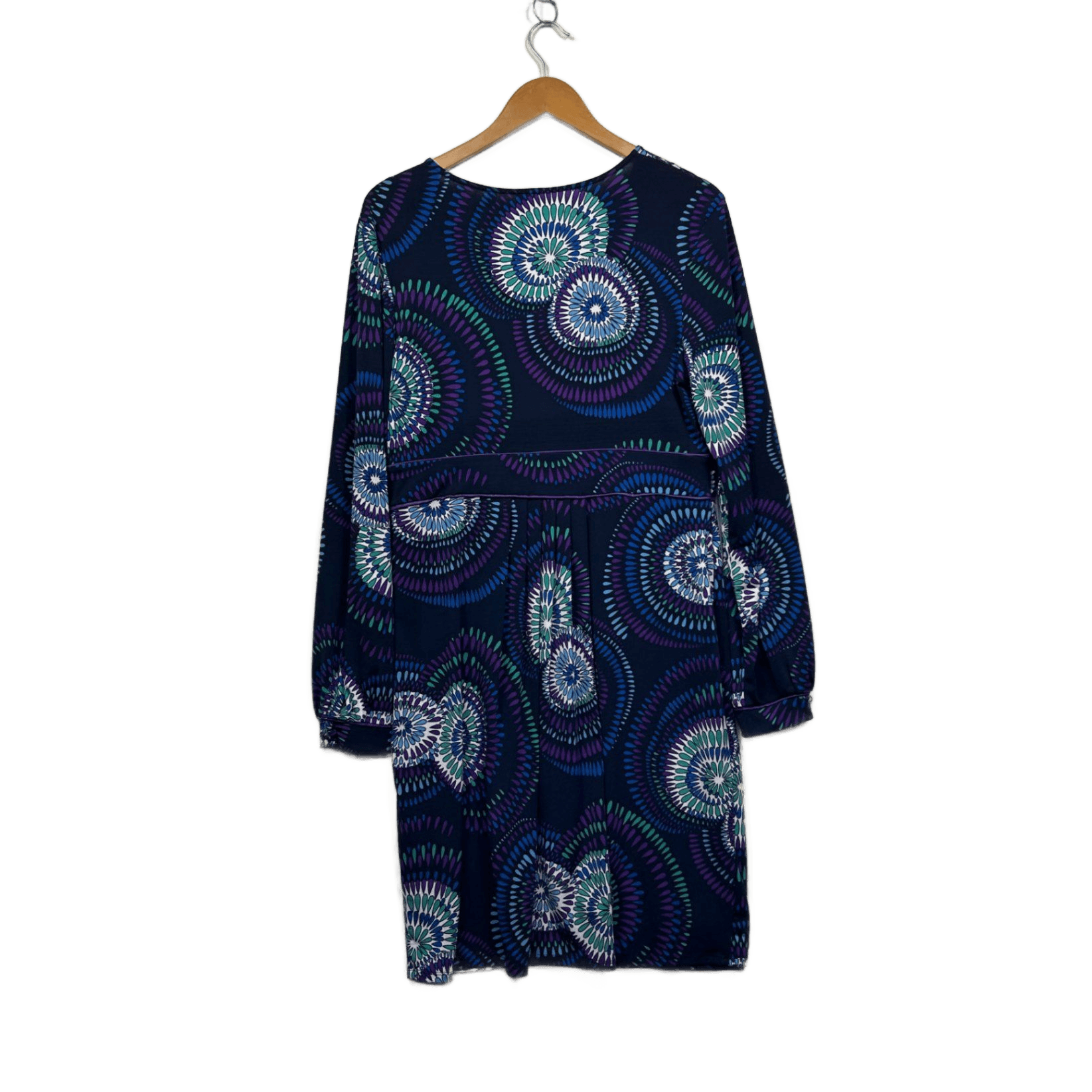 Leona Edmiston Black Blue Long Sleeve V Neck Dress Size 16