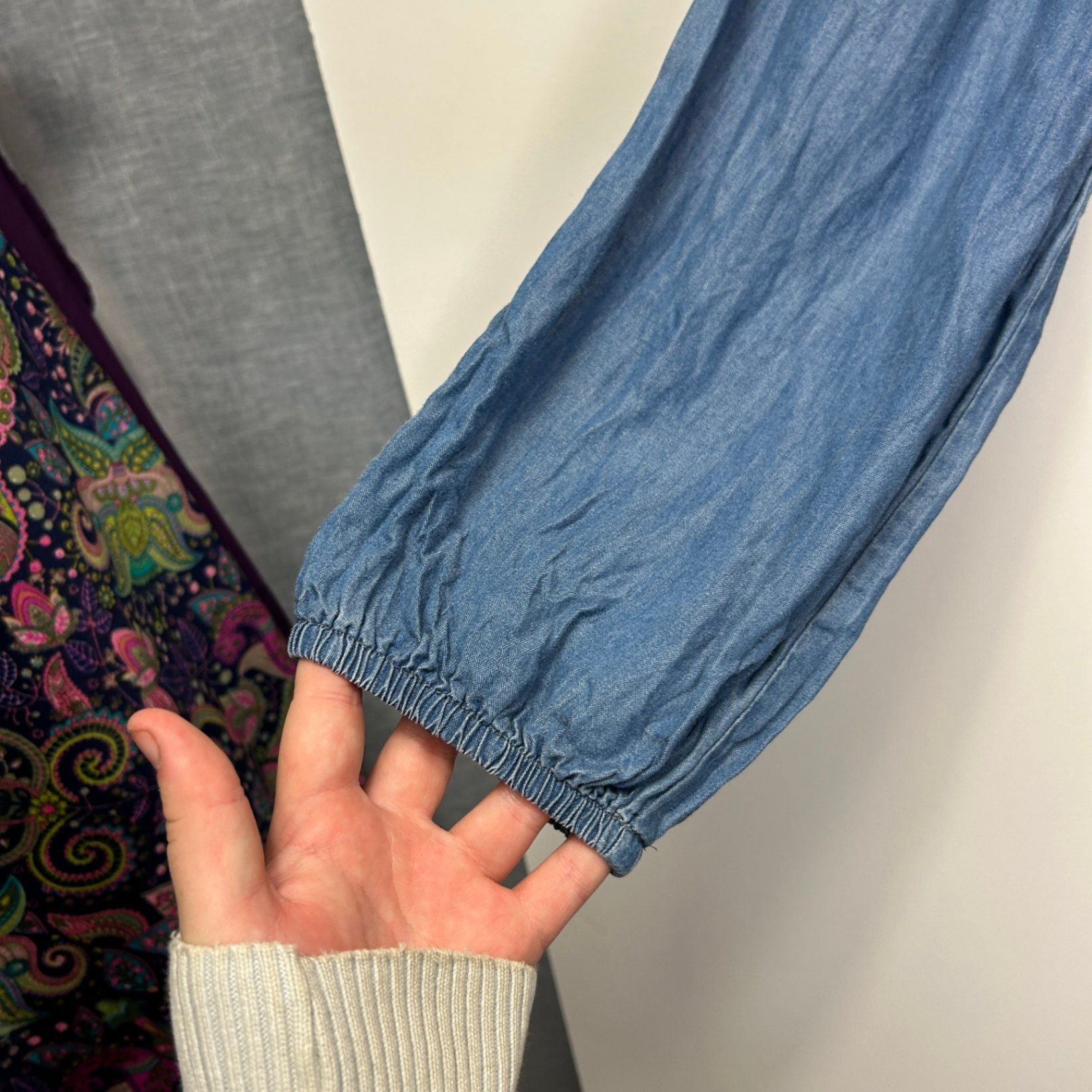 Little Party Dress Blue Chambray Cotton Long Maxi Shirt Dress Size 18