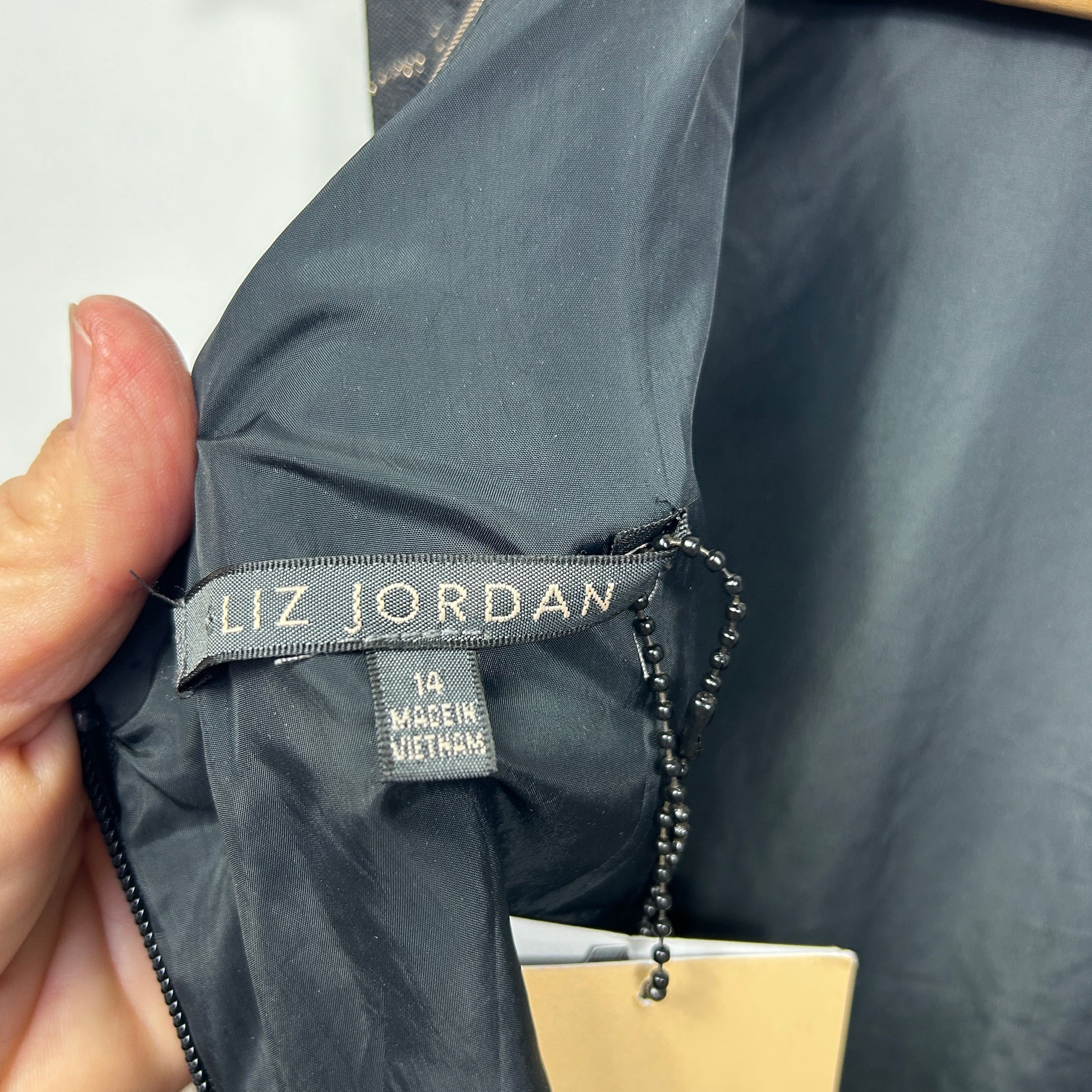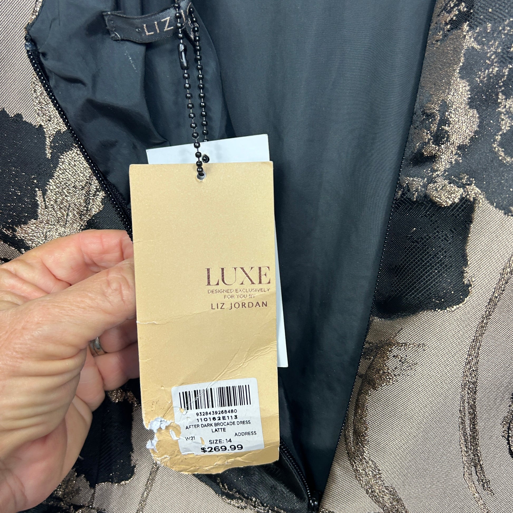 Liz Jordan Black and Gold Brocade Evening Cocktail Dress - Size 14