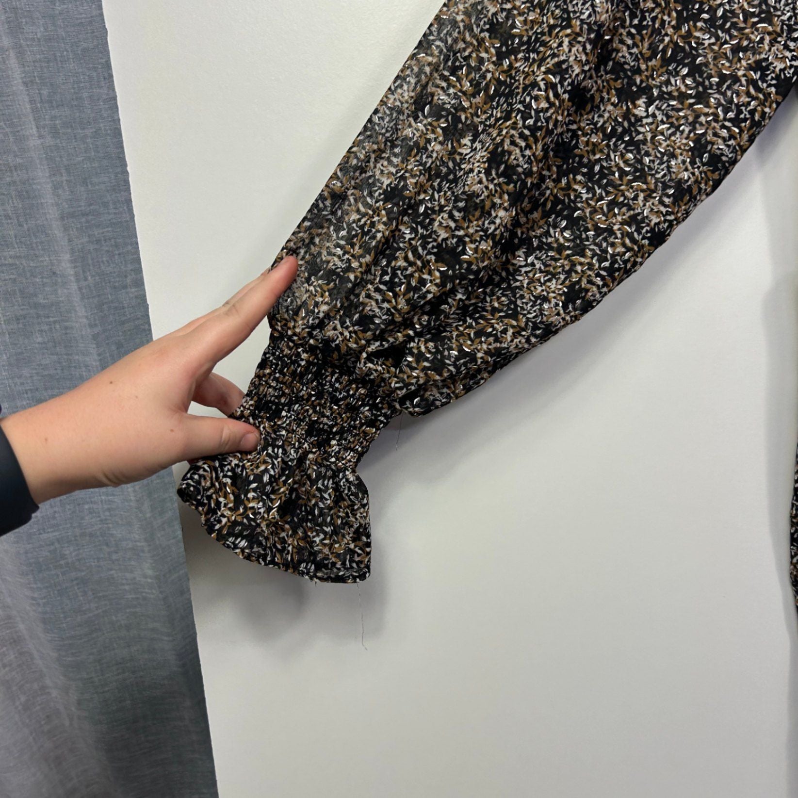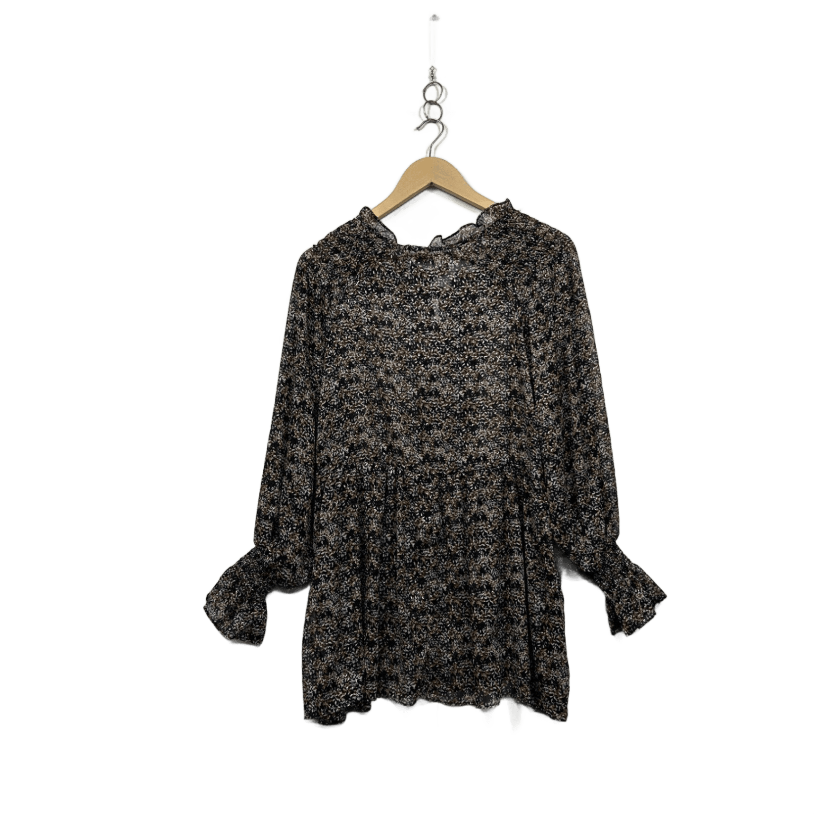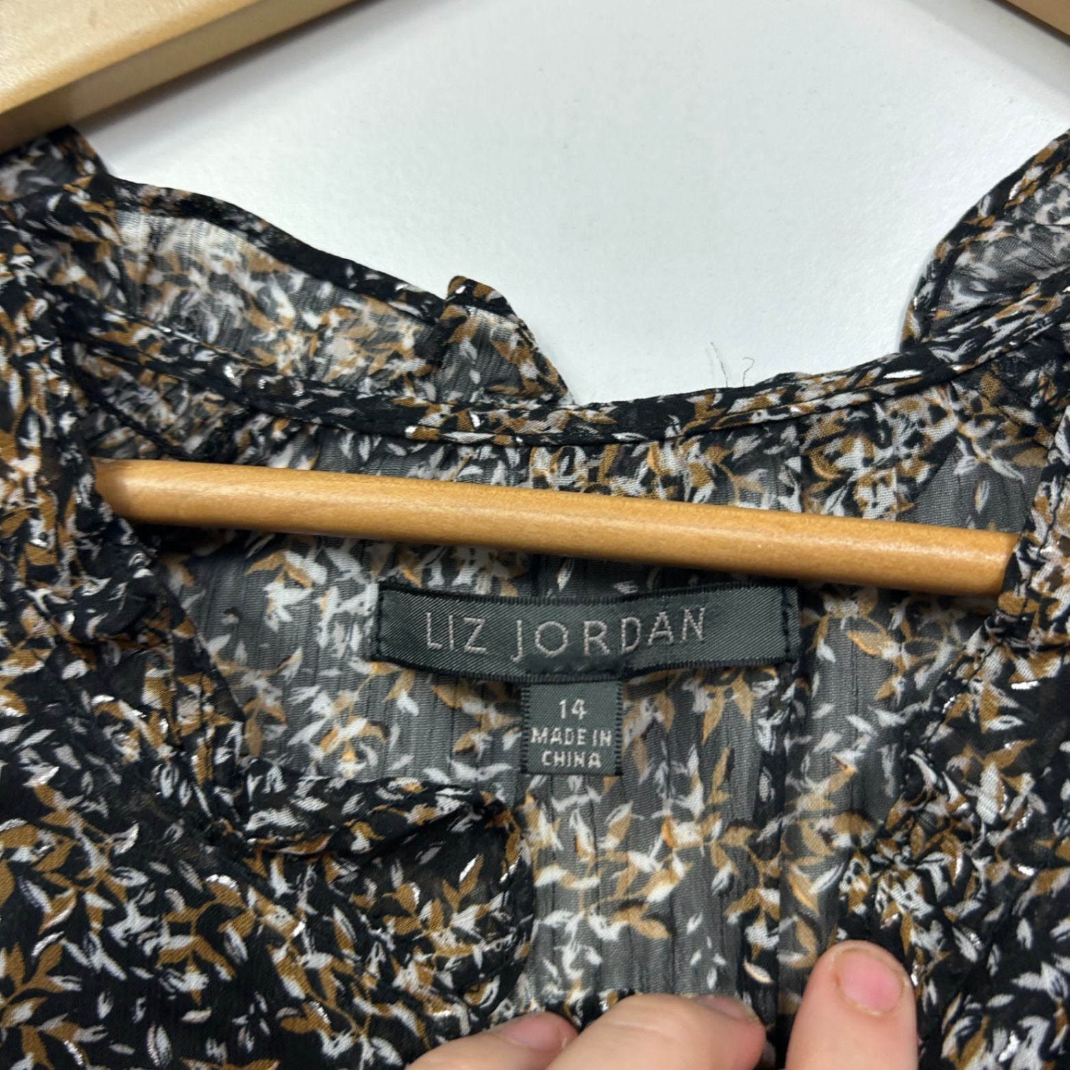 Liz Jordan Black Brown White Long Sleeve Top Blouse Size 14