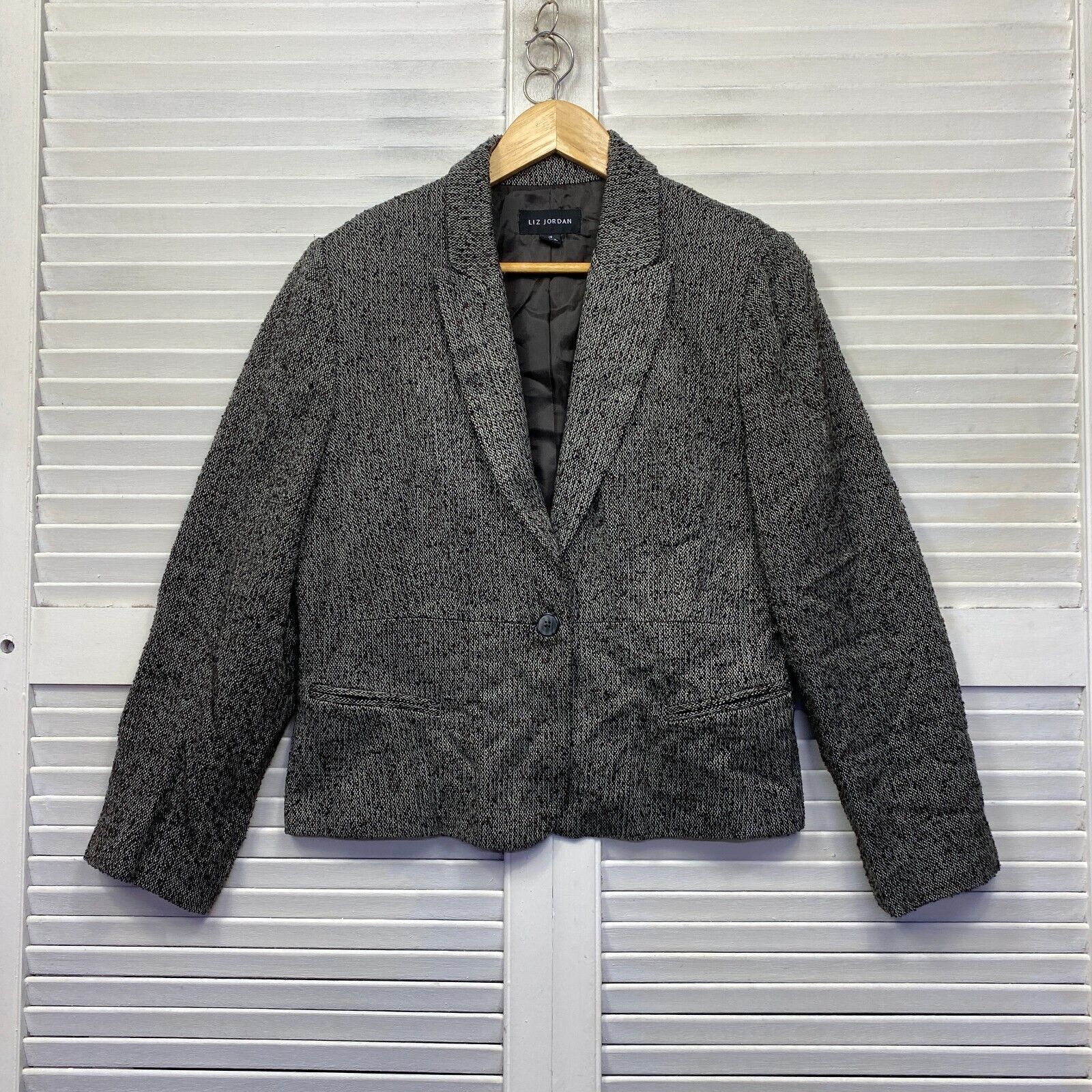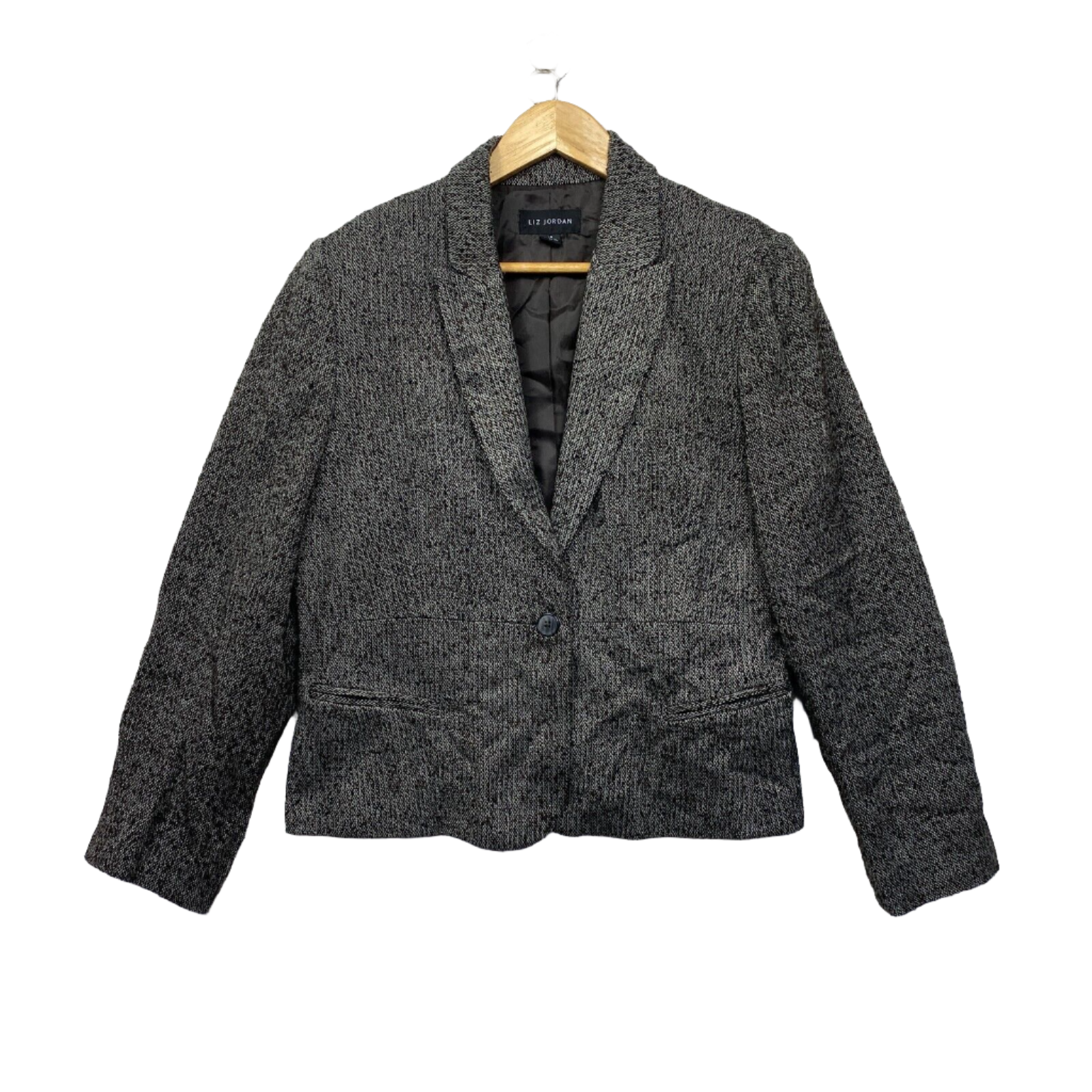 Liz Jordan Jacket Blazer Size 14 Chocolate Long Sleeve Collared Wool Blend