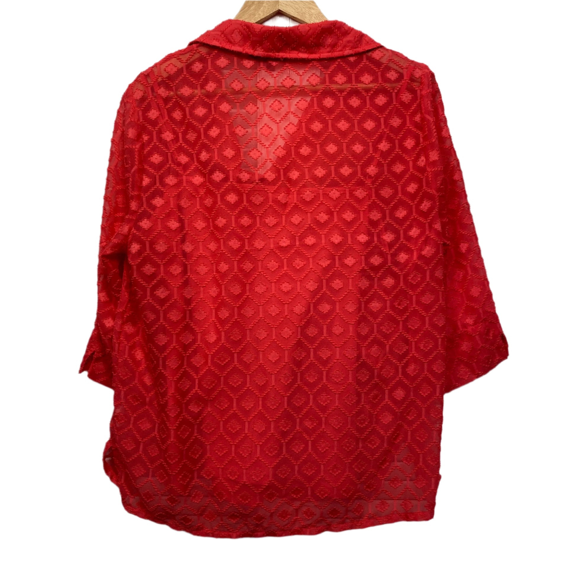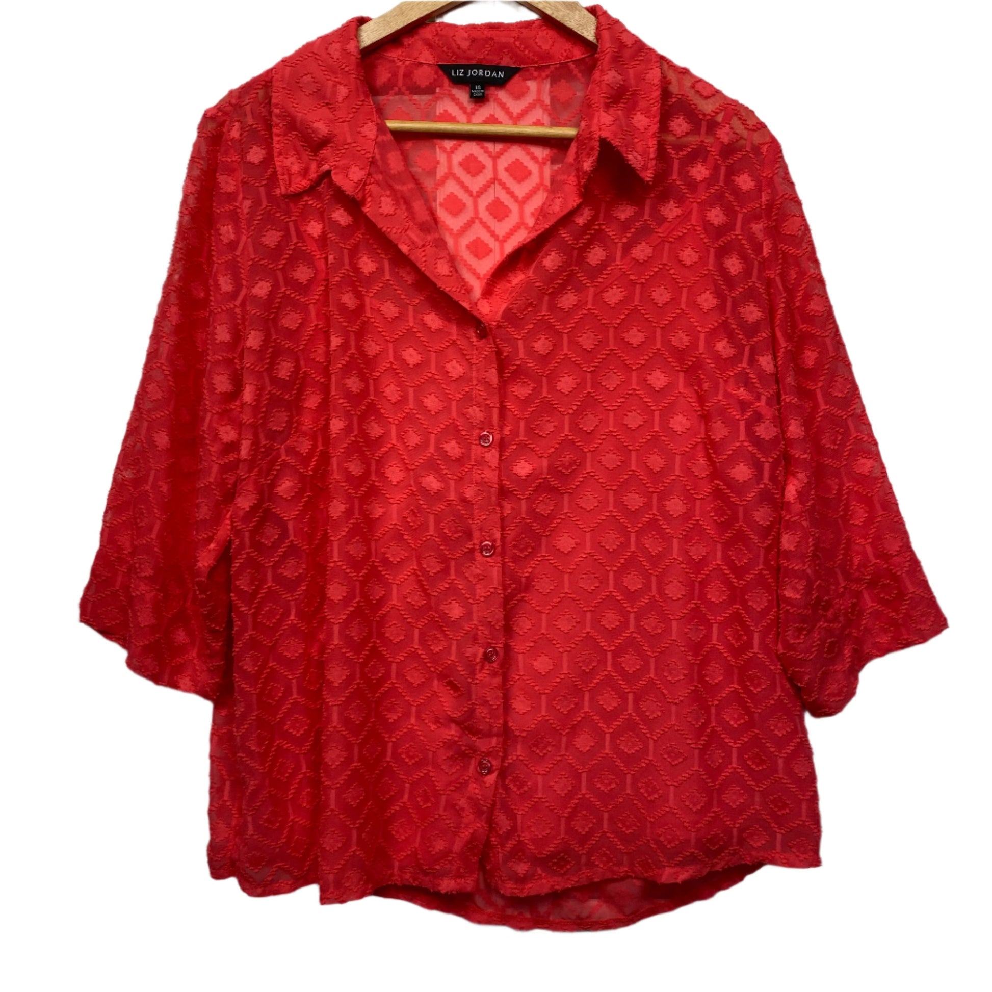 Liz Jordan Top Size 14 Red Button Up Long Sleeve Sheer