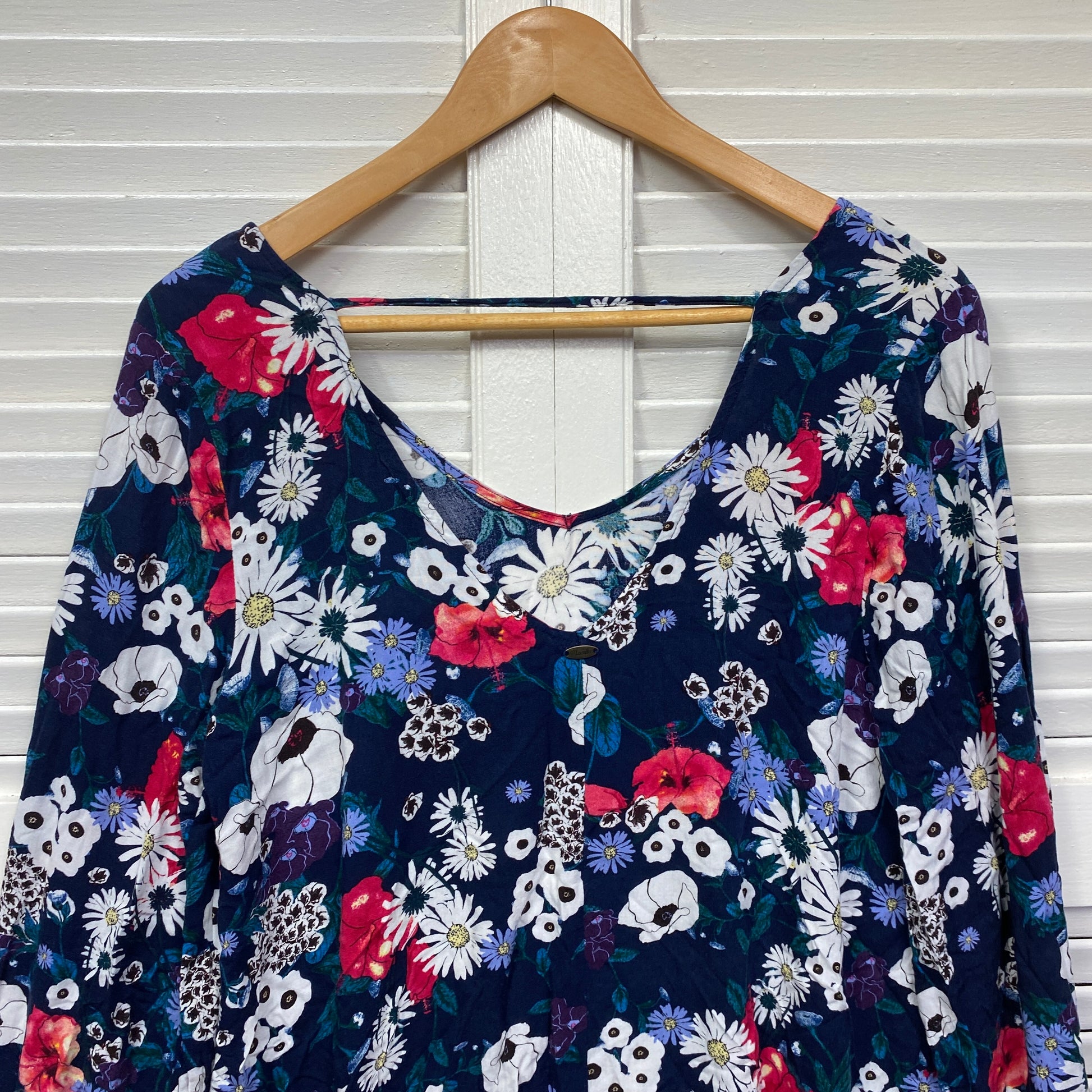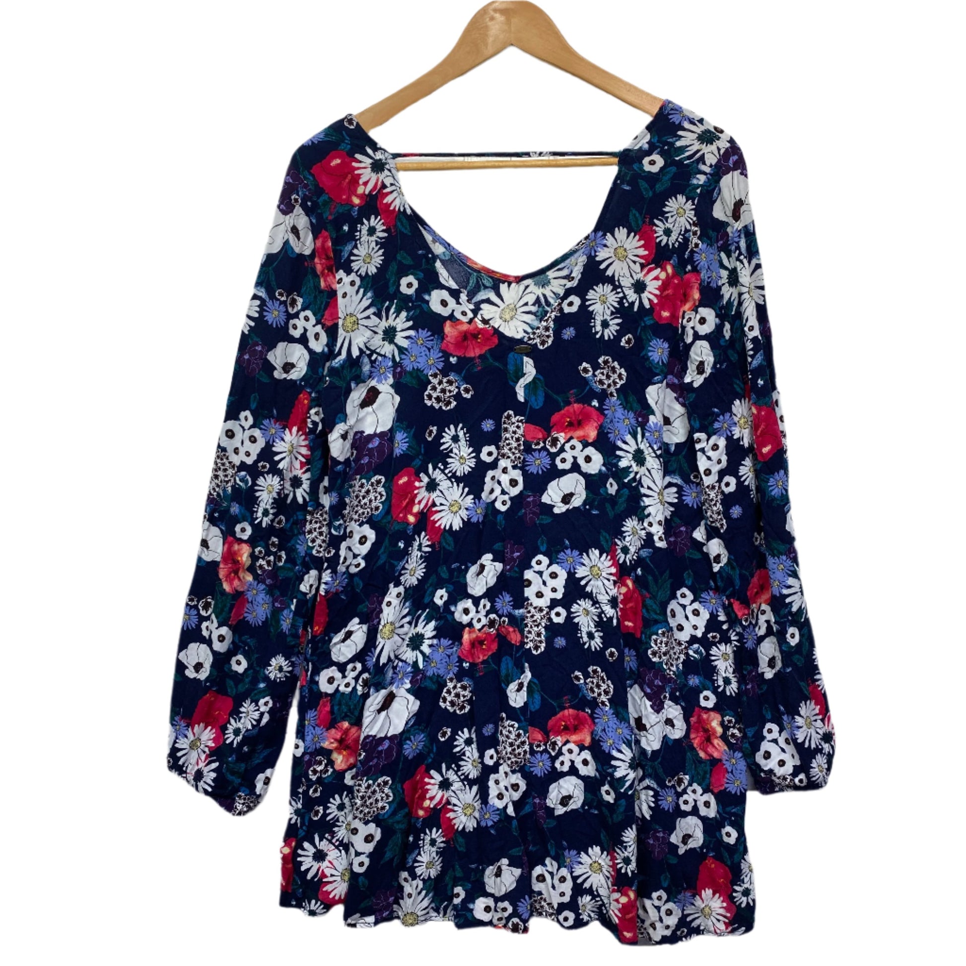 Mambo Top Size 14 Floral Long Sleeve Viscose