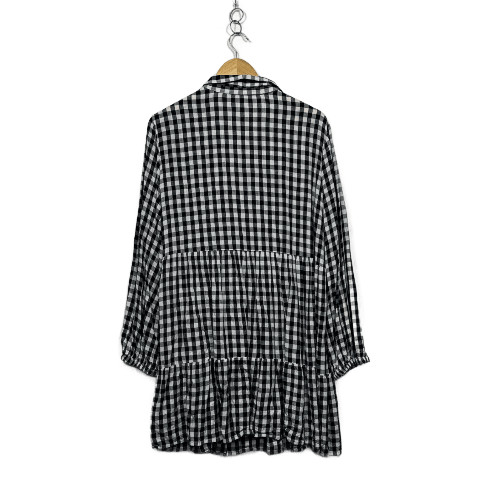 &me Black White Viscose Long Sleeve Gingham Check Smock Dress Size 14