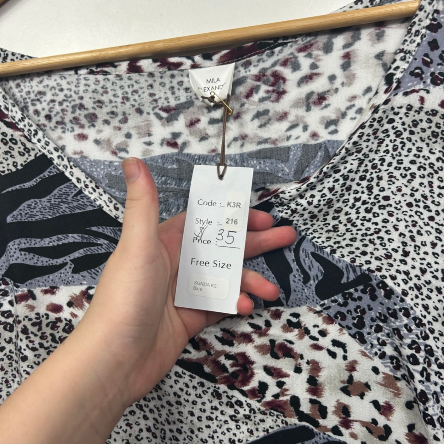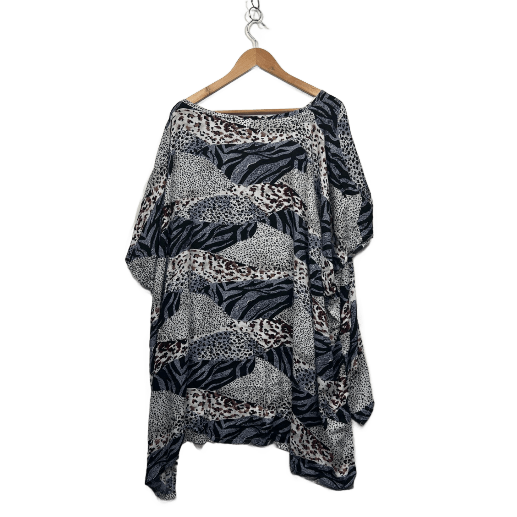 Mila Alexandra Womens Blue White Black V Neck Kaftan Top Blouse One Size