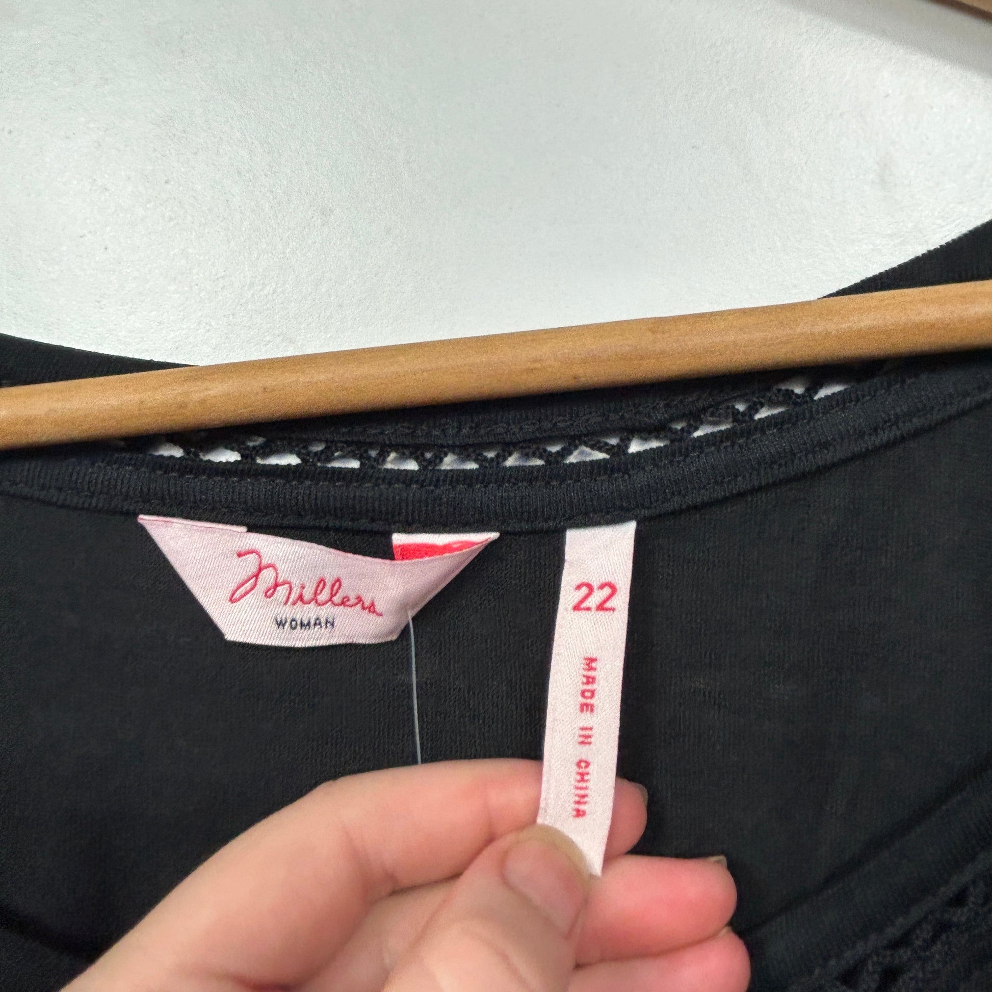 Millers Black T-Shirt with Crochet Neckline Trim - Size 22