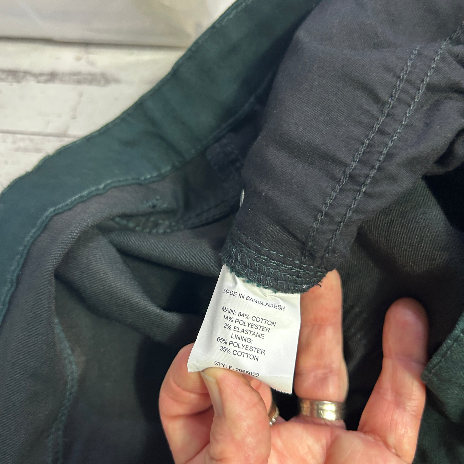 Material: 84% Cotton, 14% Polyester, 2% Elastane