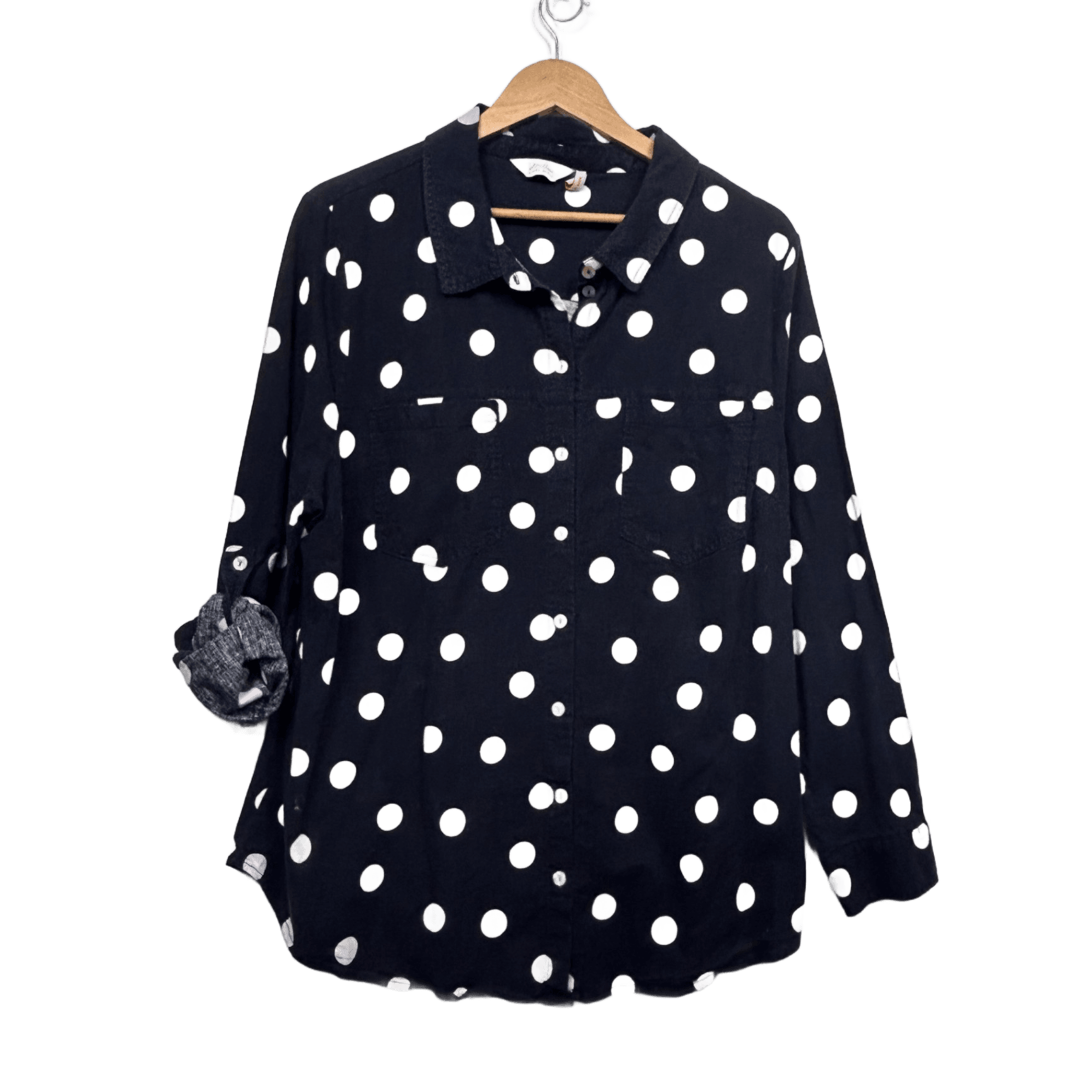 Millers Linen Blend Button-Up Shirt Size 20 Blue Polka Dots Roll Tab Sleeve