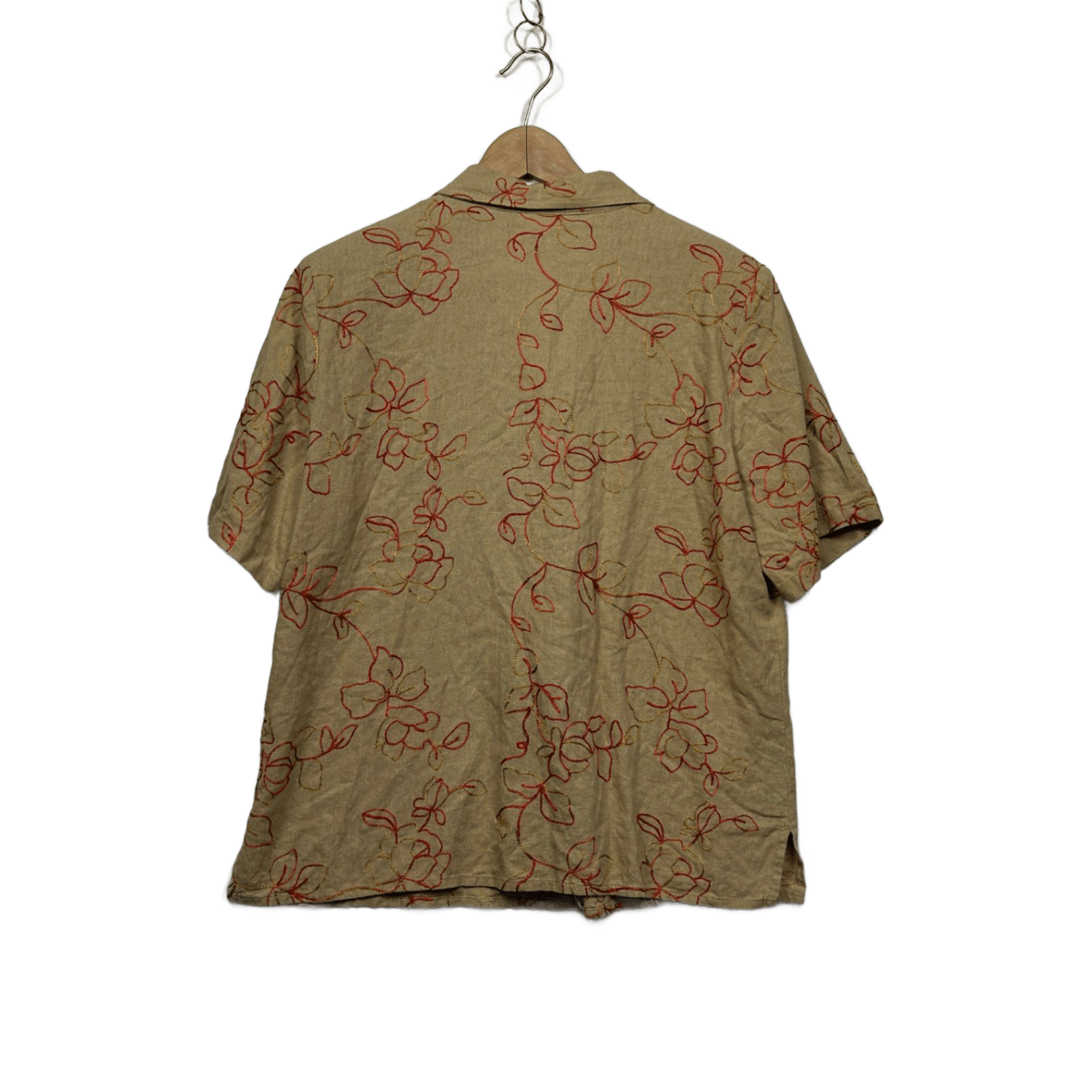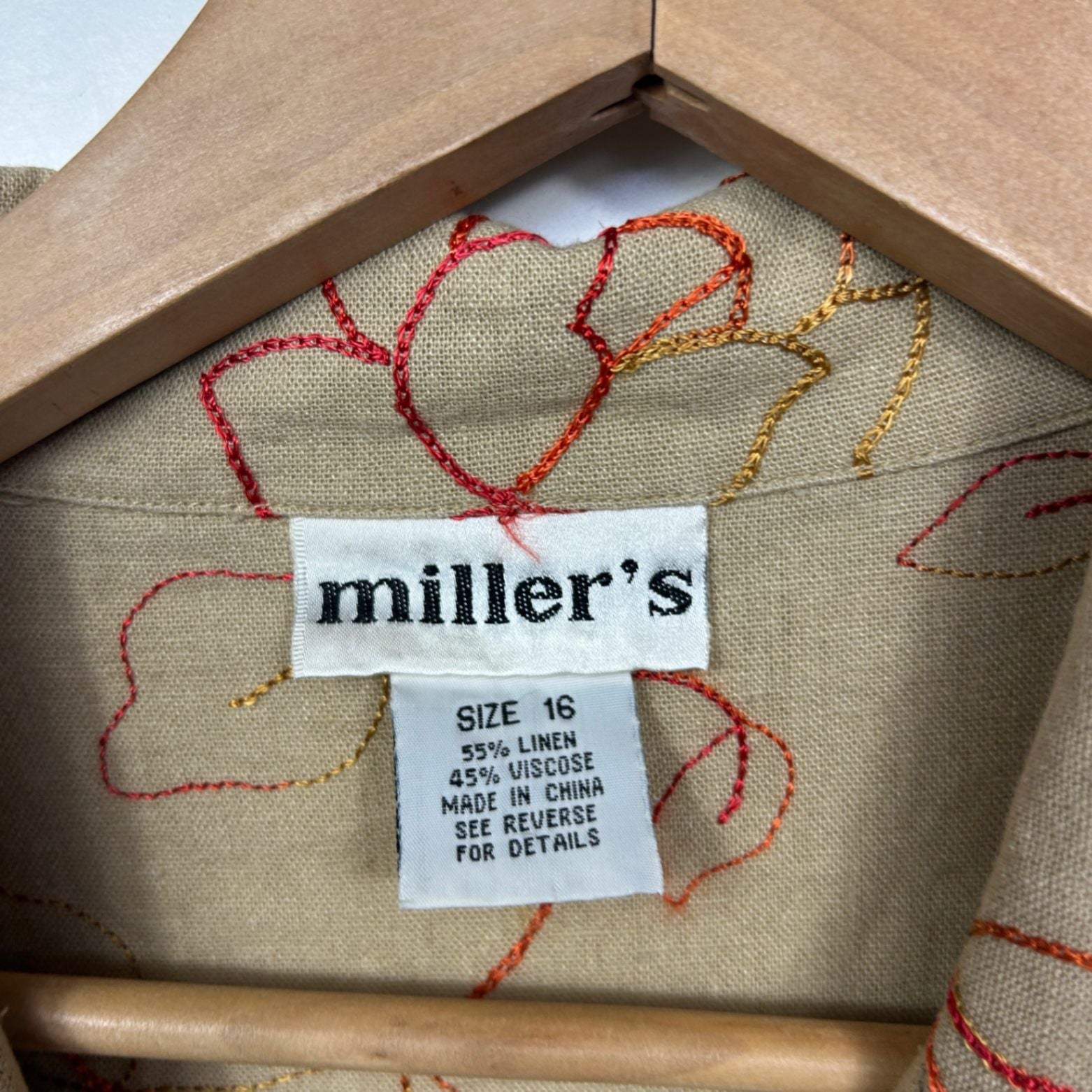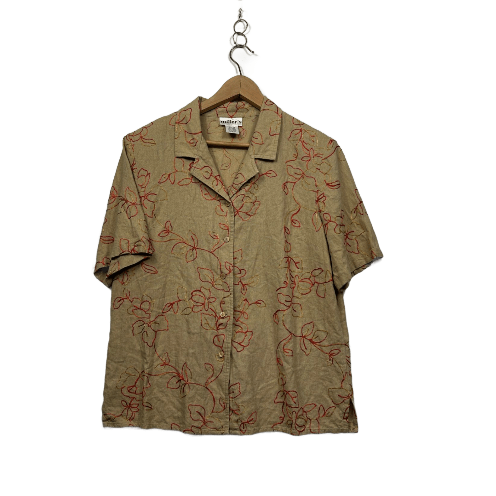 Millers Linen Blend Short Sleeve Button-Up Embroidered Shirt Blouse Size 16