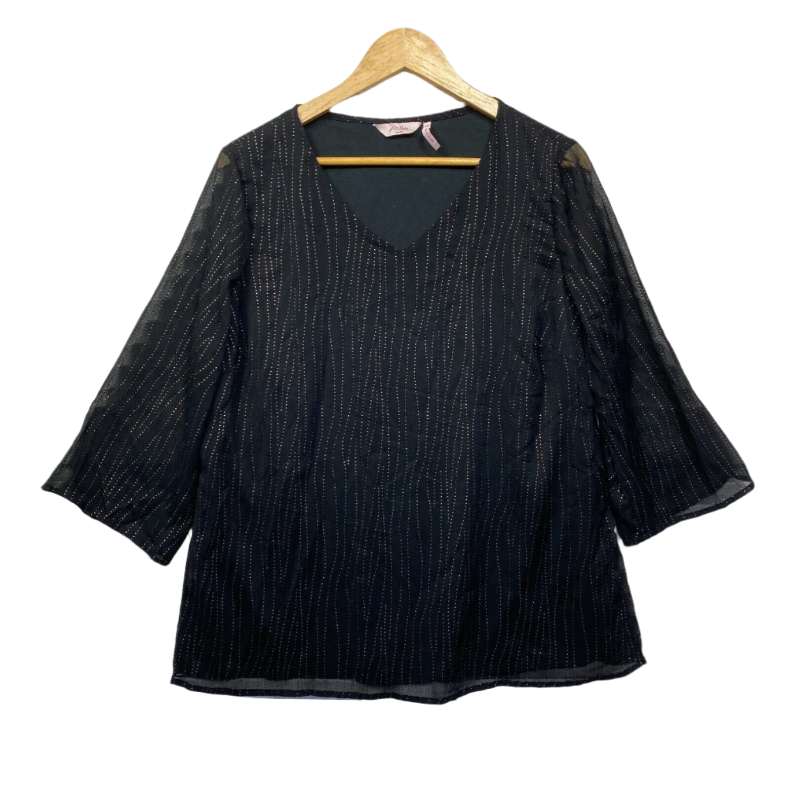 Millers Top Size 14 Black Gold Embellishments Sheer Sleeve Evening Cocktail