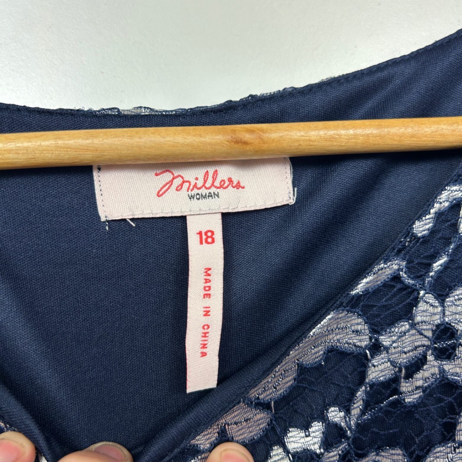 Millers Women's Navy Blue Occasional Lace Overlay Top Blouse Size 18
