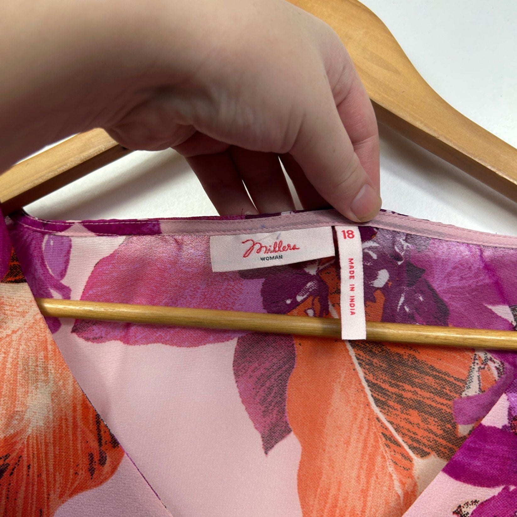 Millers Womens Pink Floral Short Sleeve V-neck Top Blouse Size 18