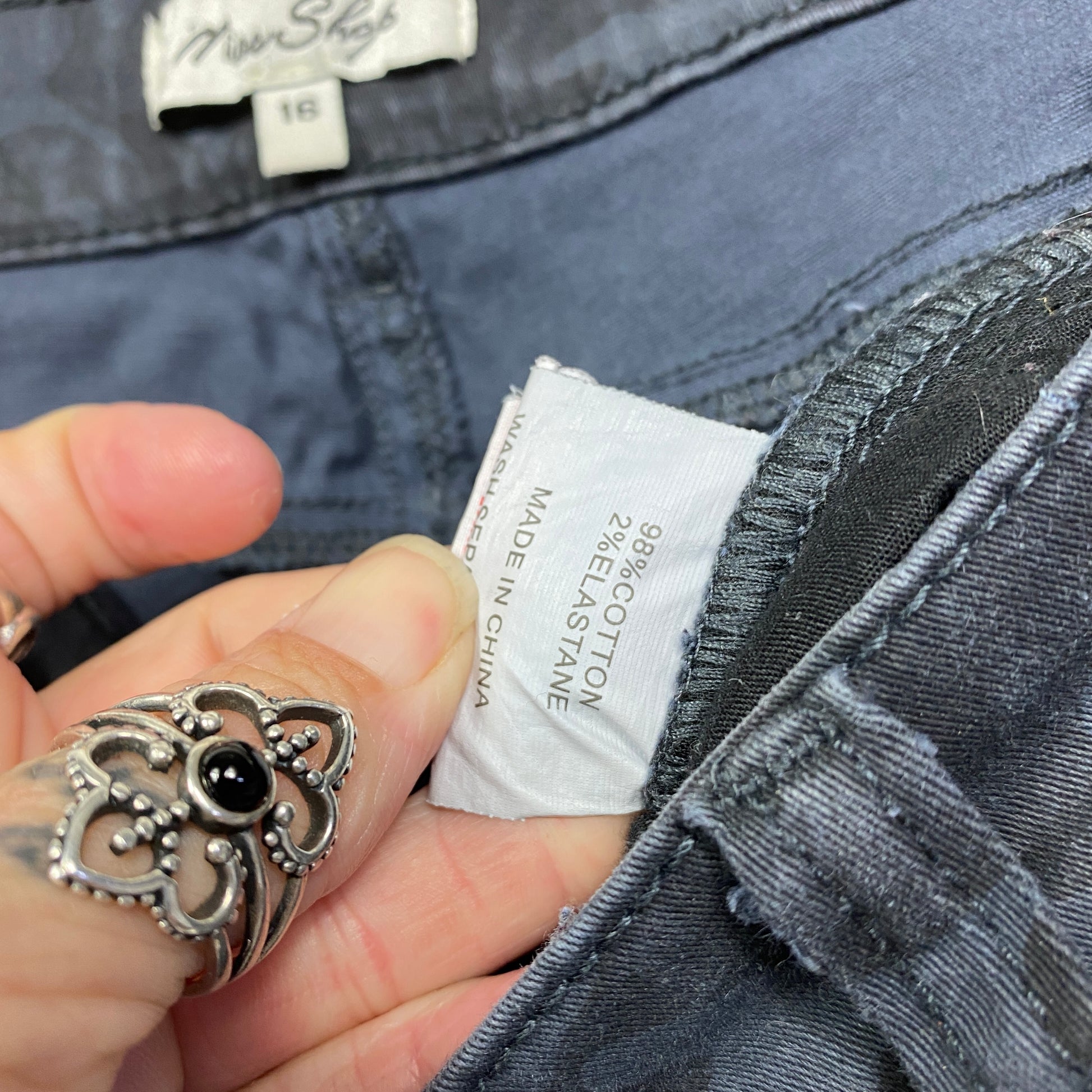 Miss Shop Jeans Size 16 Black Camouflage Print