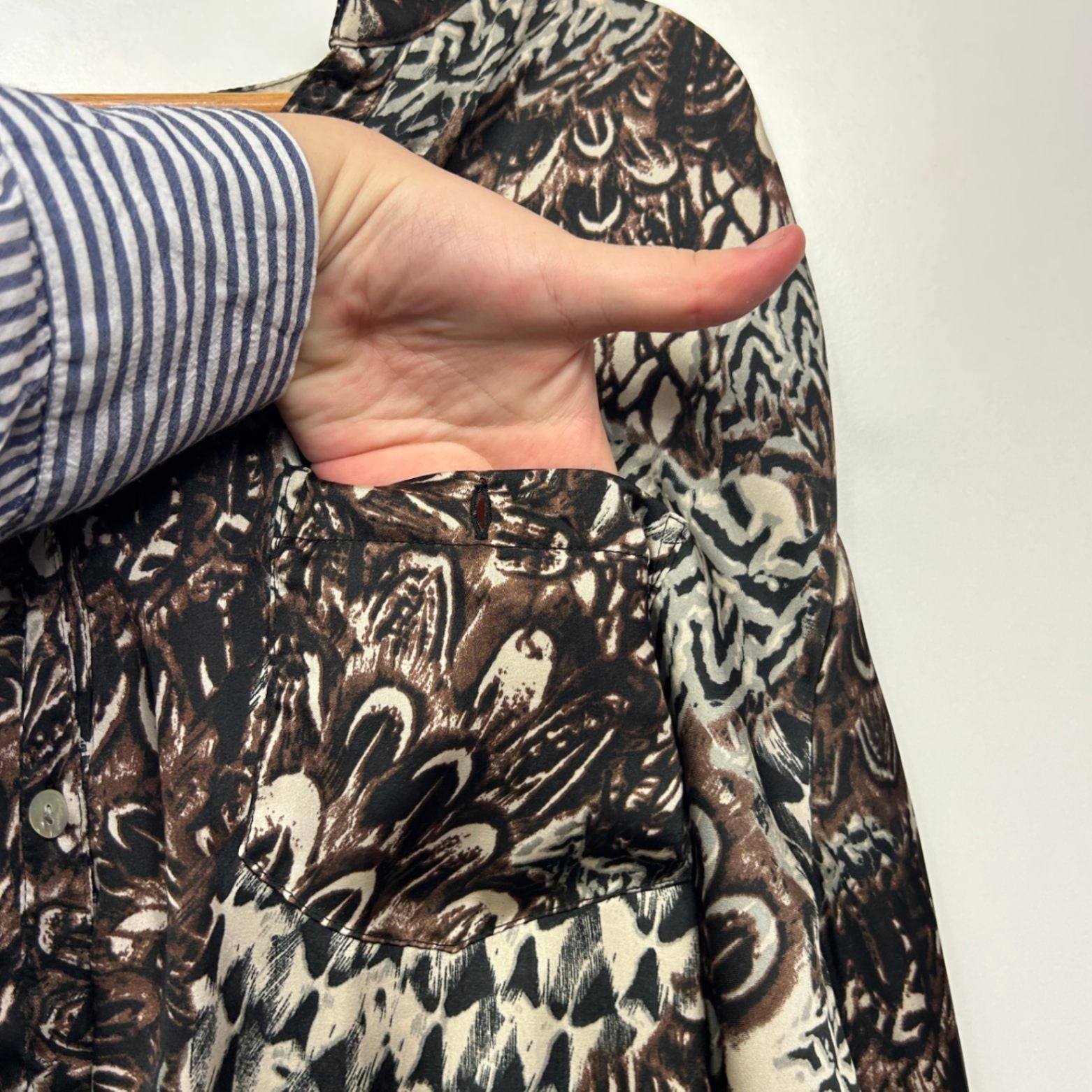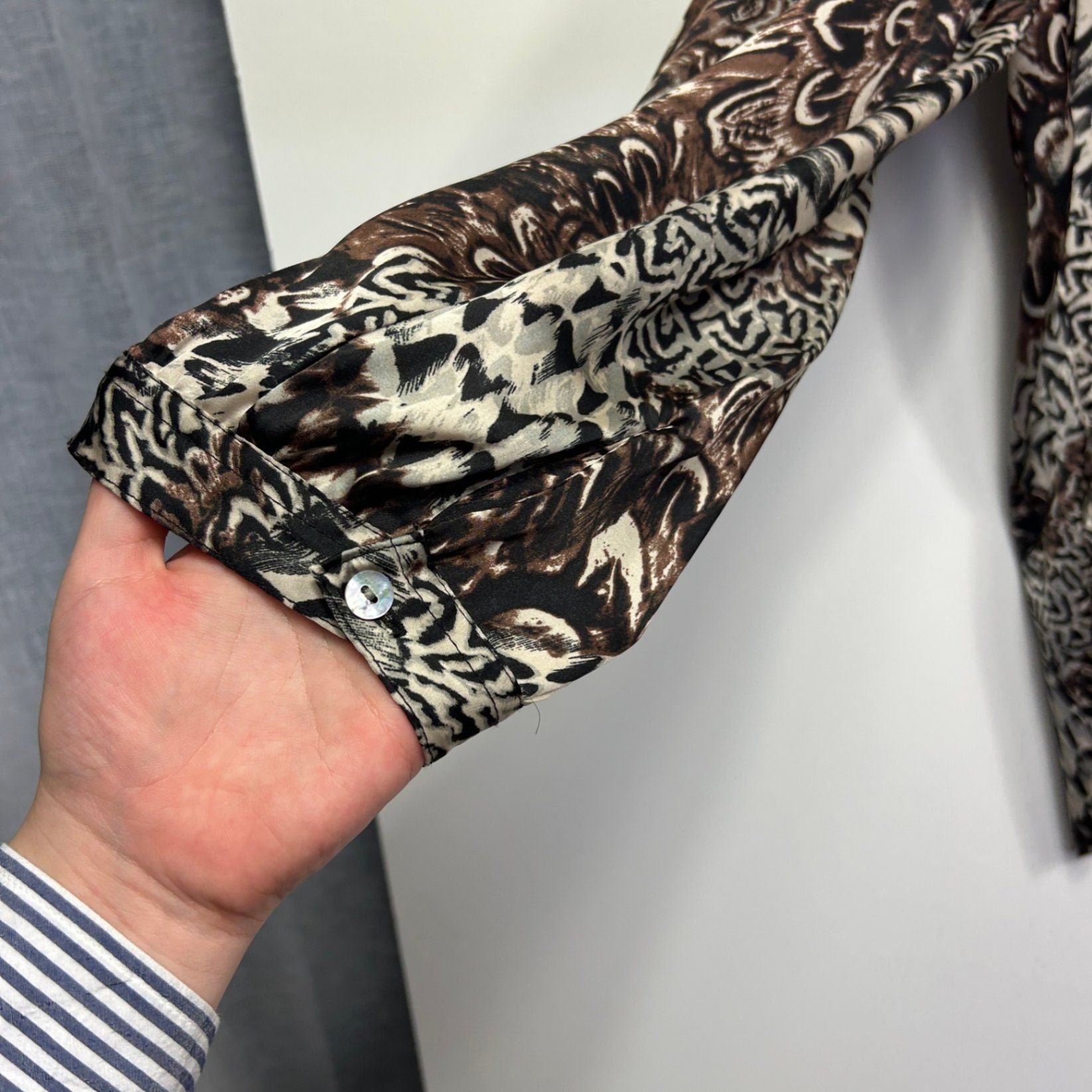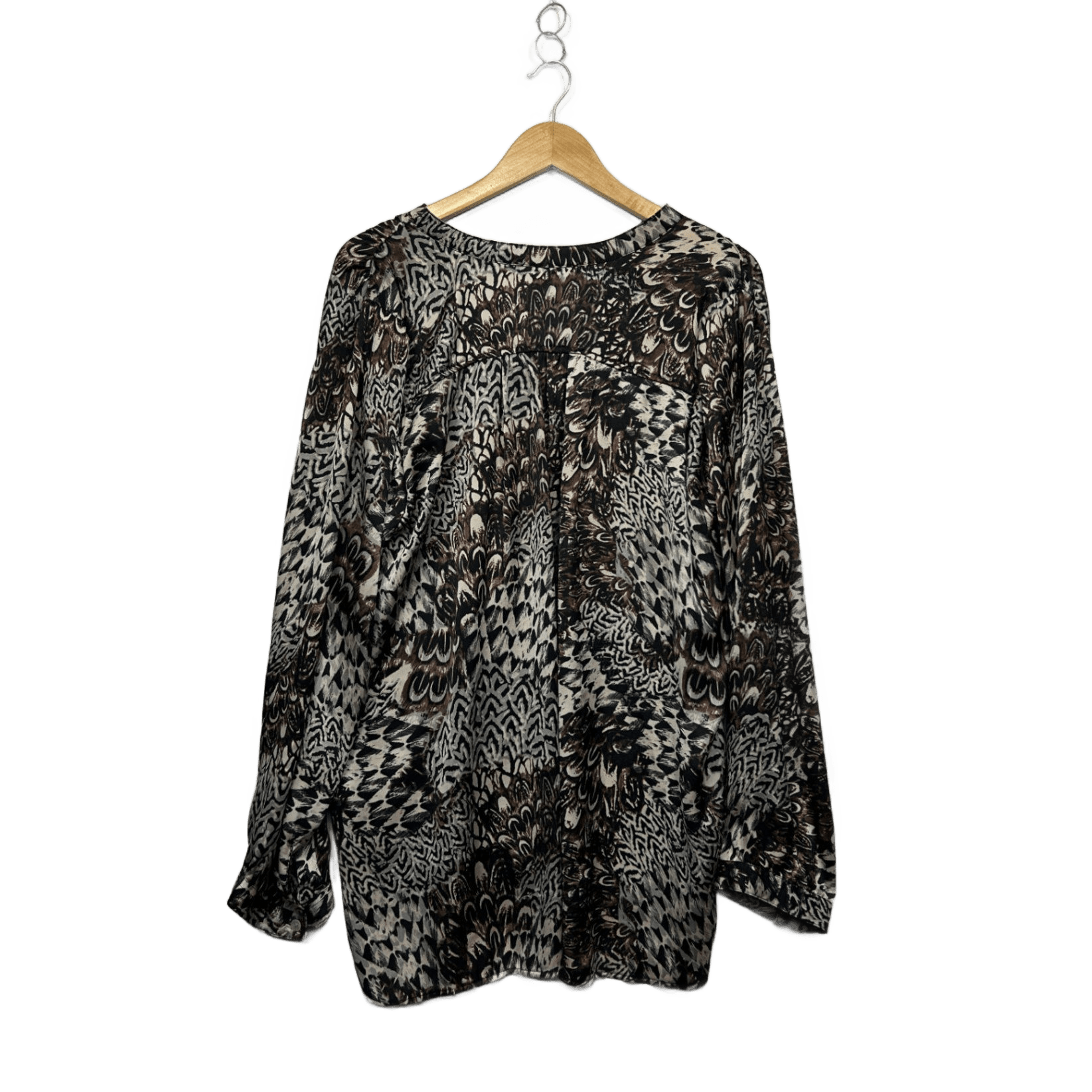 Moda Brown Black Long Sleeve Button Up Blouse Top Size 20