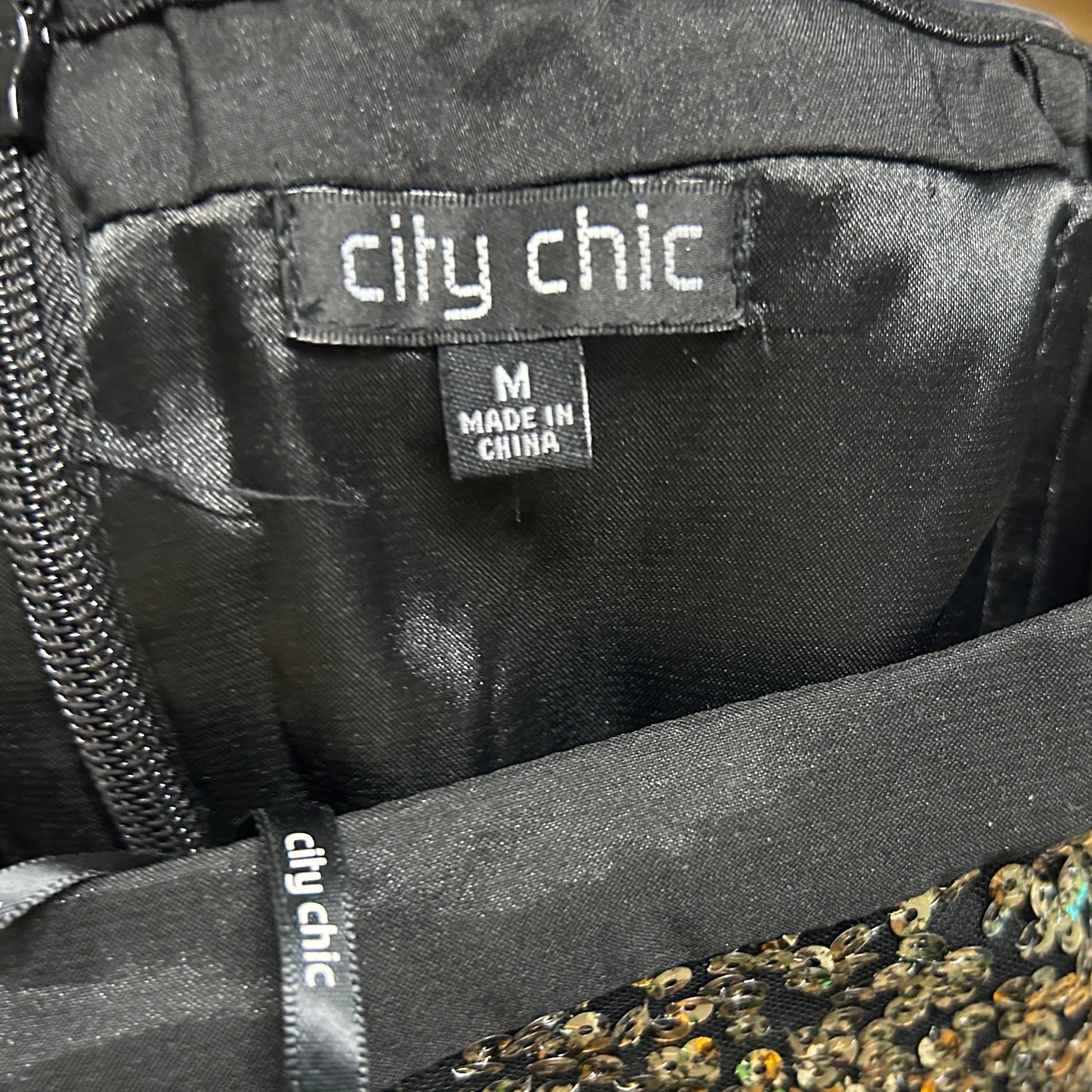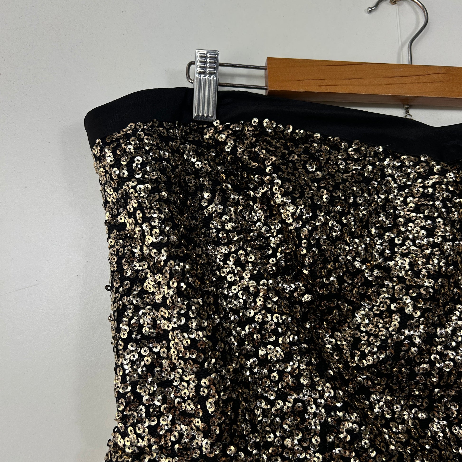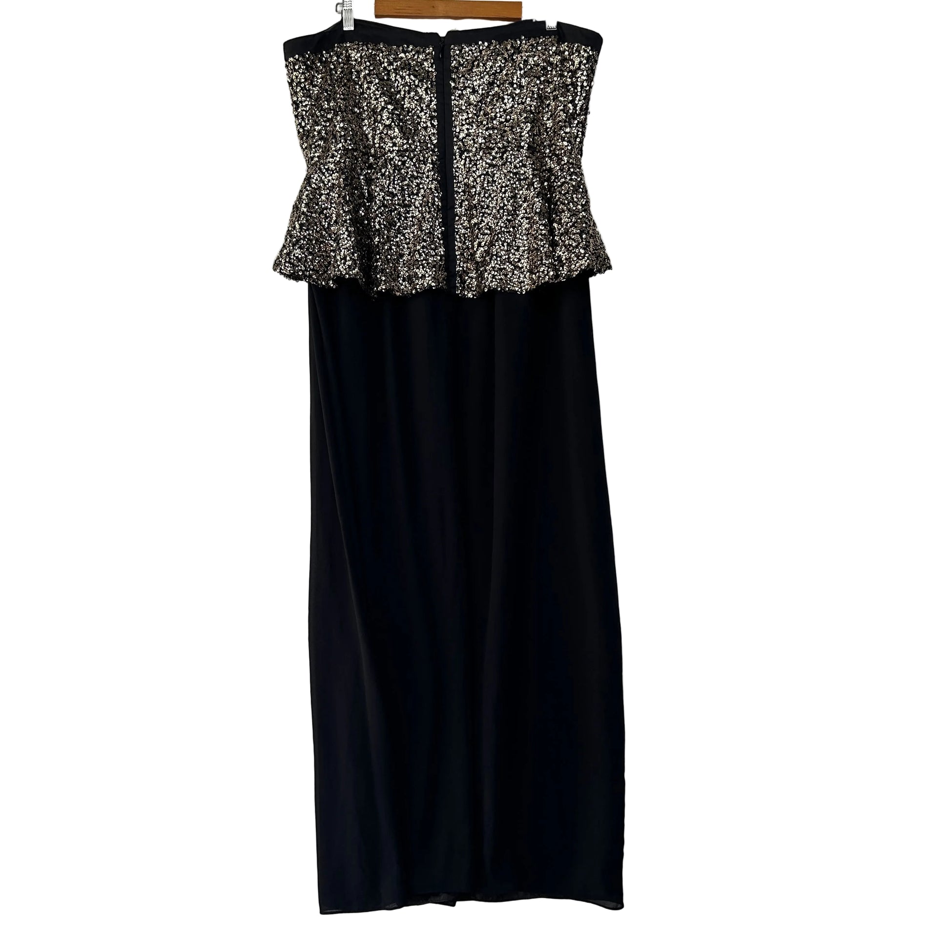City Chic Strapless Peplum Black & Gold Sequins Evening Formal Dress - Size 18/M