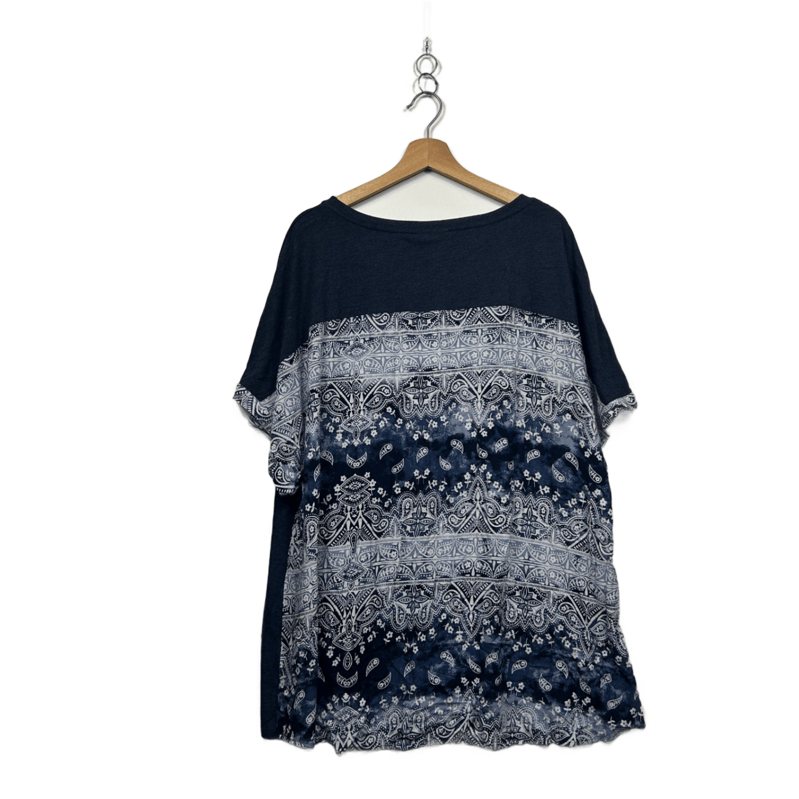 New Autograph Blue Cotton Blend Short Sleeve Scoop Neck Tunic Top Size 24