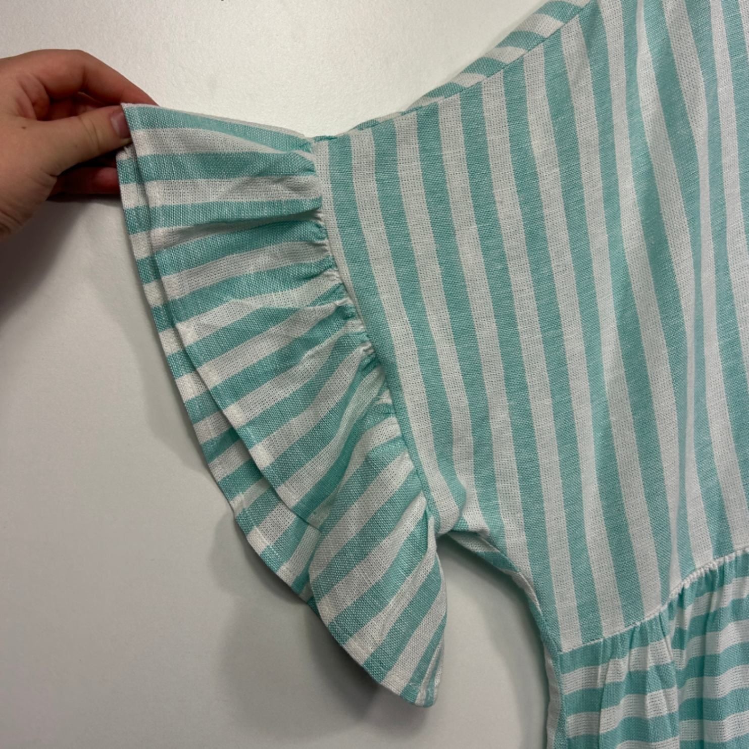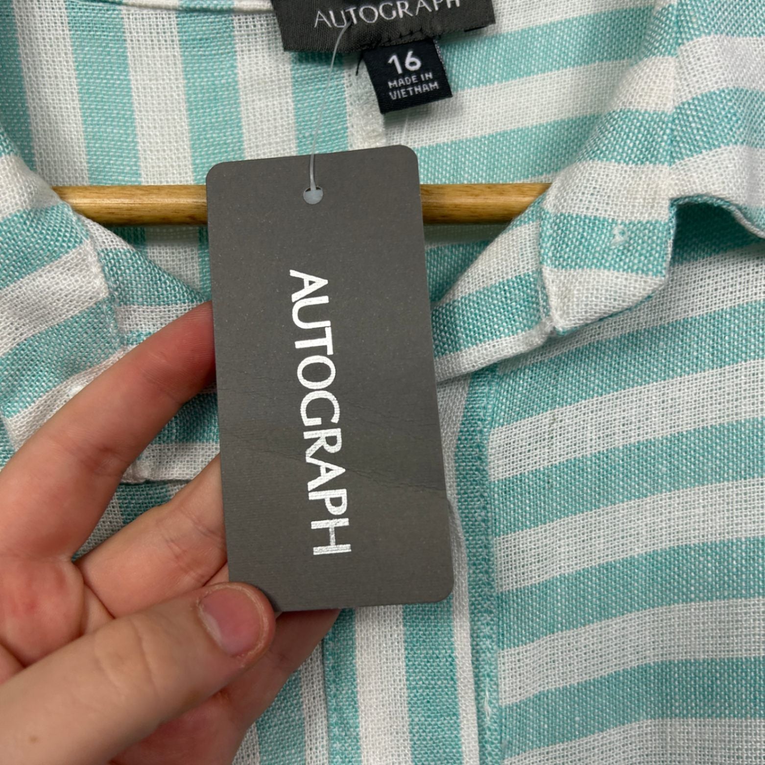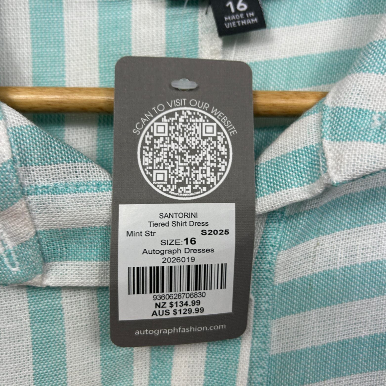 New Autograph Women's Striped Short Sleeve Tiered Linen Shirt Dress Size 16