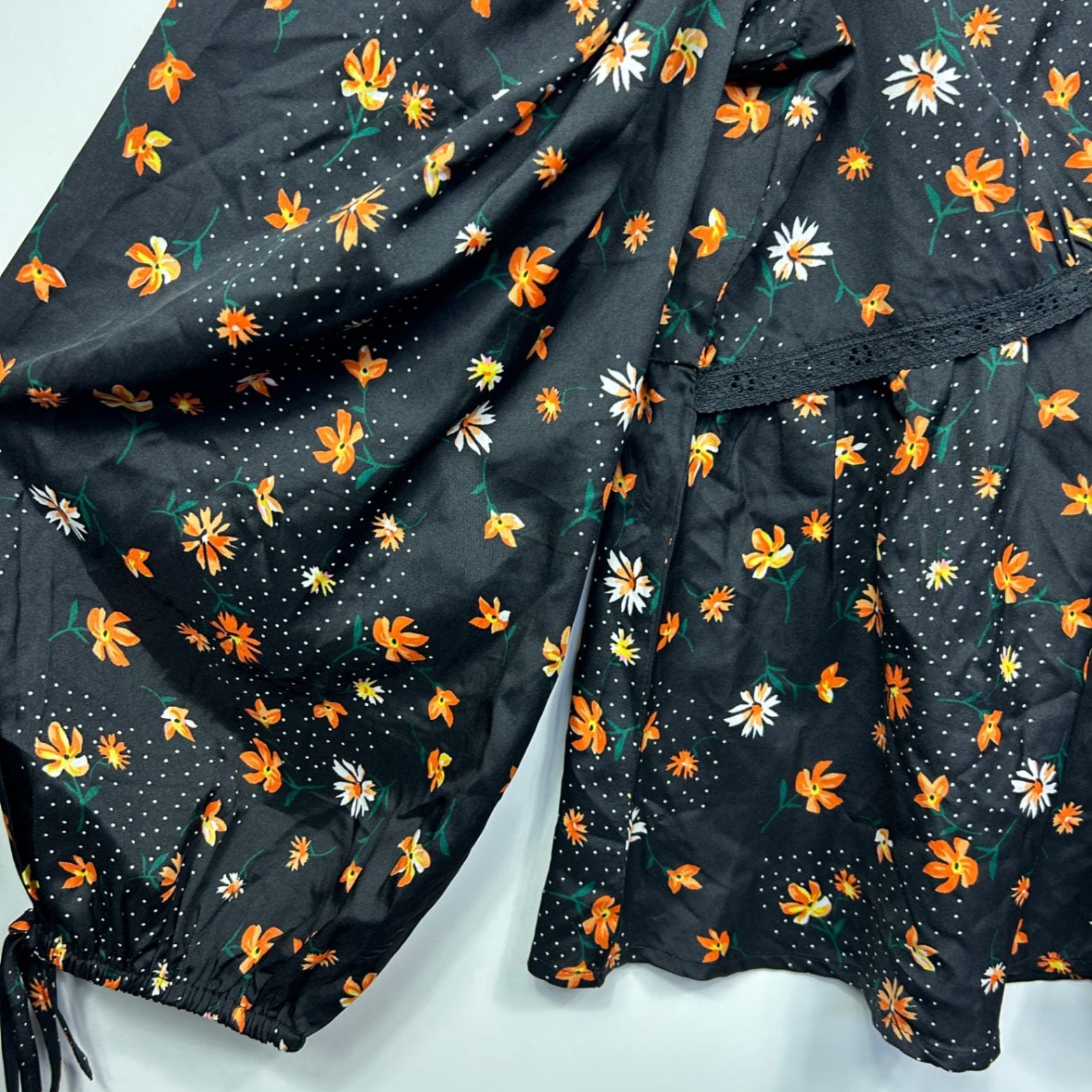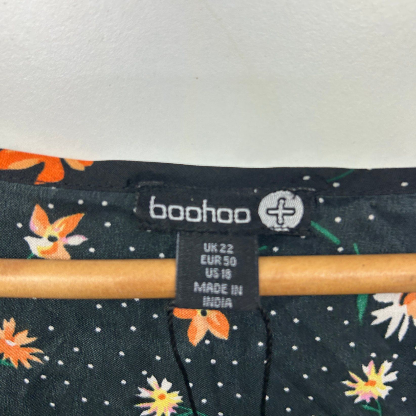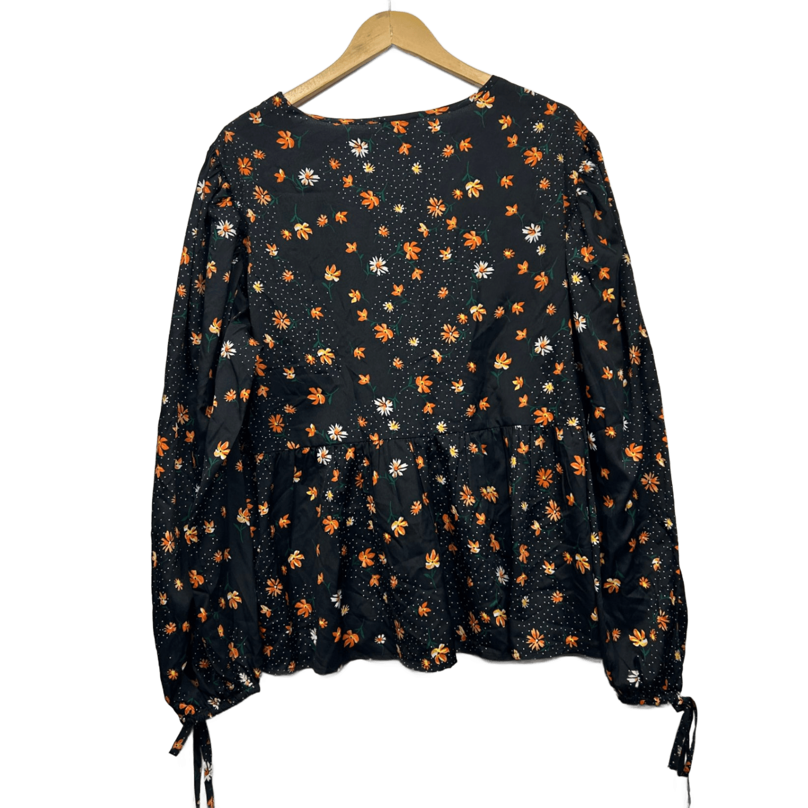 New Boohoo Black Polyester Long Sleeve V-Neck Smock Casual Blouse Size 22