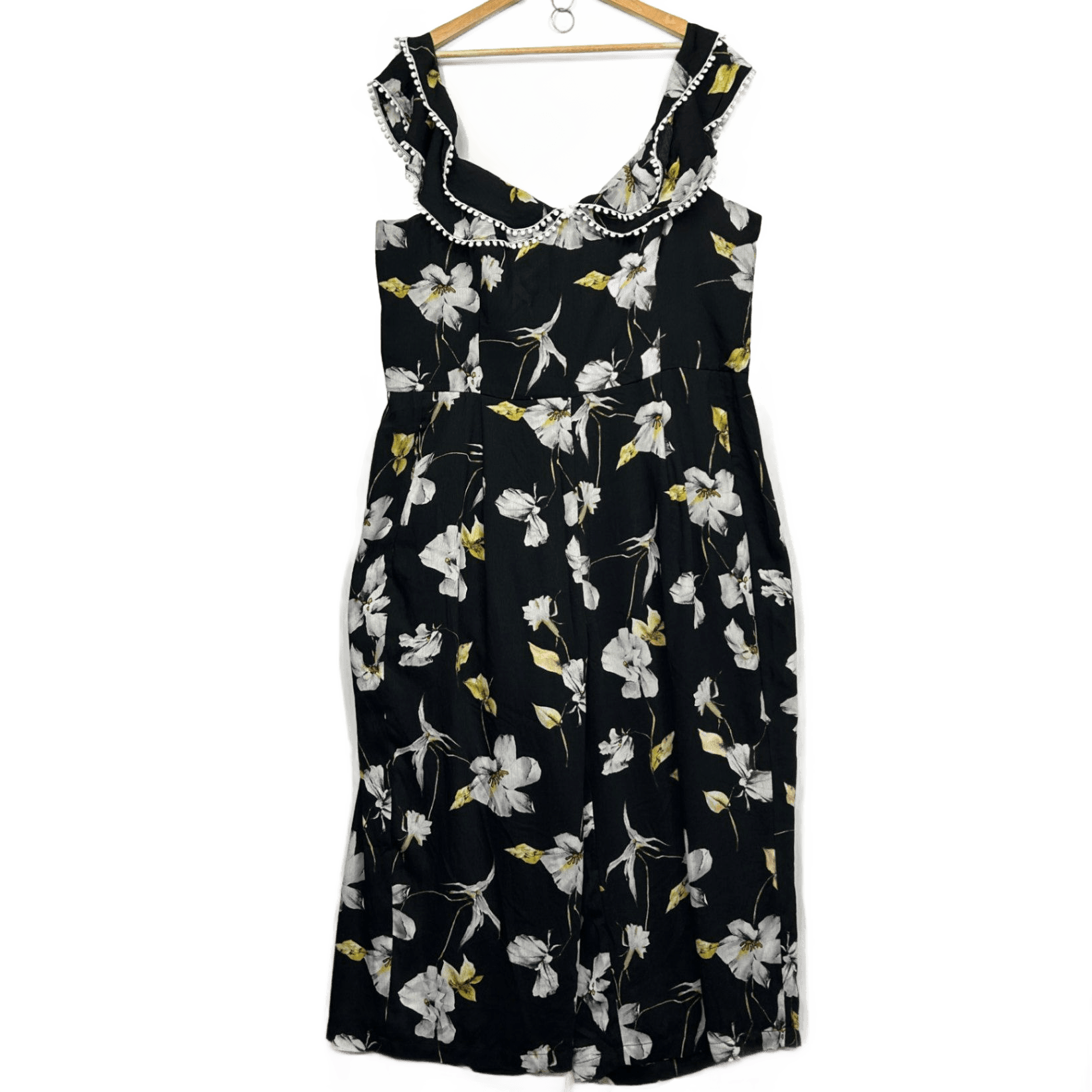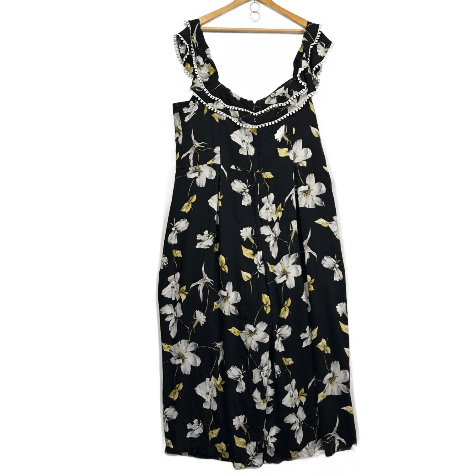 New City Chic Jumpsuit Black Crepe Floral Sleeveless Size 22 XL