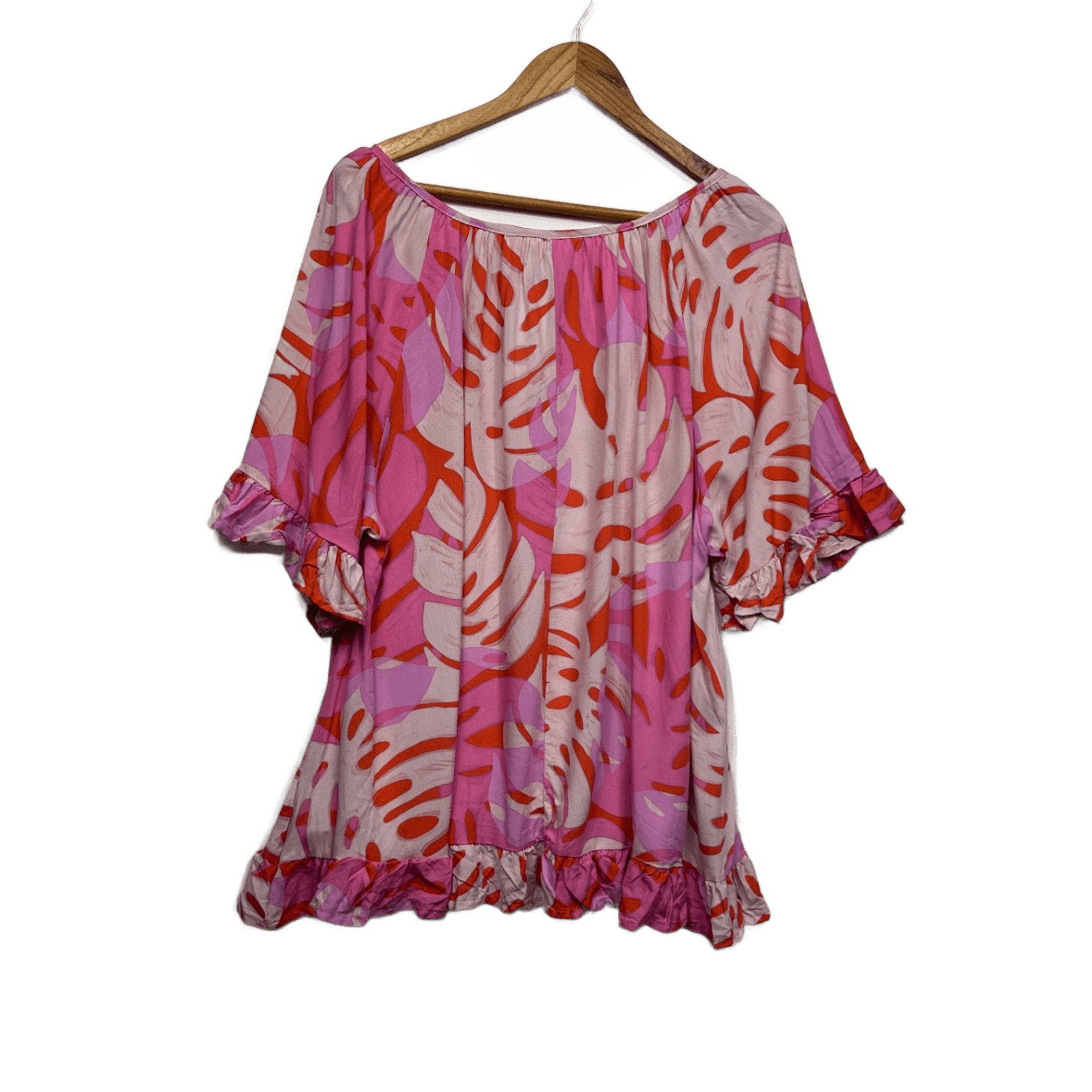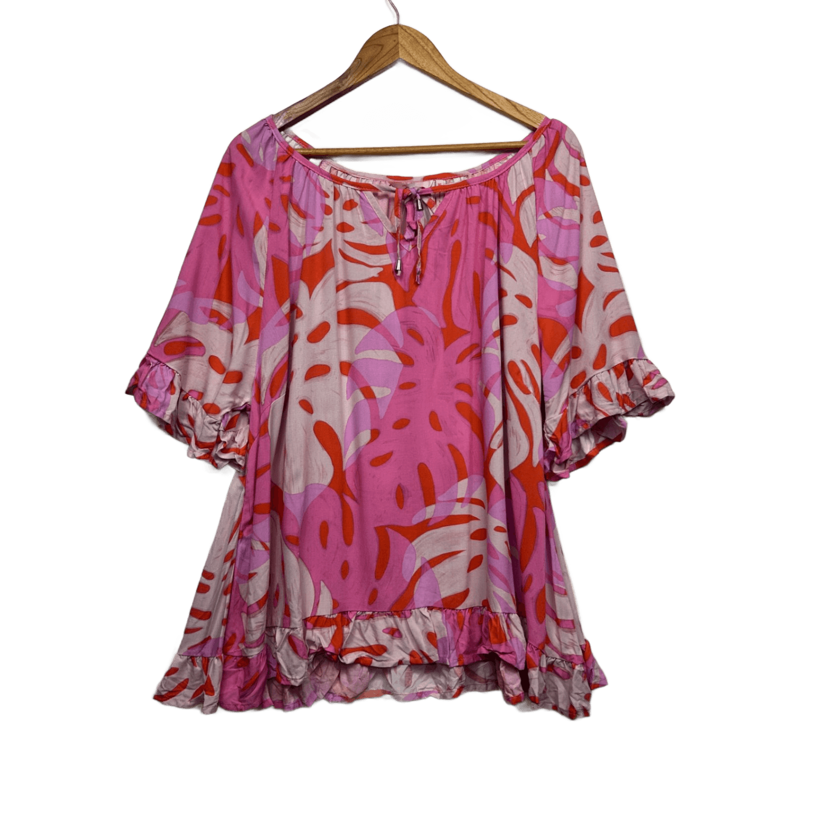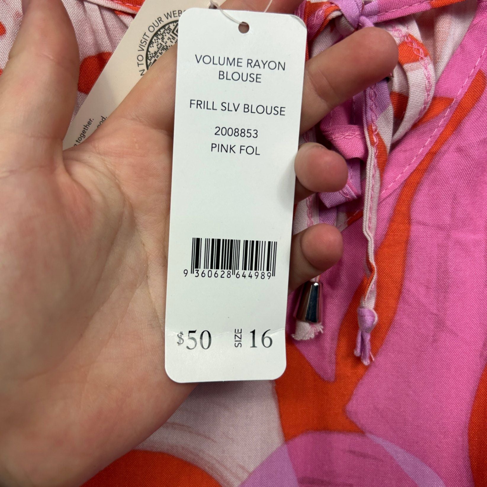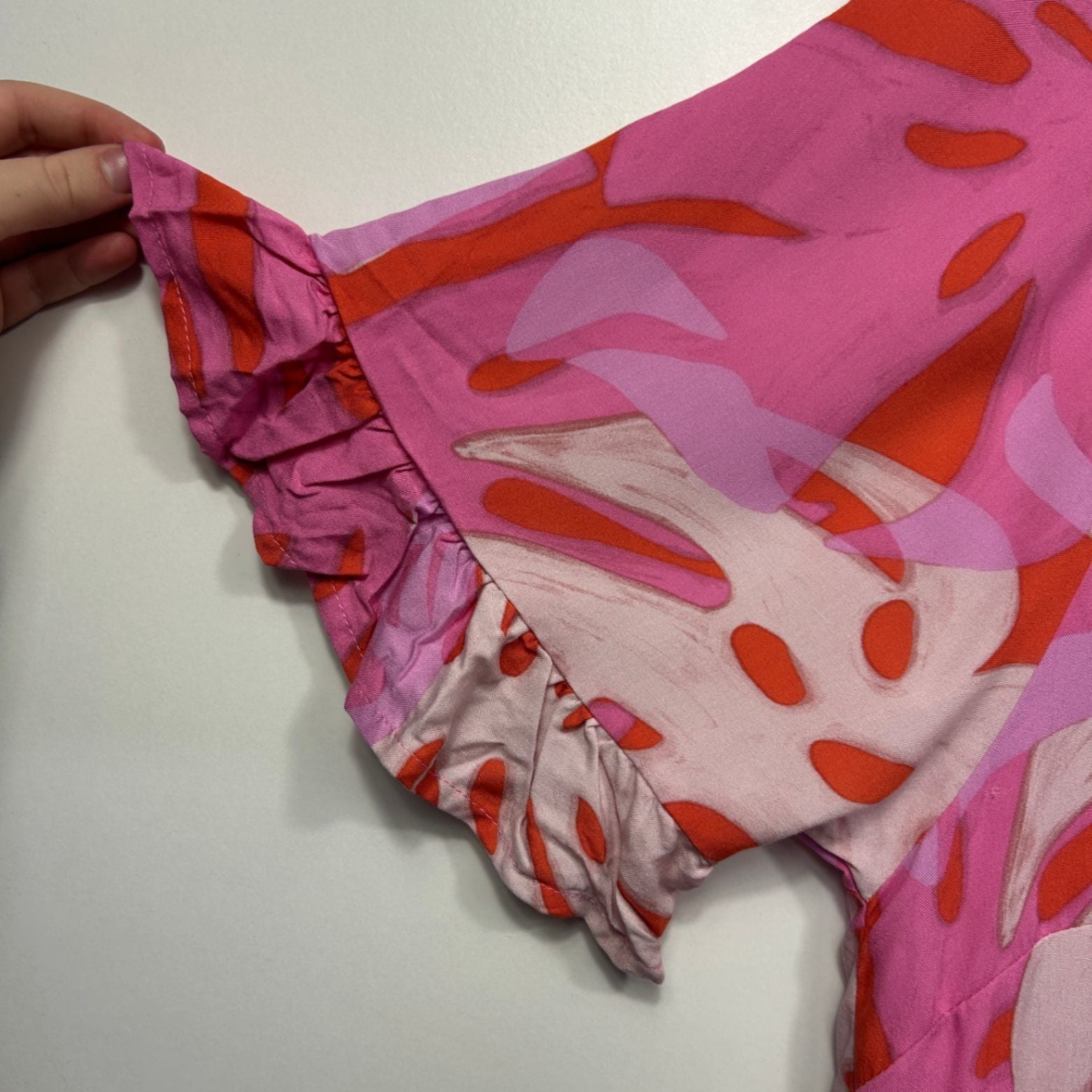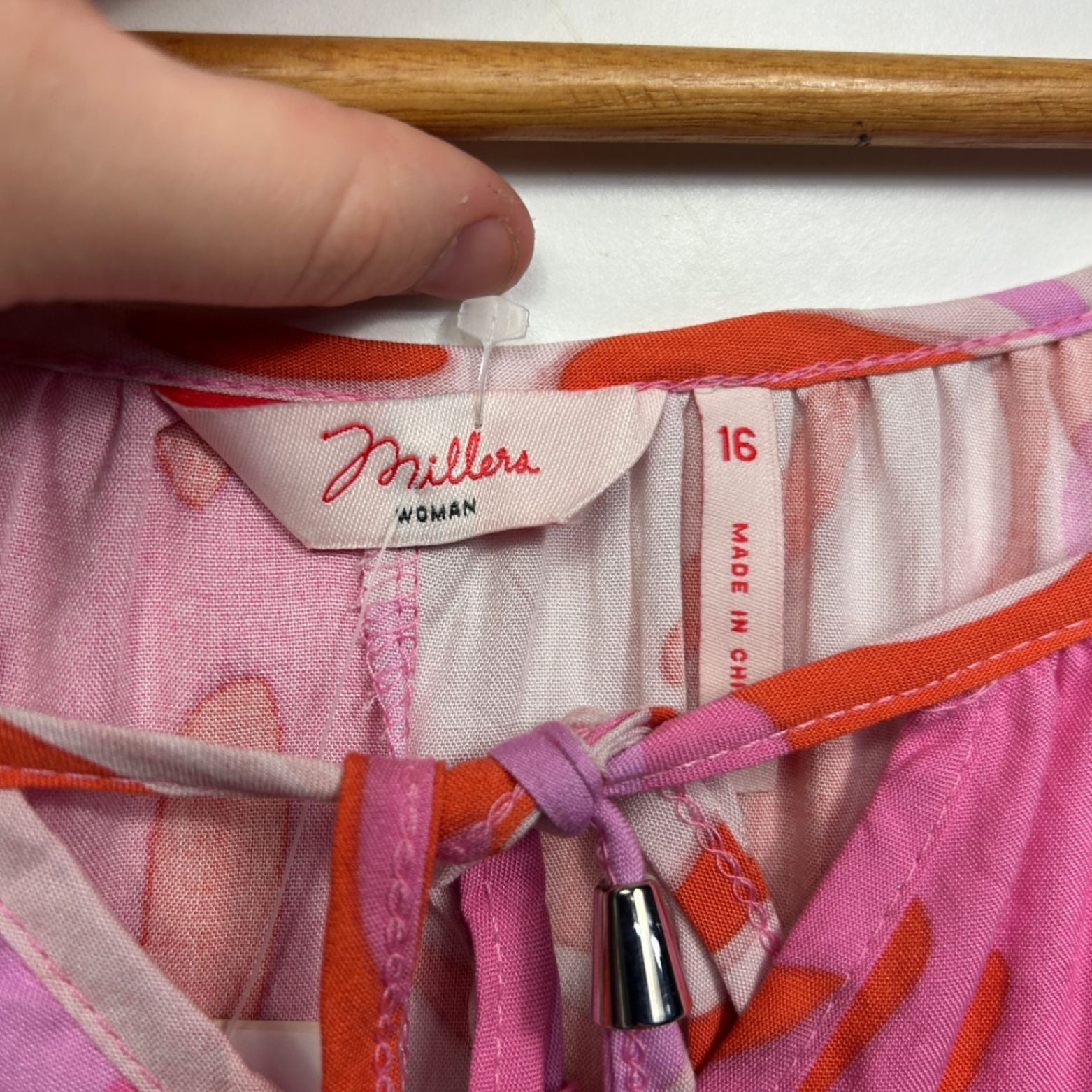 New Millers Pink Red Viscose Short Ruffle Sleeve Top Blouse Size 16