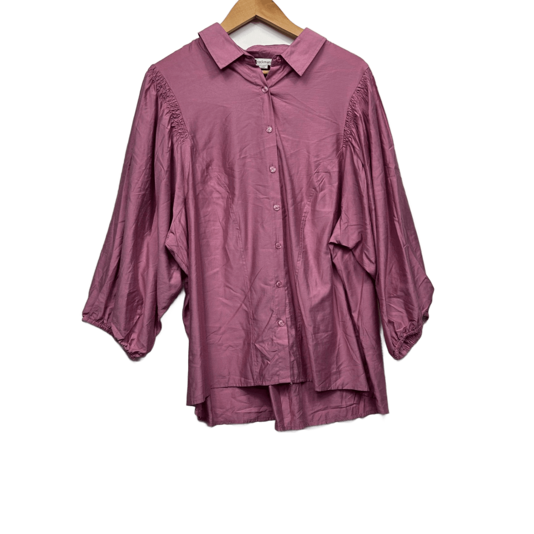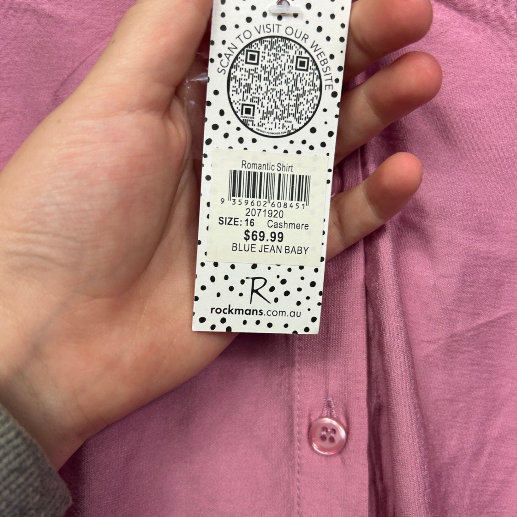 New Rockmans Pink Cotton Blend Button Up Long Sleeve Shirt Blouse Size 16