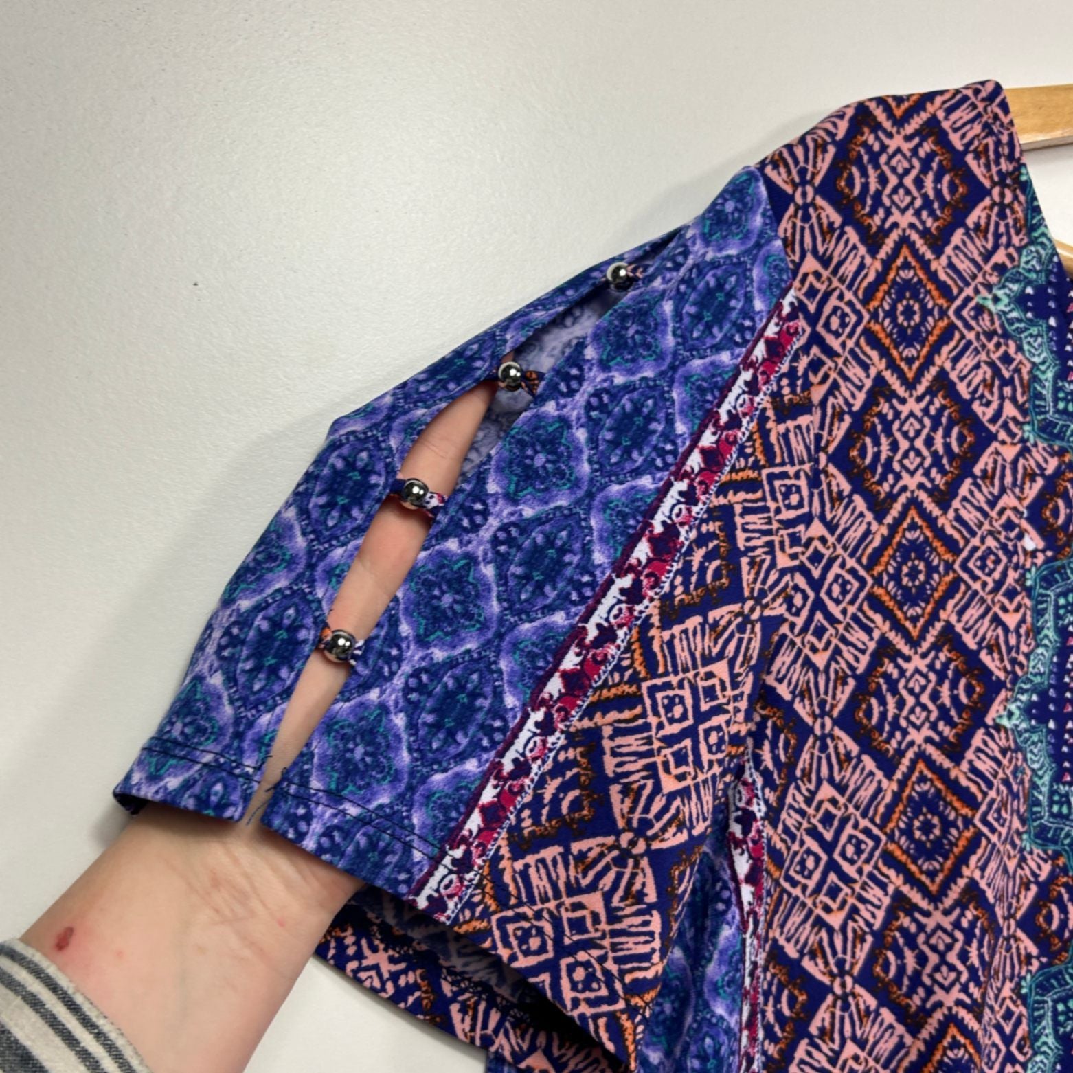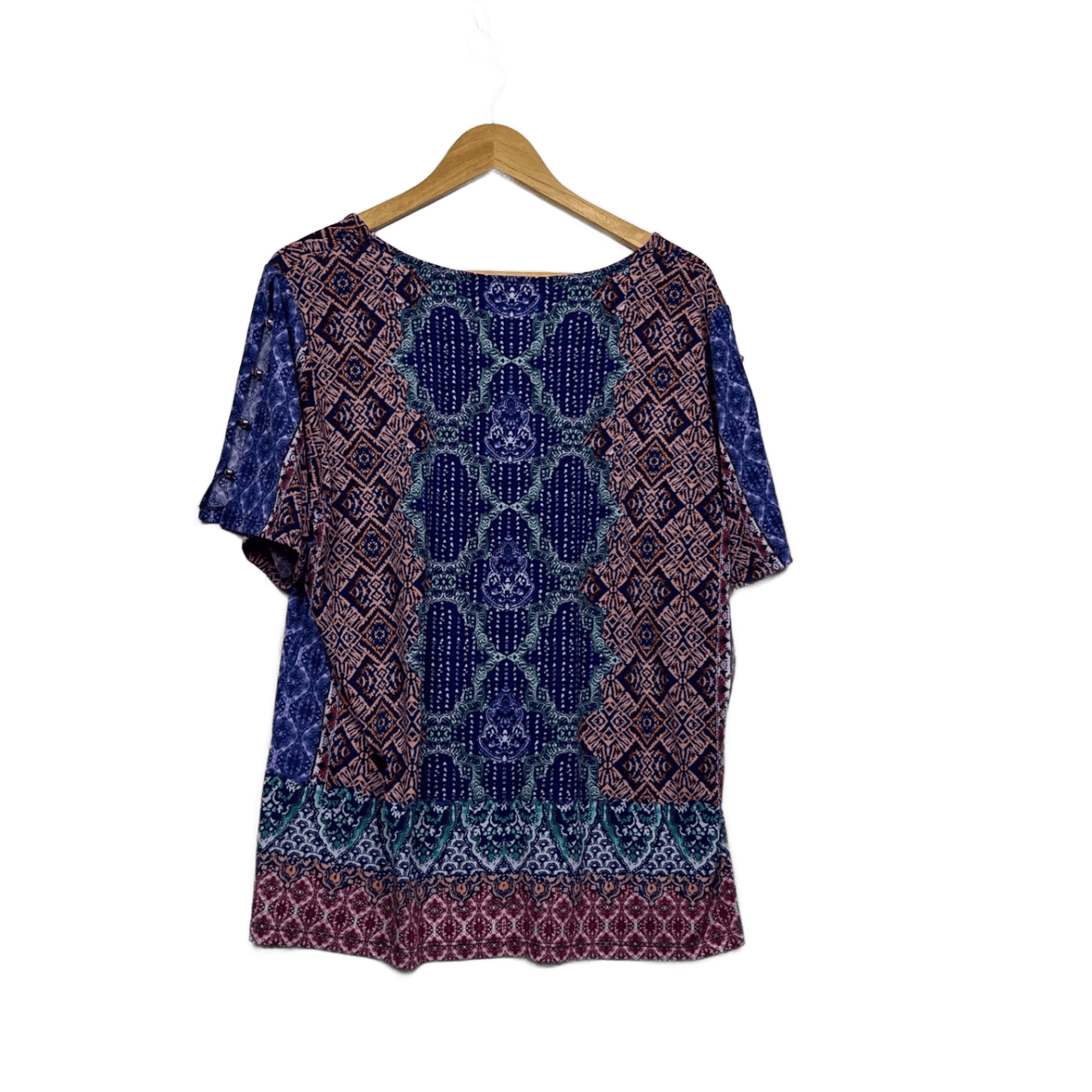 New Rockmans Purple Beaded Trim Top Size 16 XL Short Sleeve