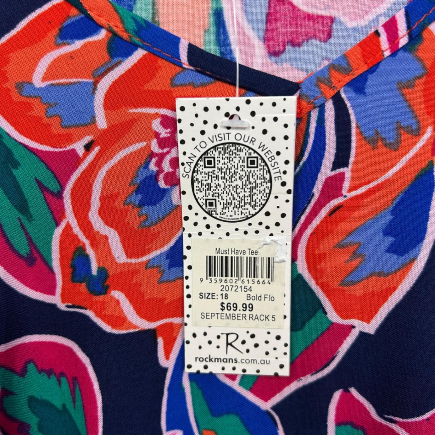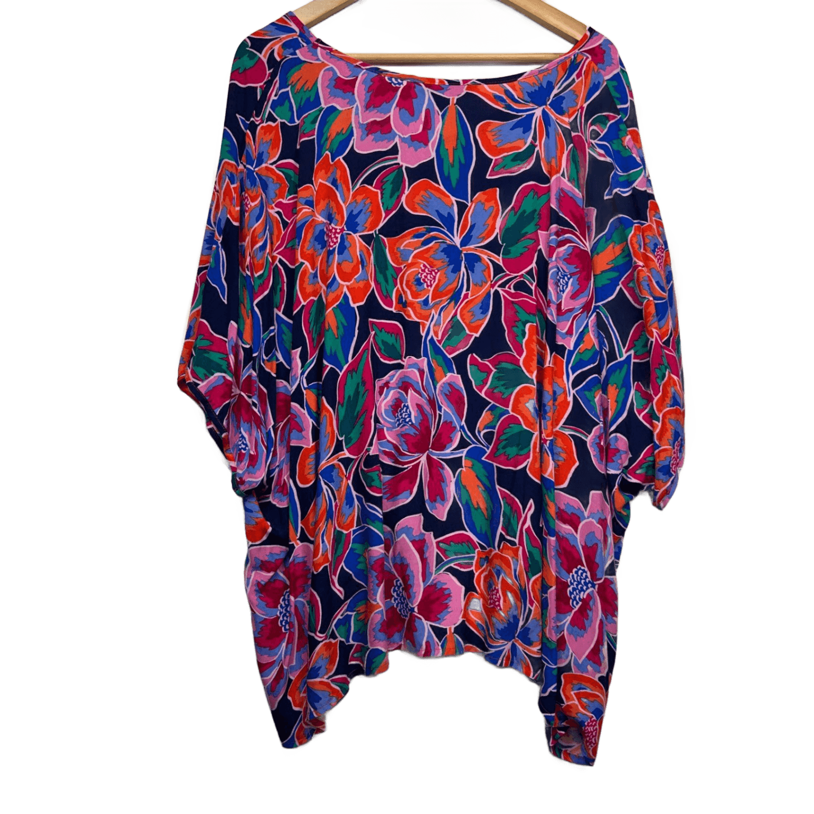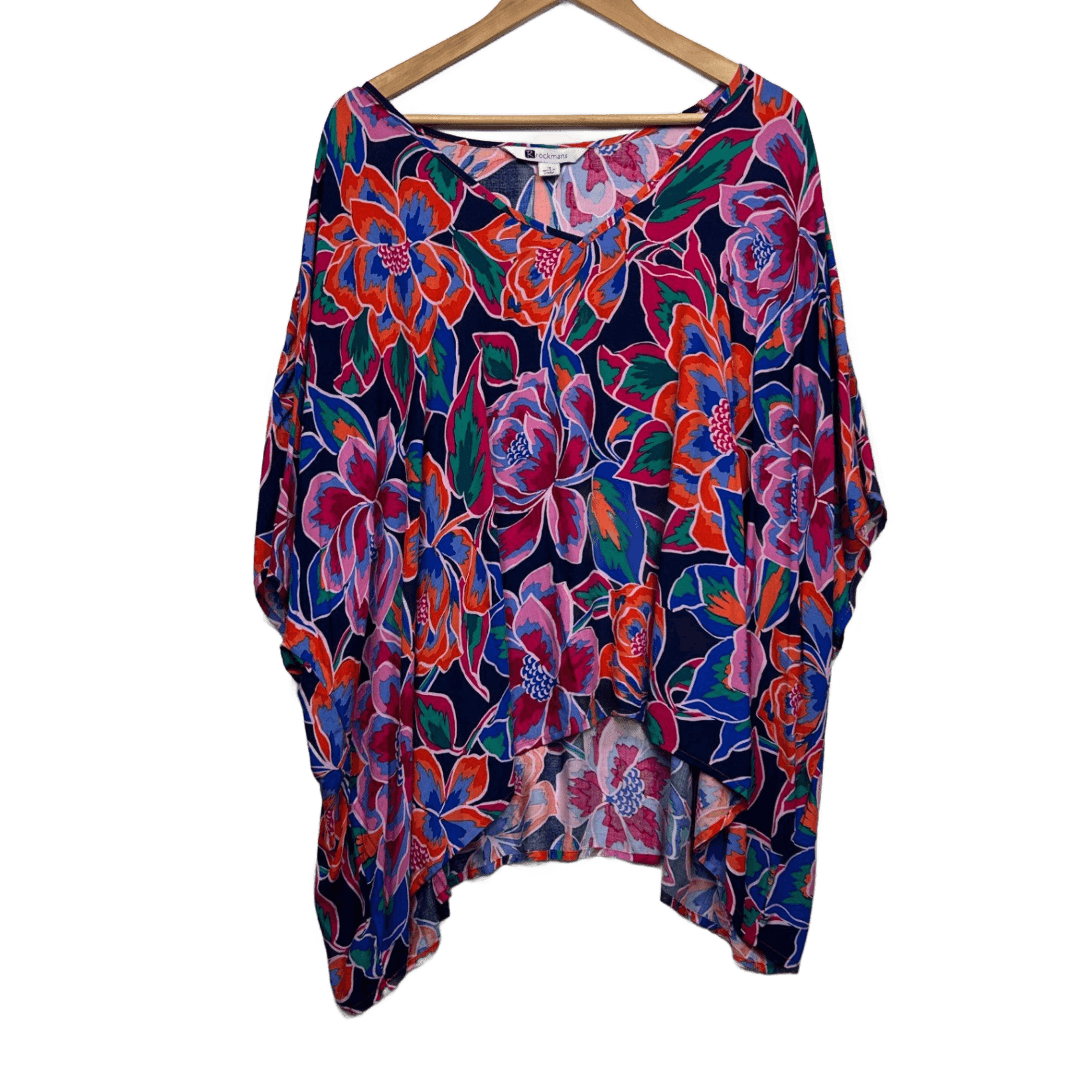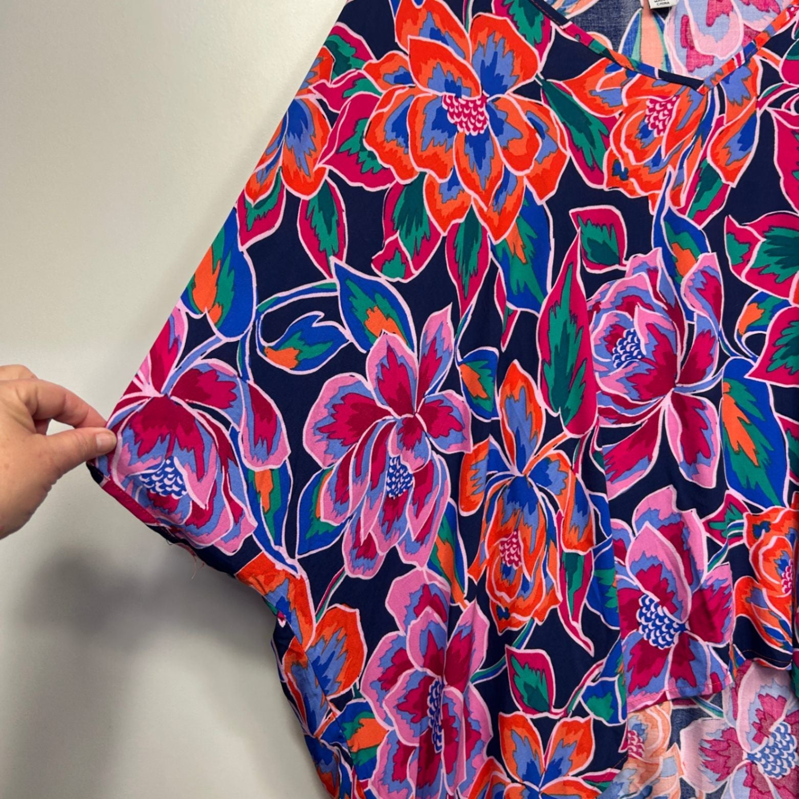 New Rockmans Short Sleeve Kaftan Top Size 18 Multicoloured Floral Boho