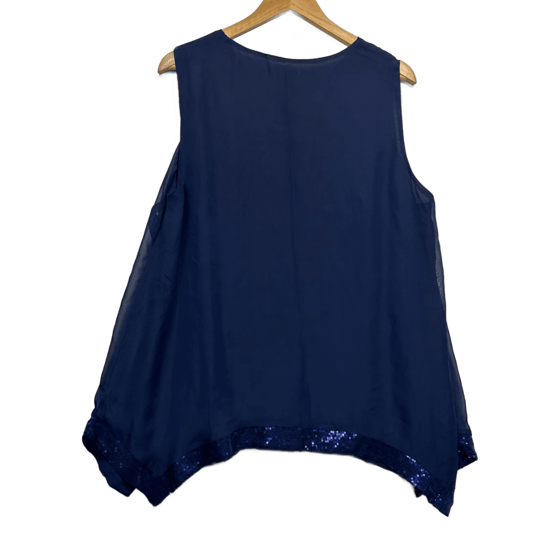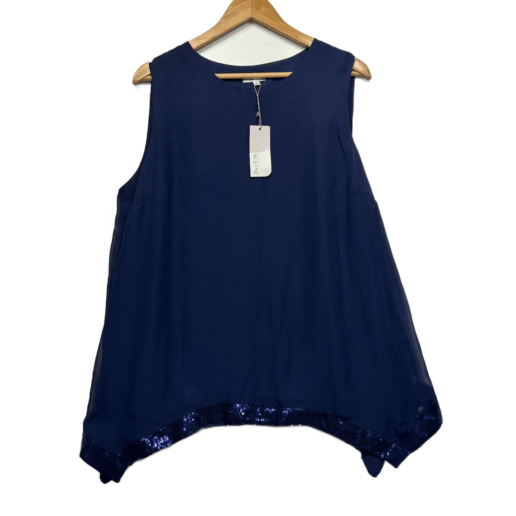 New W Lane Navy Blue Round Neck Sequin Trim Sleeveless Top Blouse Size 16