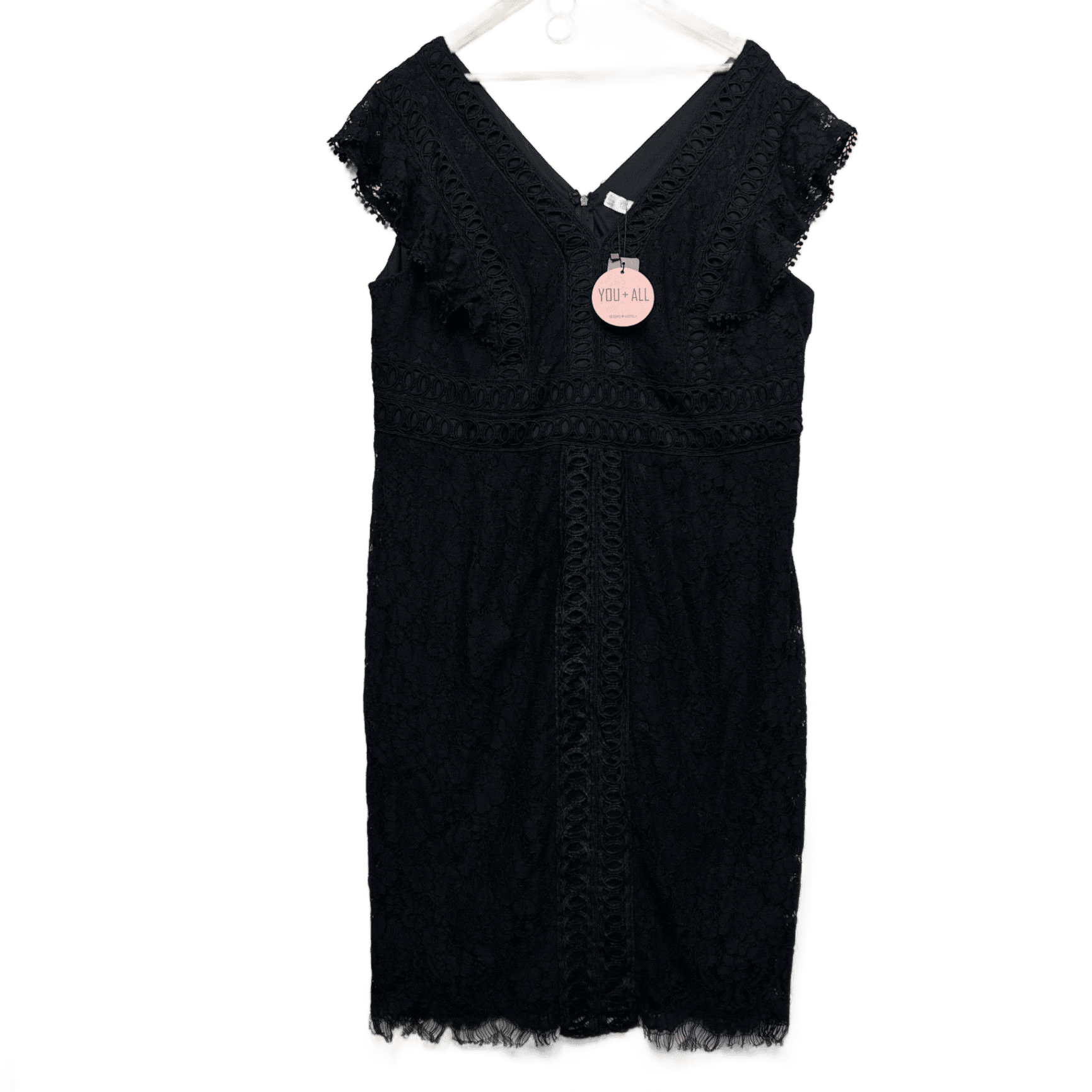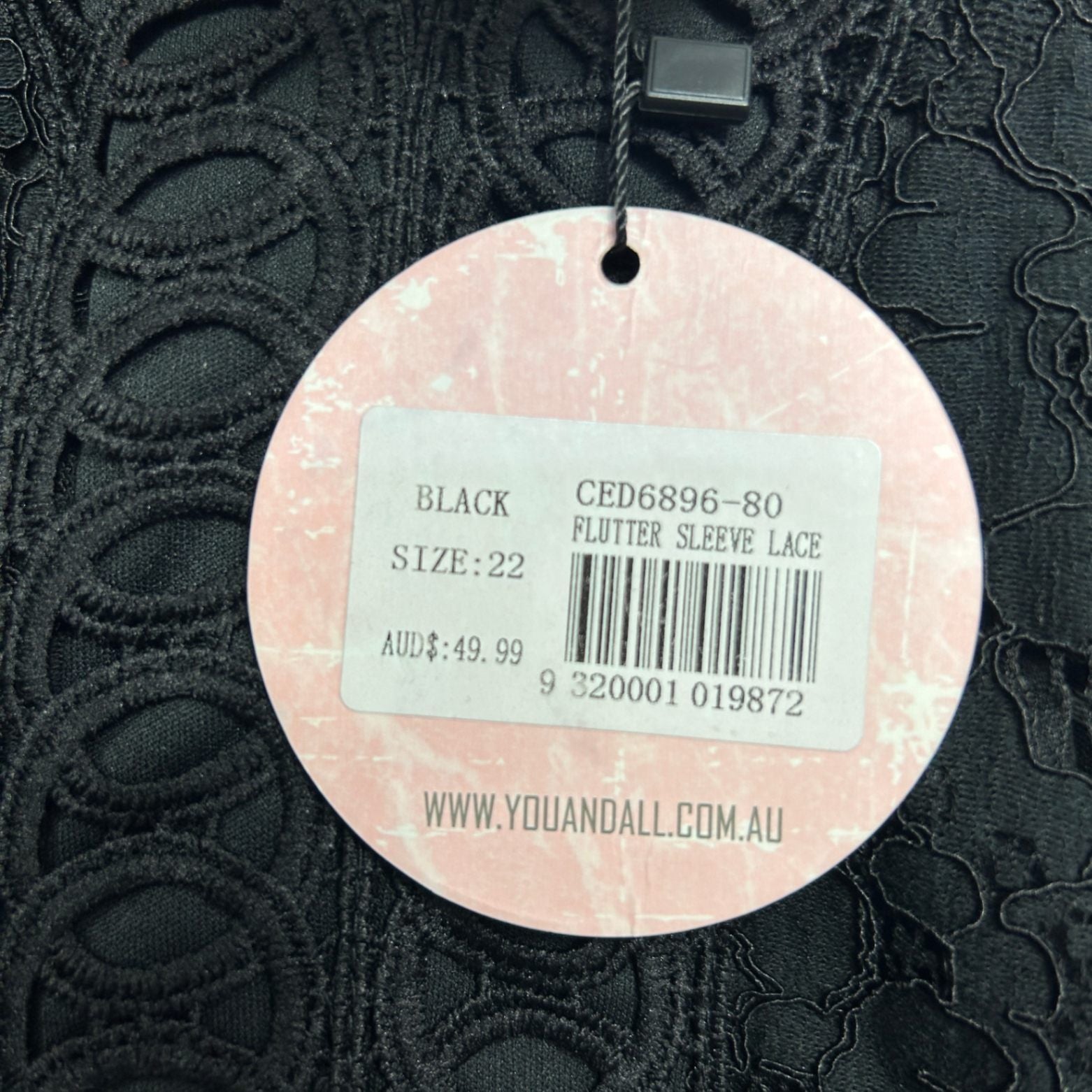 New YOU + ALL Black Lace Overlay Short Sleeve Cocktail Dress Size 22