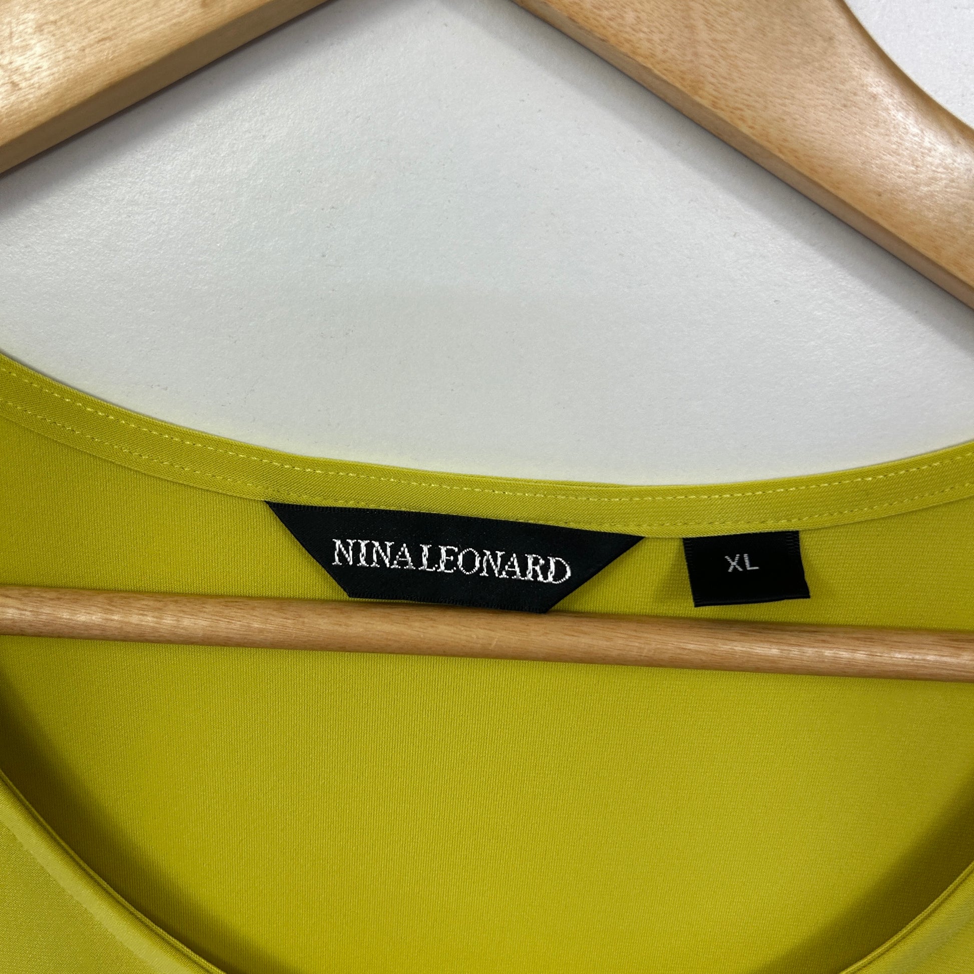 Nina Leonard Chartreuse Embroidered Top - Size XL