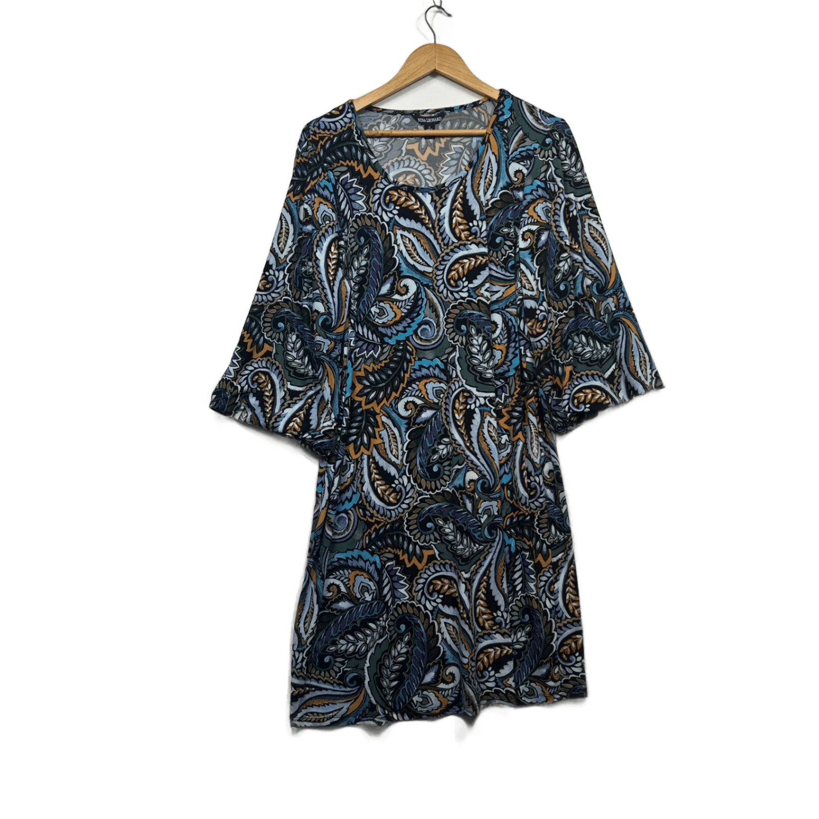 Nina Leonard Multicoloured Long Sleeve Shift Dress Size XL 16