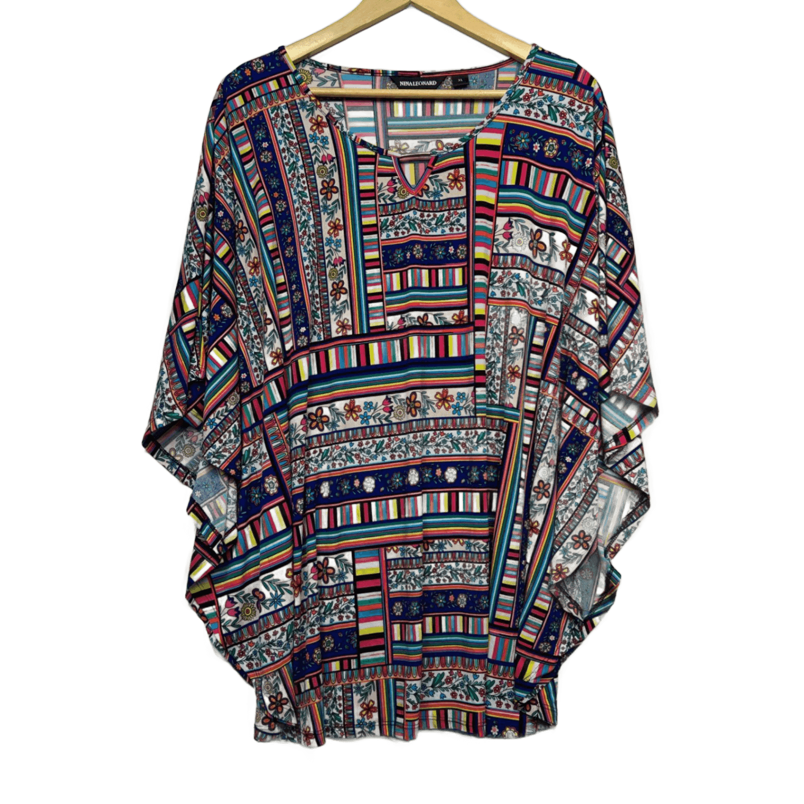 Nina Leonard Tunic Top Size 16 18 XL Multicoloured Batwing Sleeve