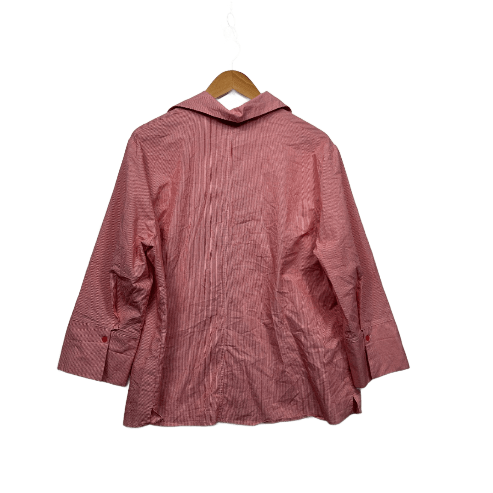 Noni B Red White Striped Long Sleeve Pleated Button Up Shirt Size 18