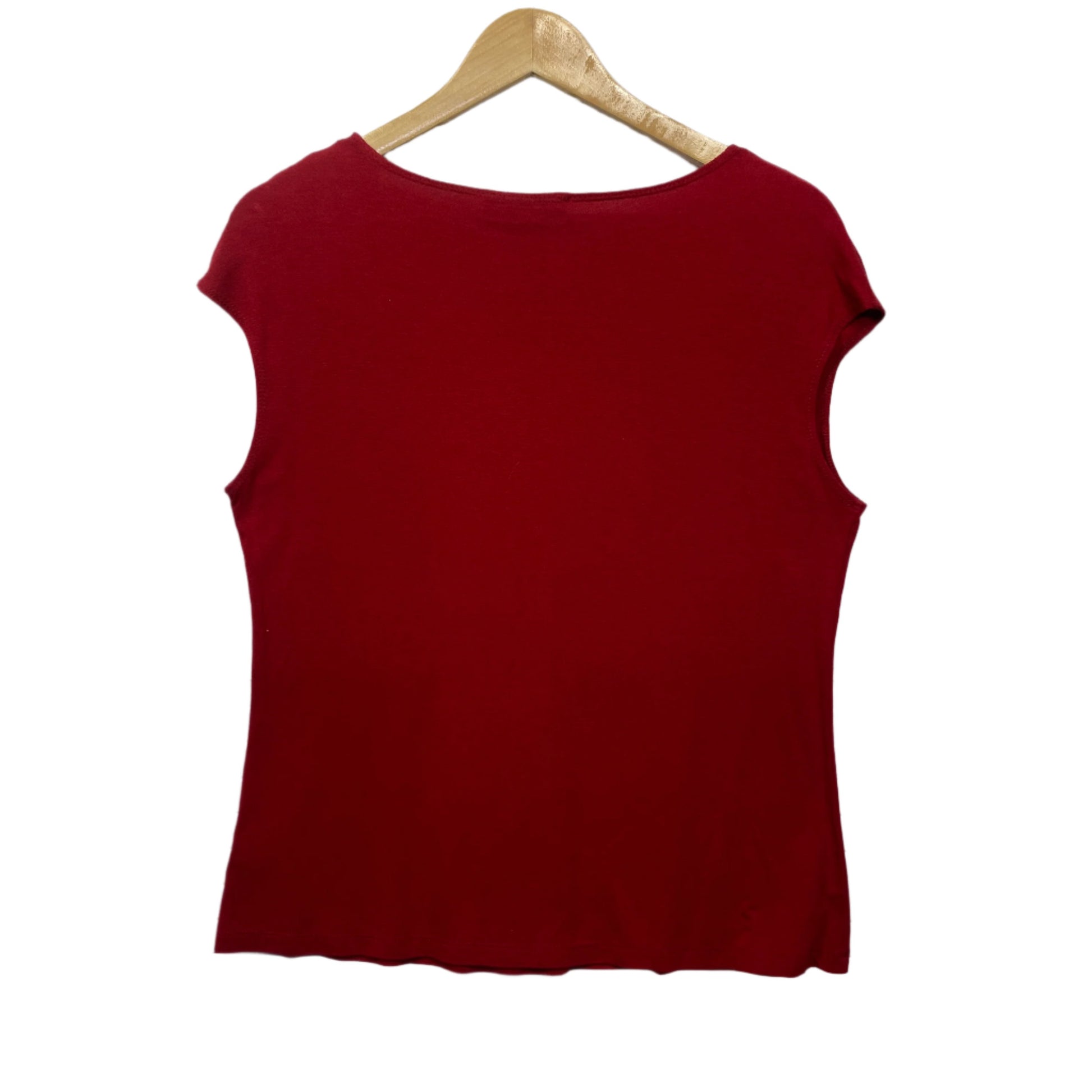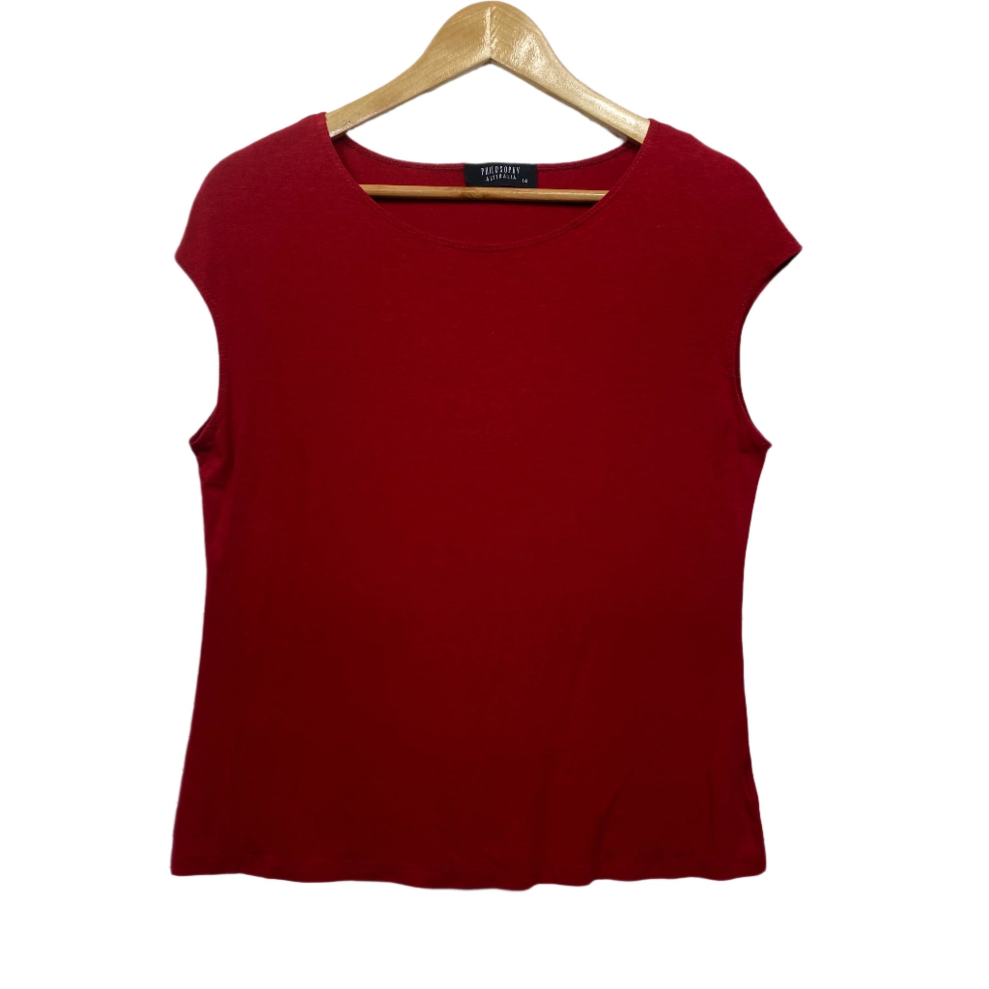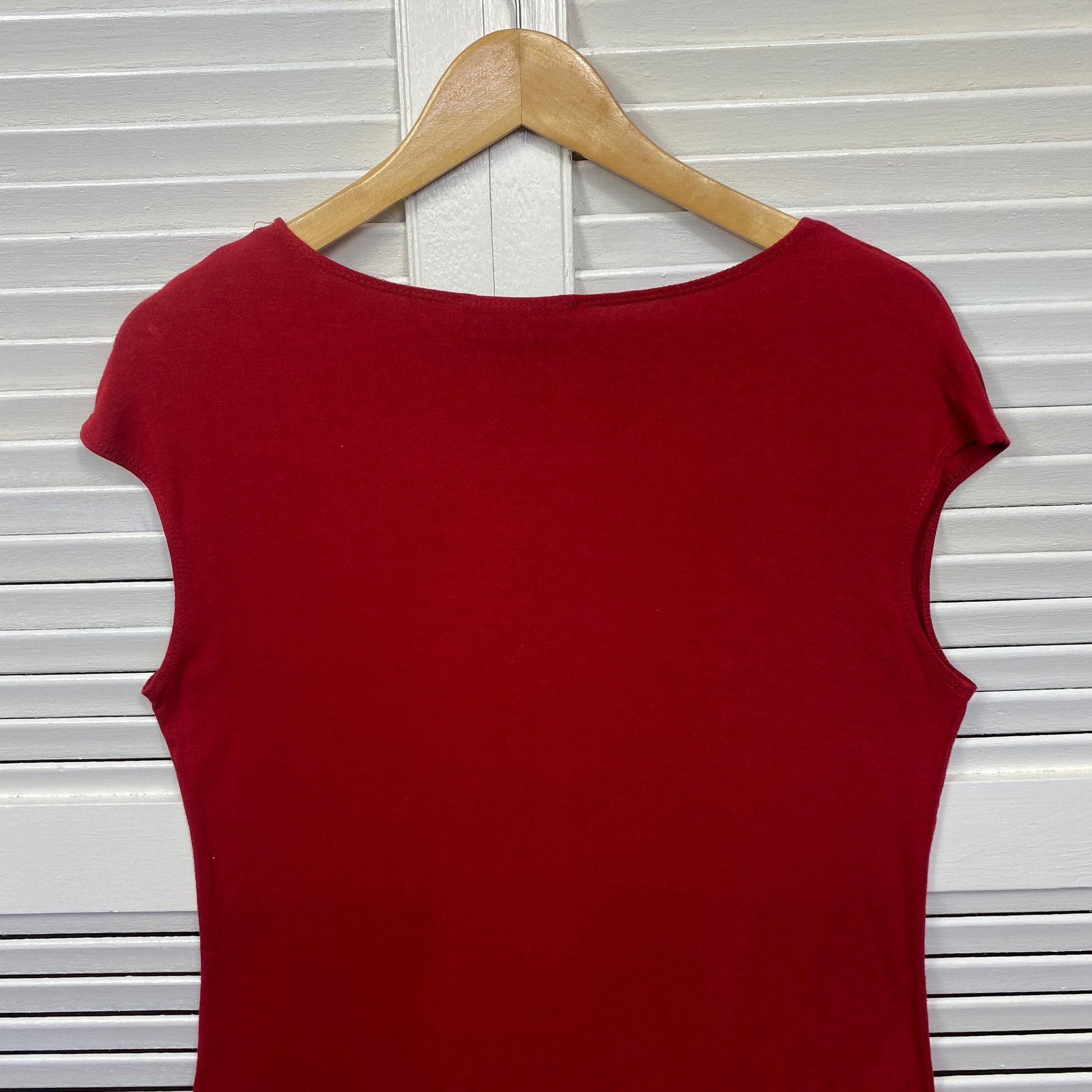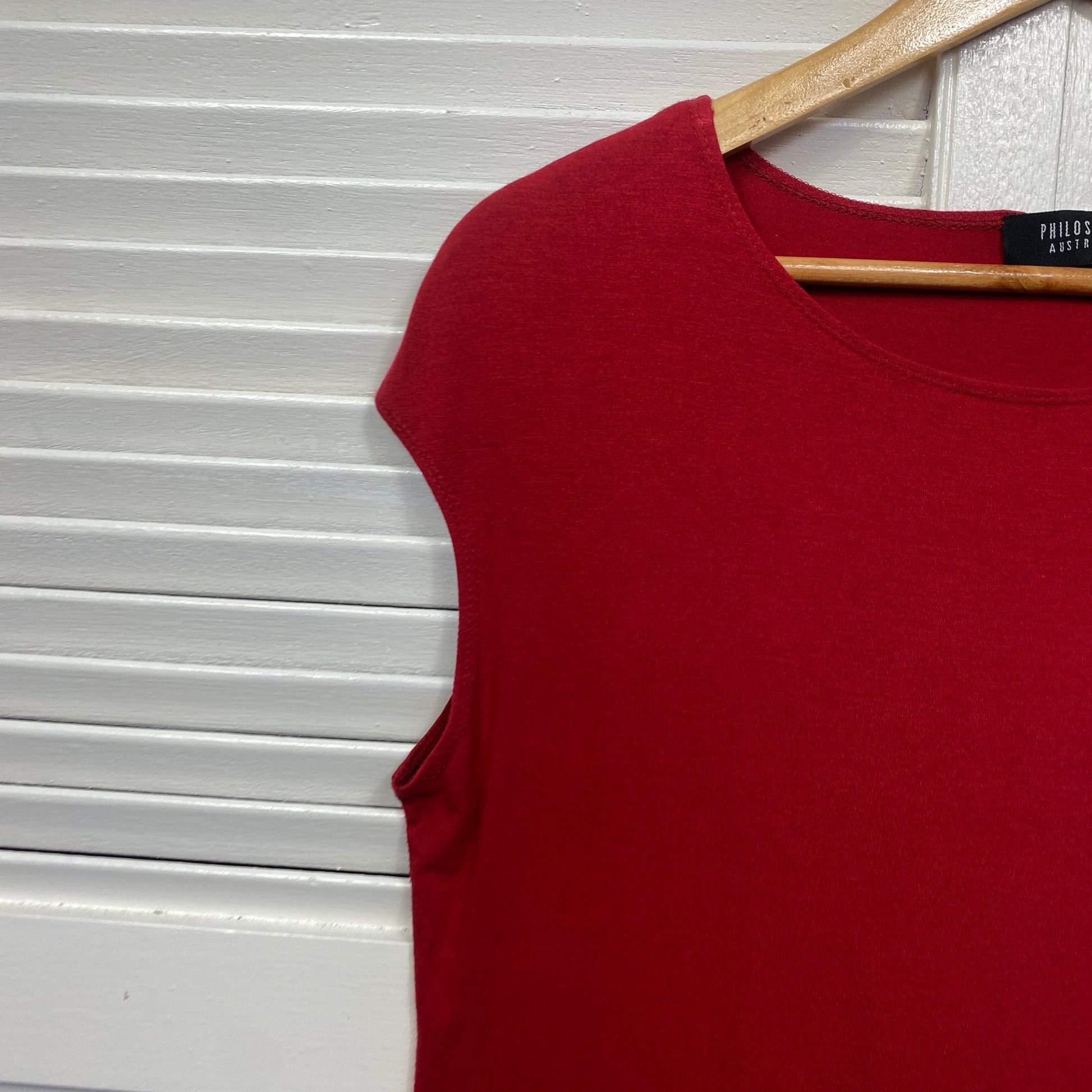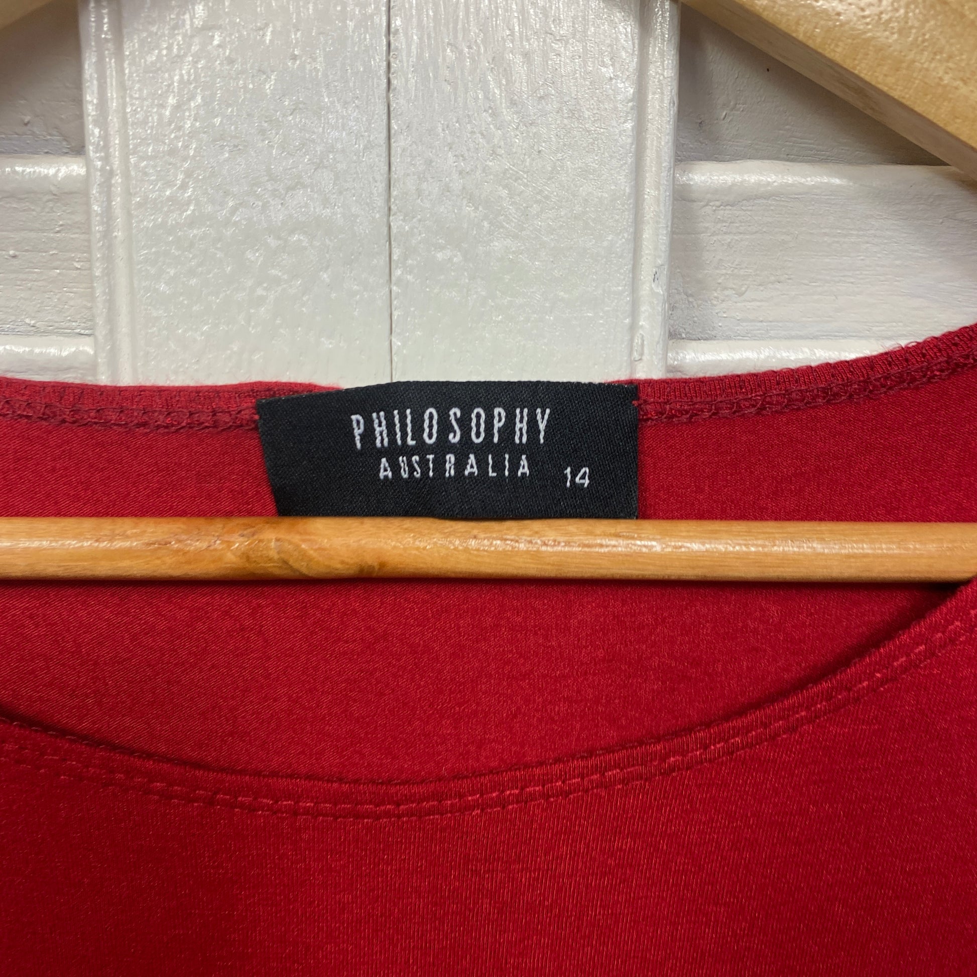 Philosophy Top Size 14 Short Sleeve Red Rayon