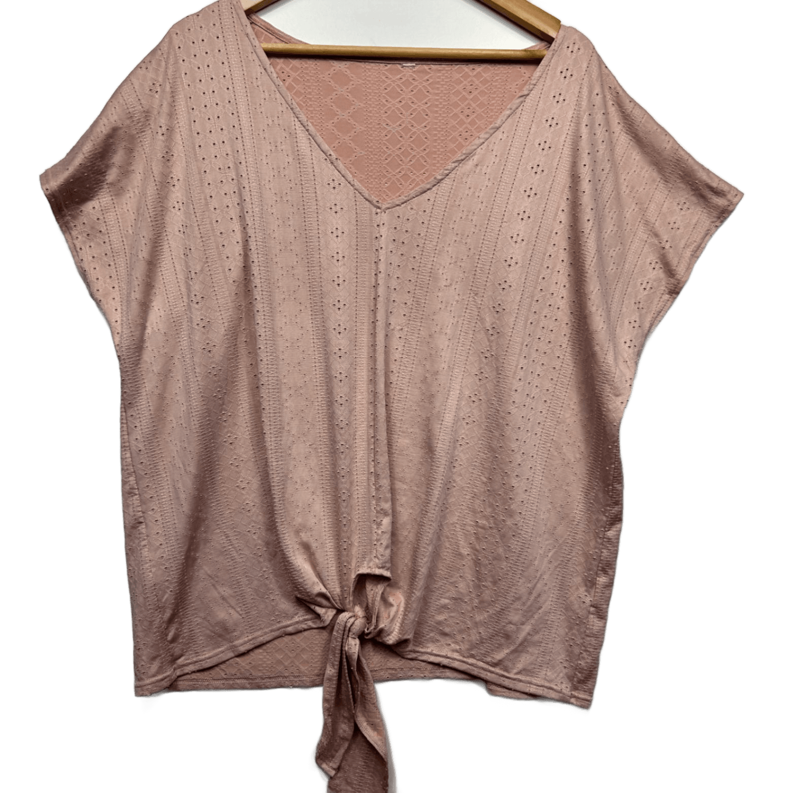 Pink Top Size 16 18 V Neck Short Sleeve Crochet Embroidered