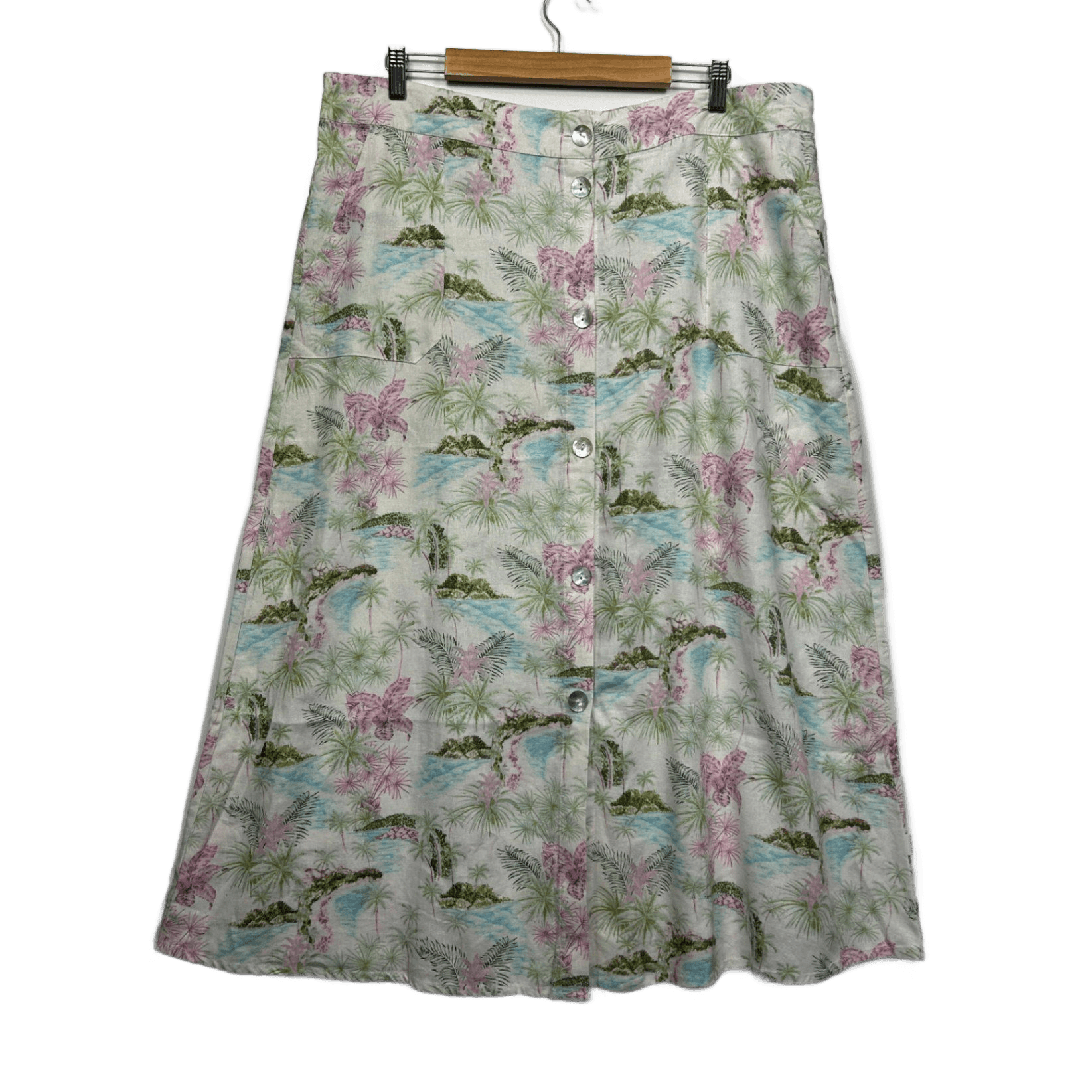 Piping Hot Multicoloured Linen Blend Floral Maxi Skirt Size 20 Pockets