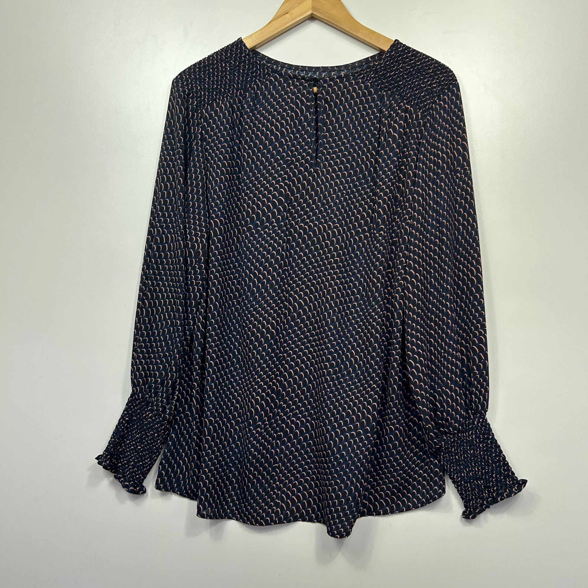 Preview Navy Blue Crescent Moon Print Blouse - Size 18